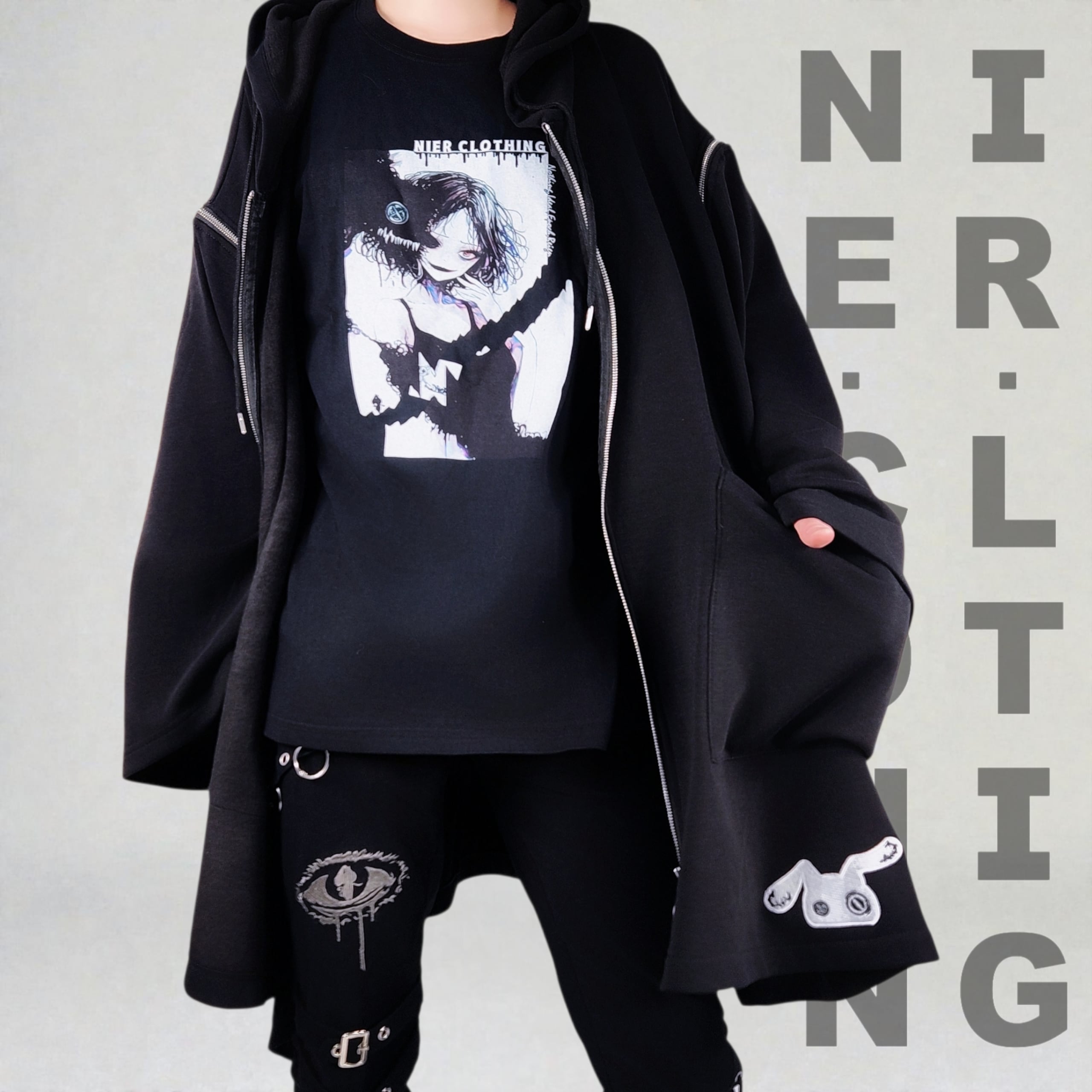 左裾には刺繍仕上げのひょっこりNIERちゃんフェイスをON。