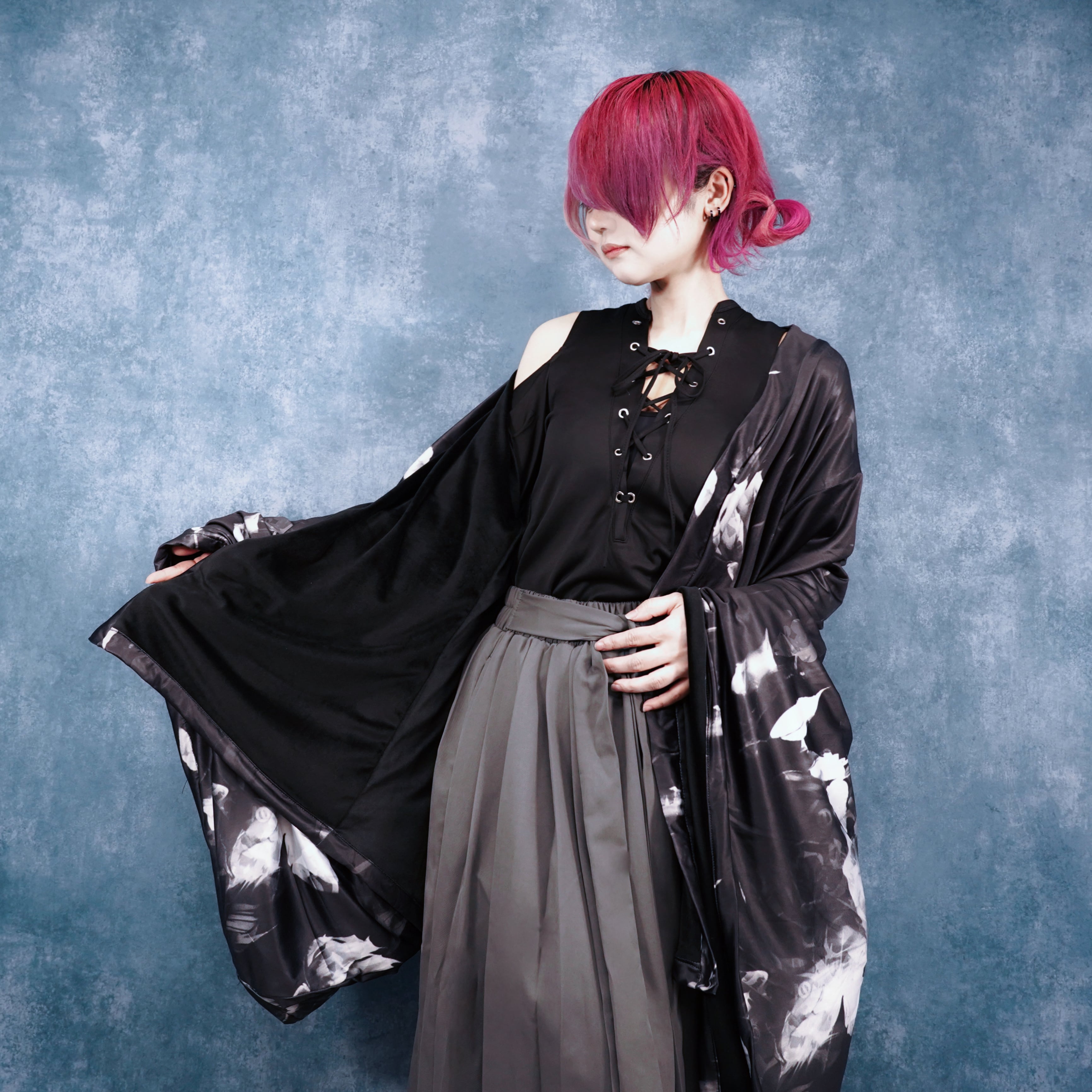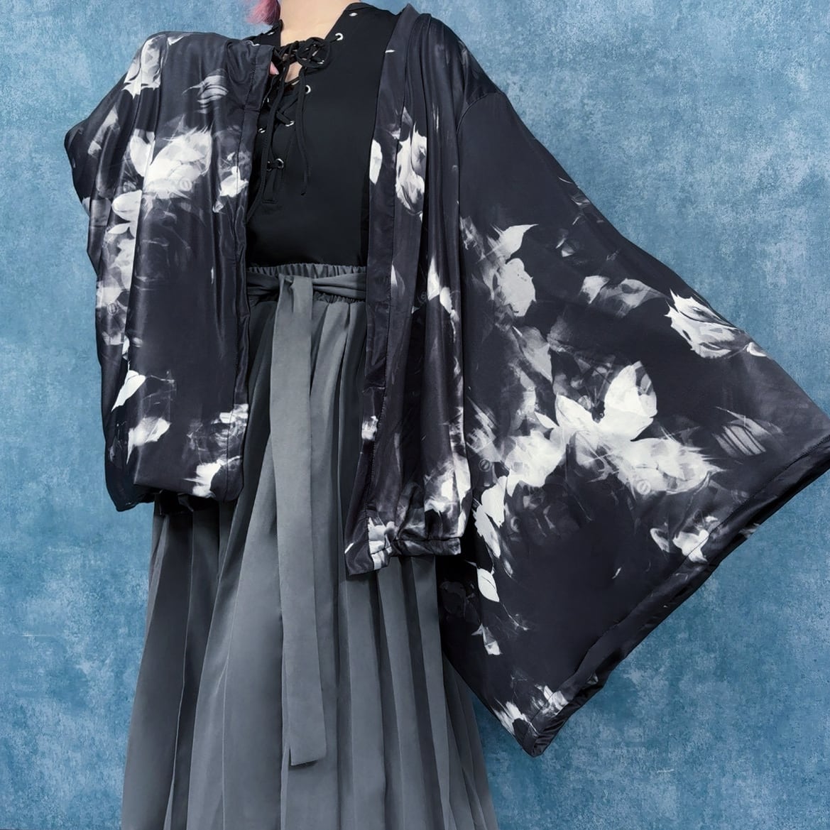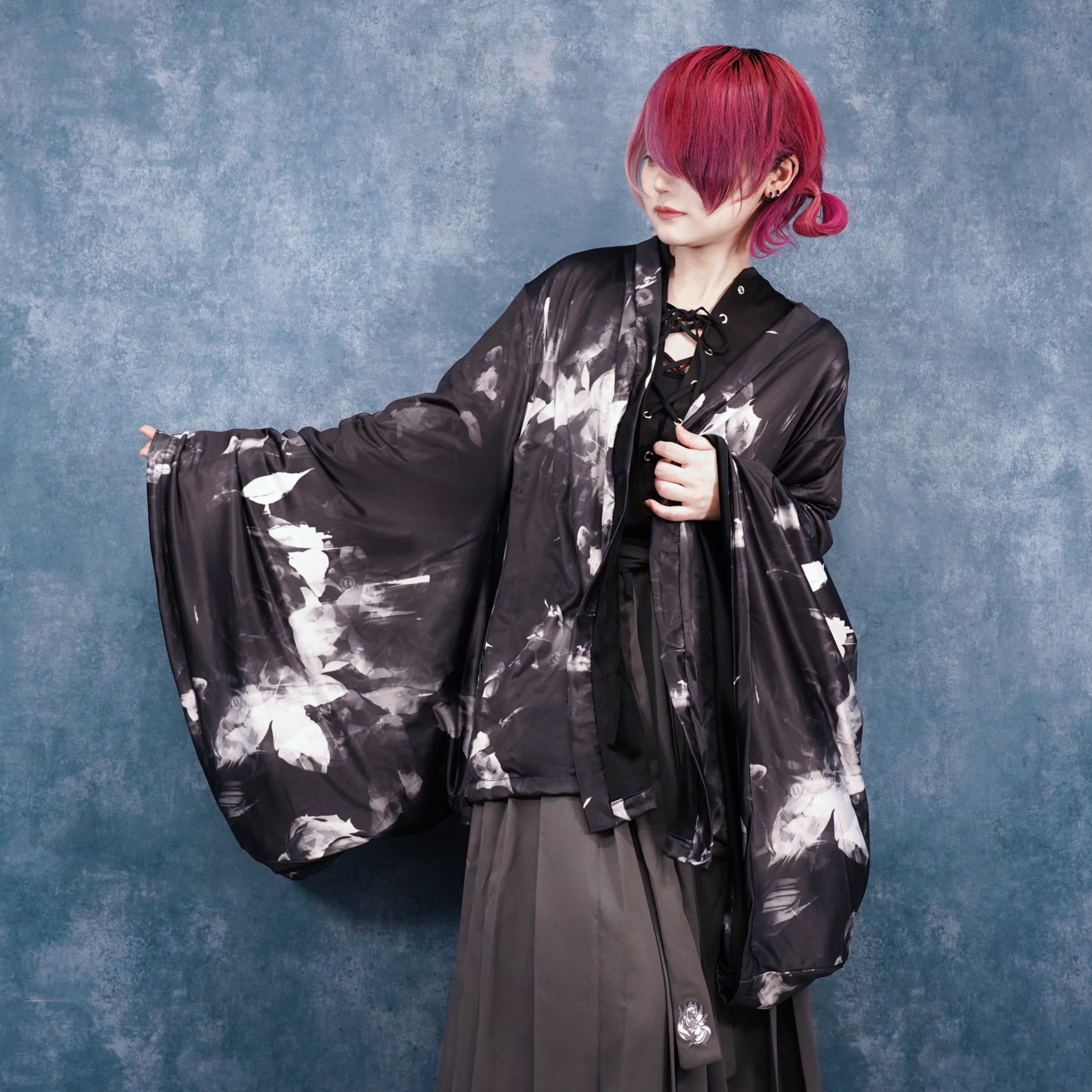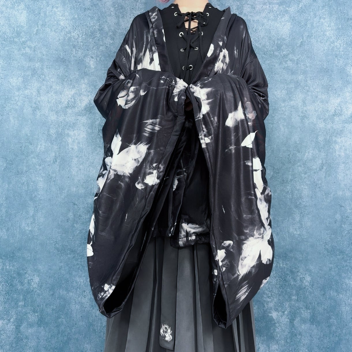 【超早い者勝ち70%OFFセール】内側防寒フリースUNISEX着物袖羽織 ― ROSE MONOCHROME
