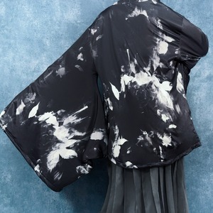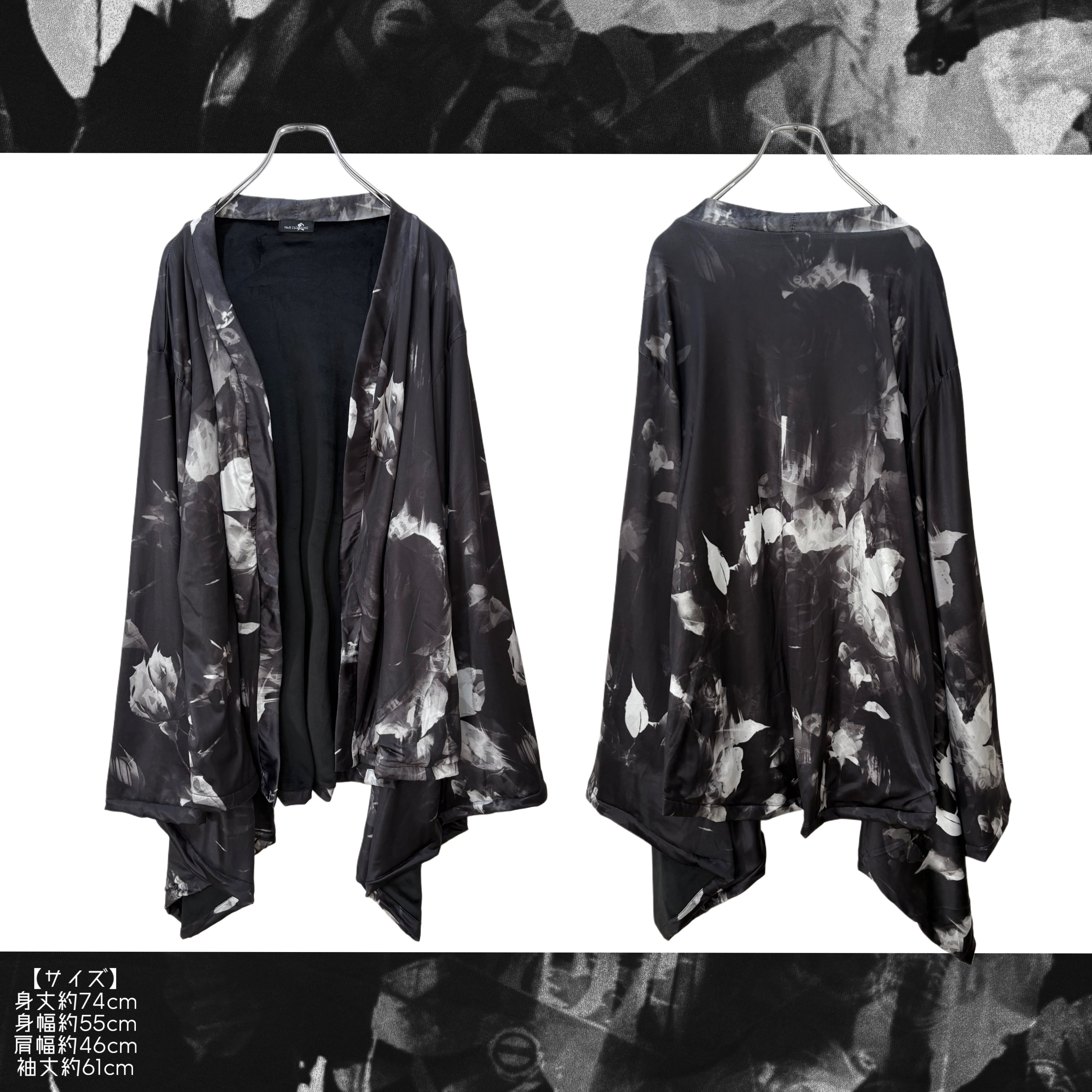 モノクロの薔薇柄を全体に落とし込み、存在感抜群に仕上げた着物袖羽織です。