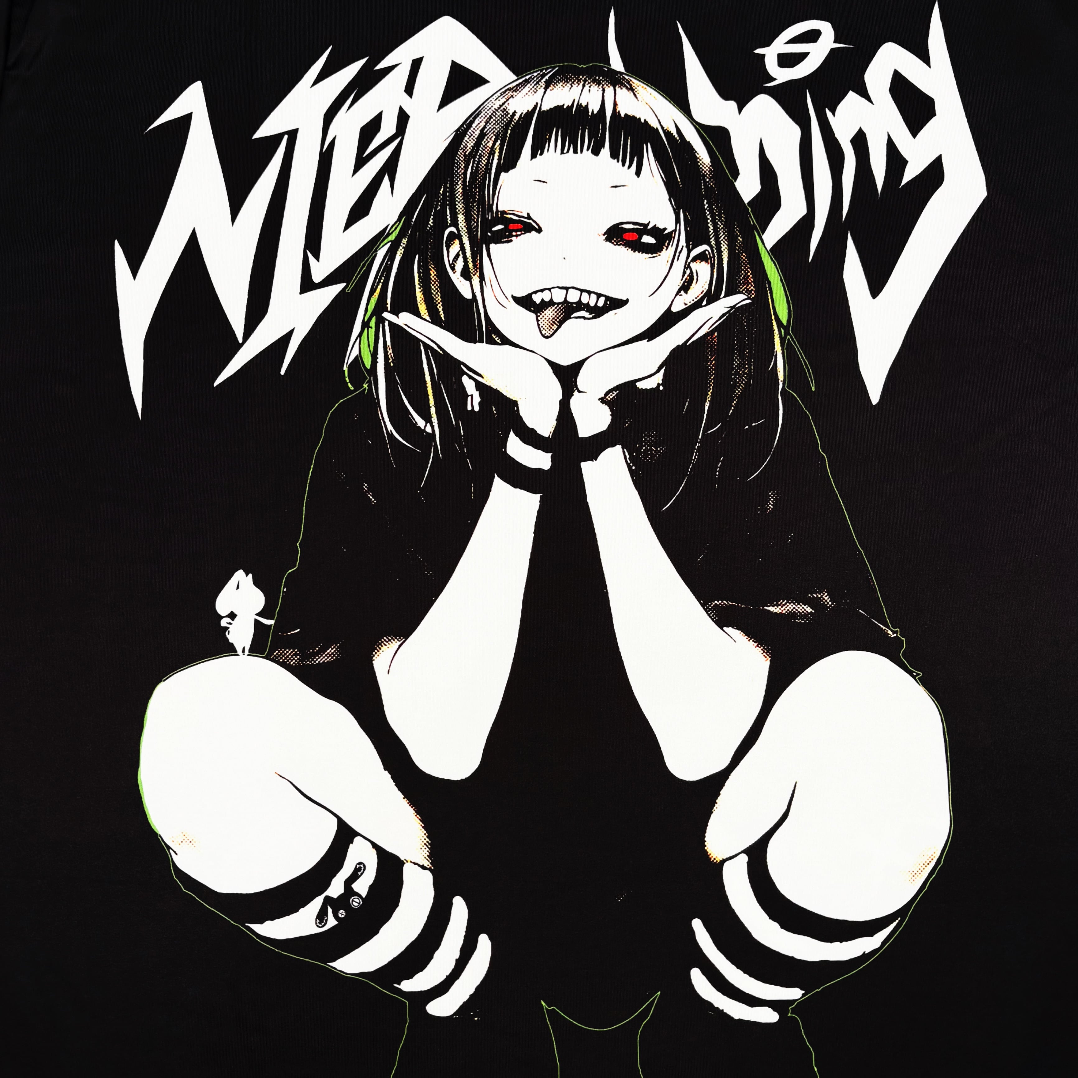 フロントには不敵に微笑む少女のインパクト抜群の大型プリント、