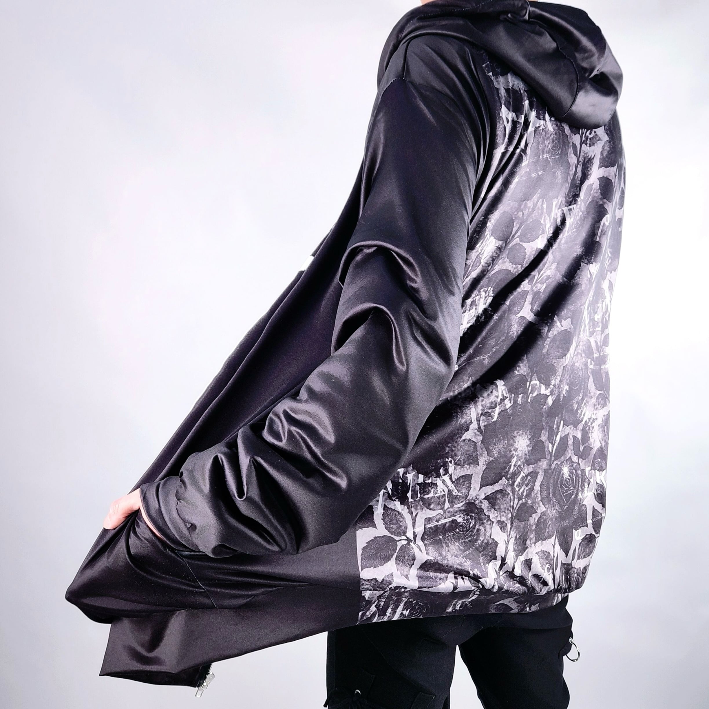 ミステリアスな薔薇総柄デザインとブラック切替が印象的な内側フリースアウターが登場☆