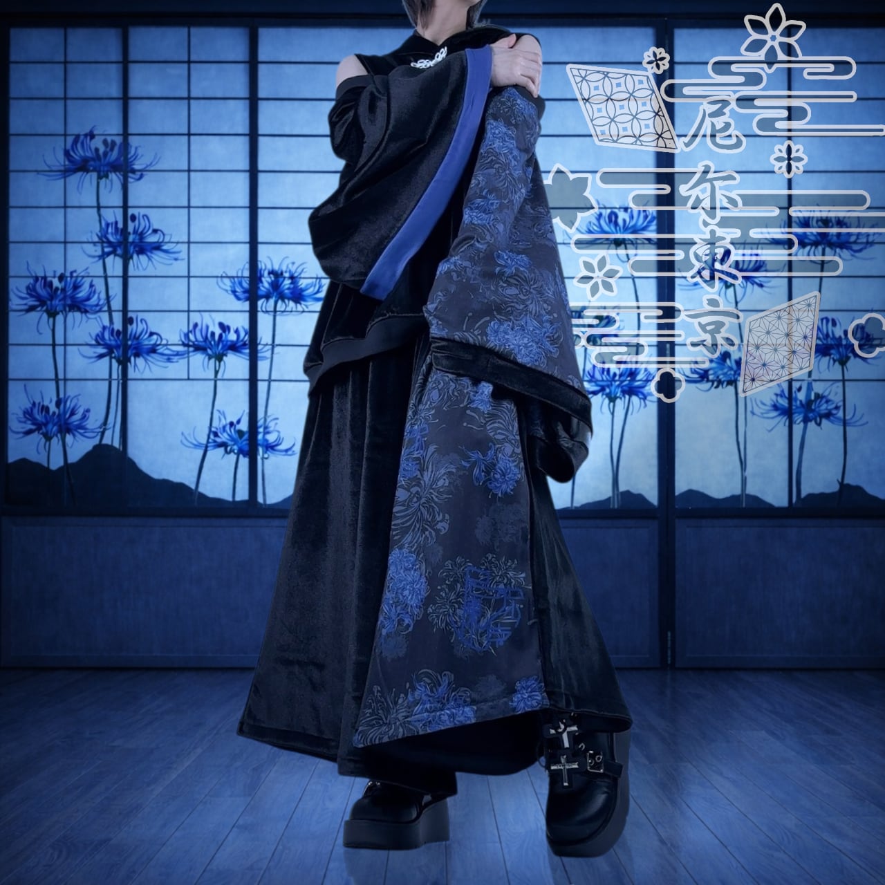 約11000円引き《NIERからのクリスマス前プレゼント》和風×チャイナテイスト 青彼岸花ベロアコーデセット