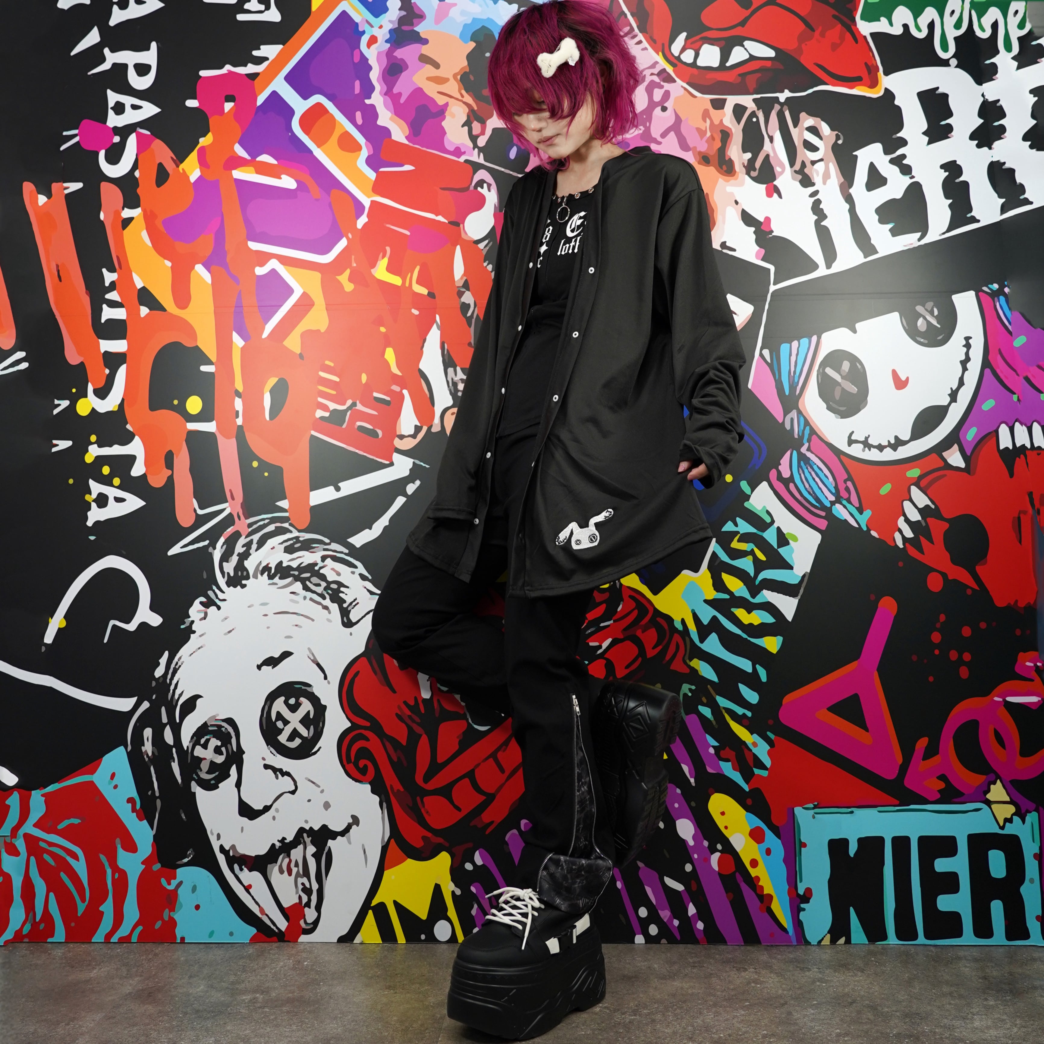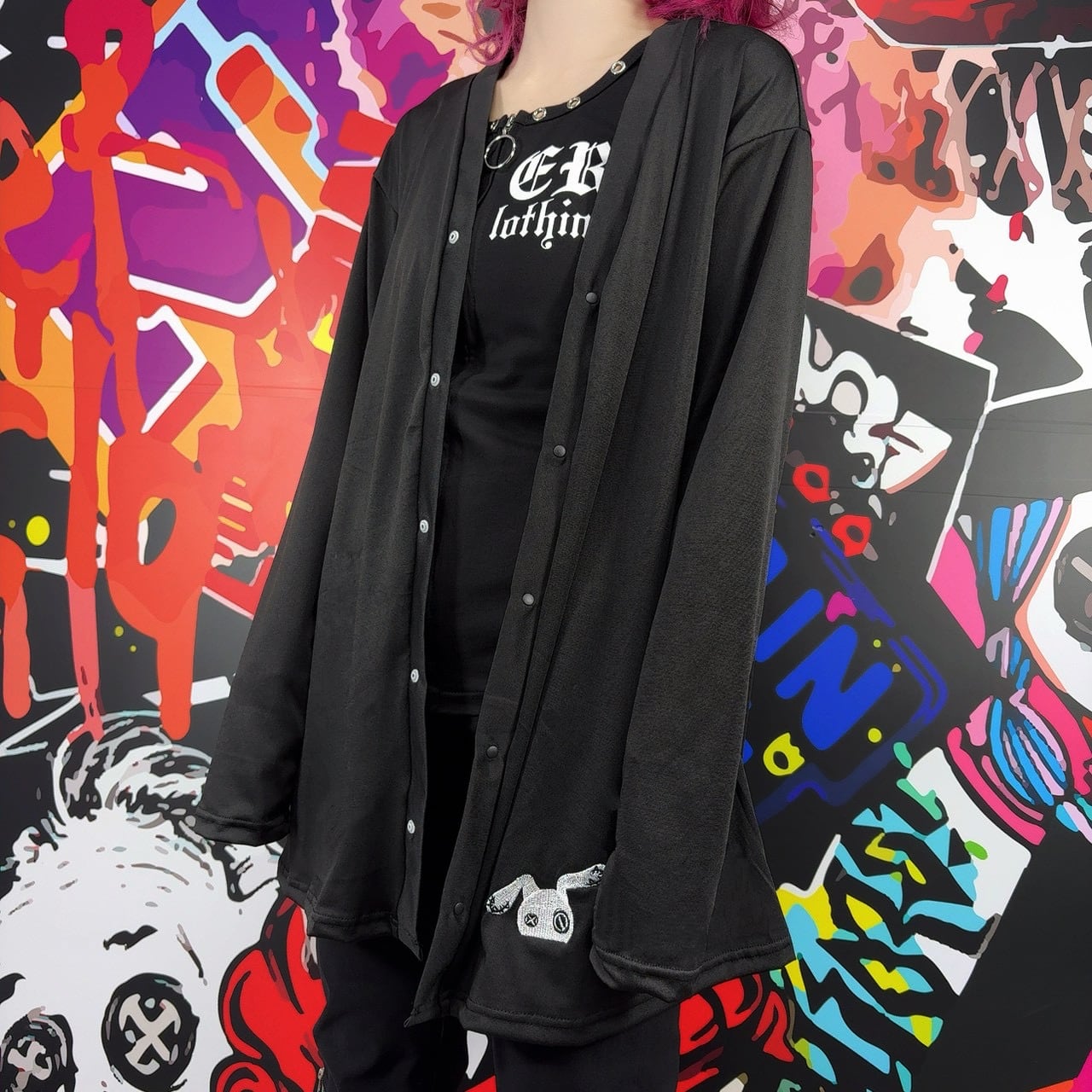 裾にはNIERちゃんモチーフのワンポイント刺繍を施し、