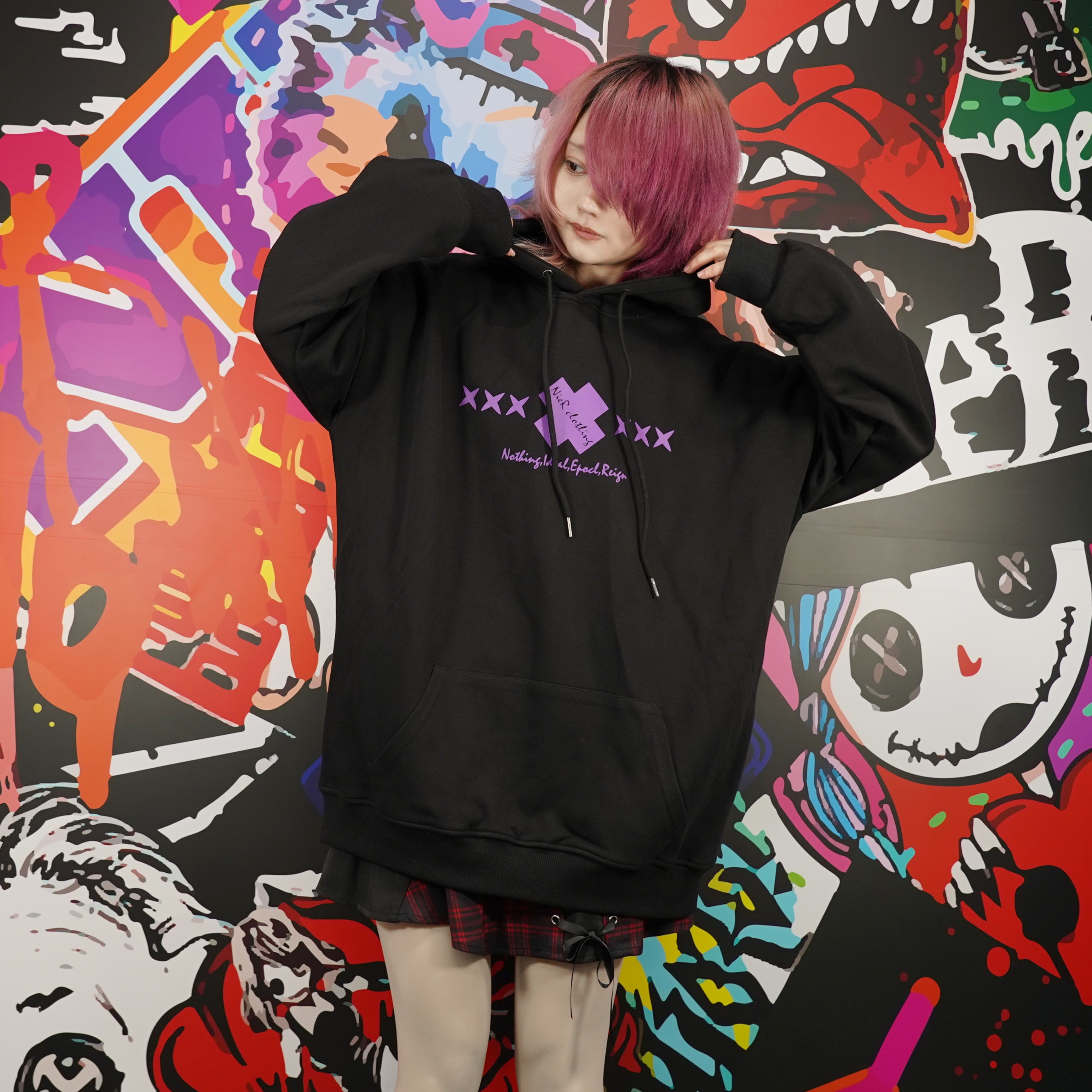 フロントにはパープルの✖︎✖︎✖︎ロゴ、