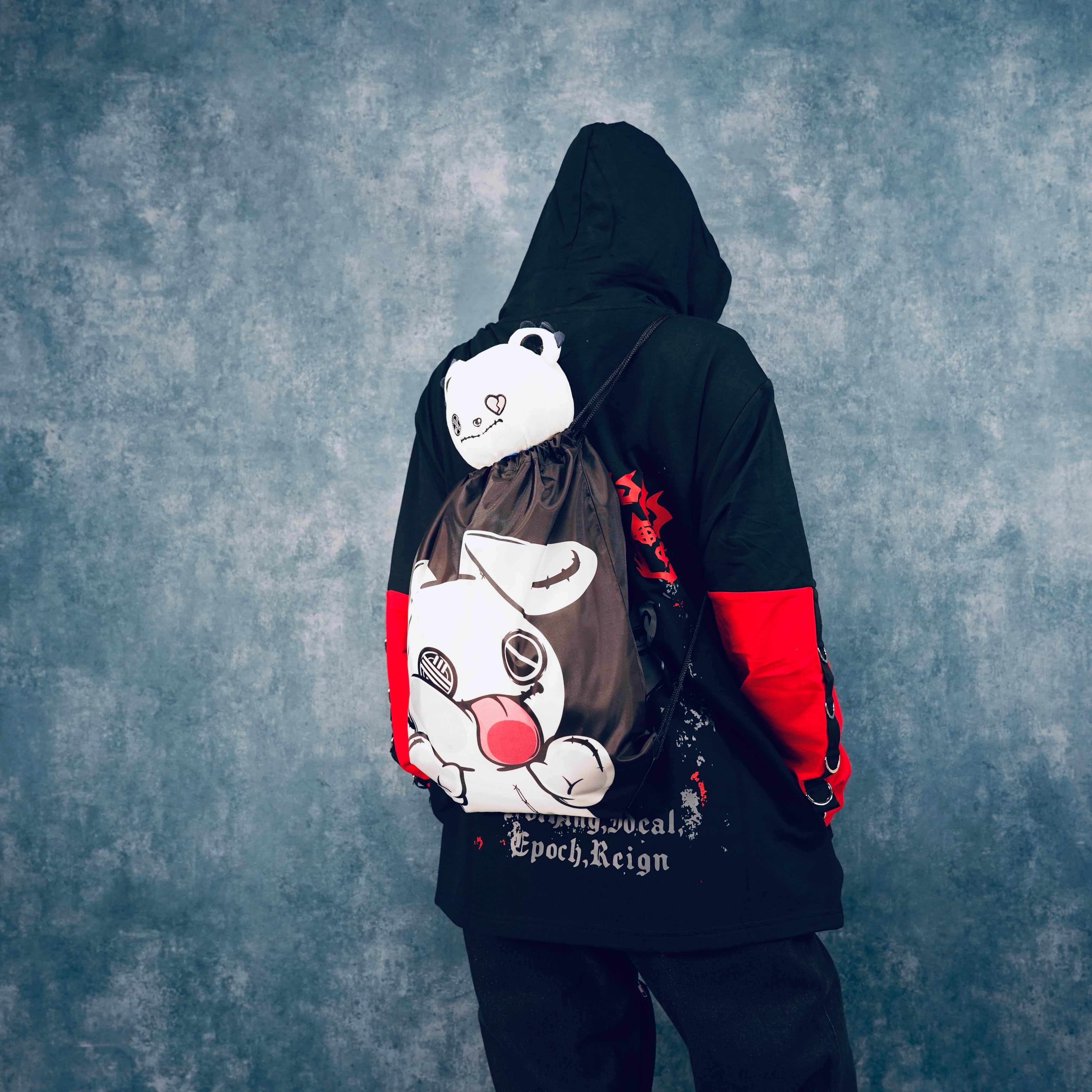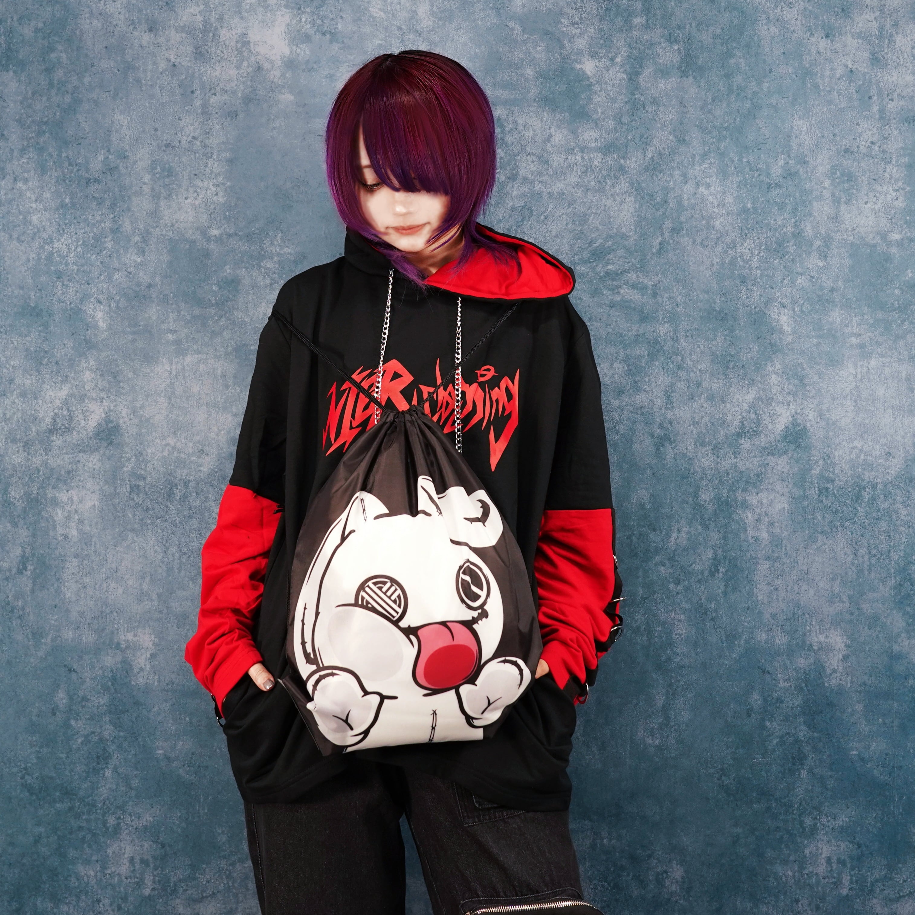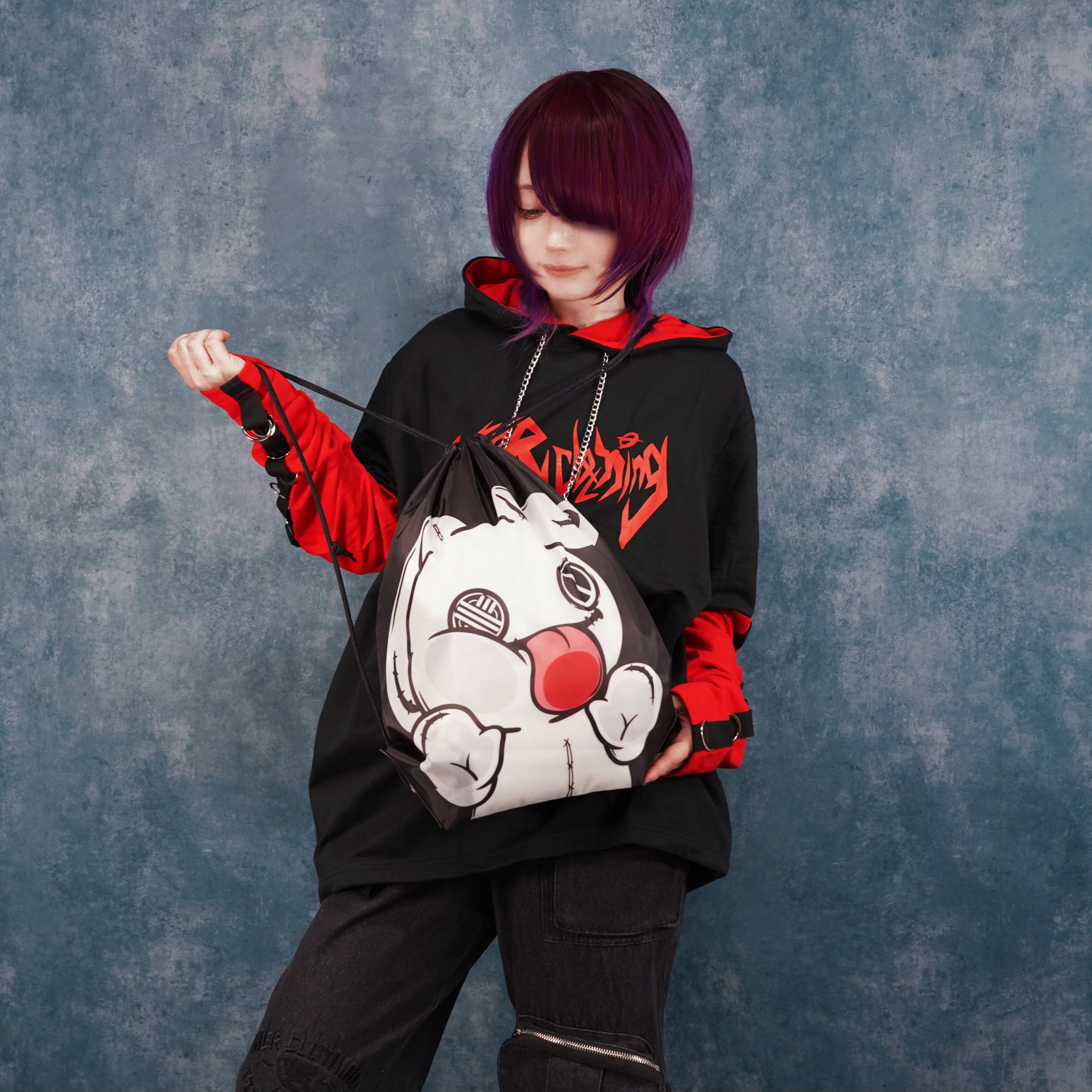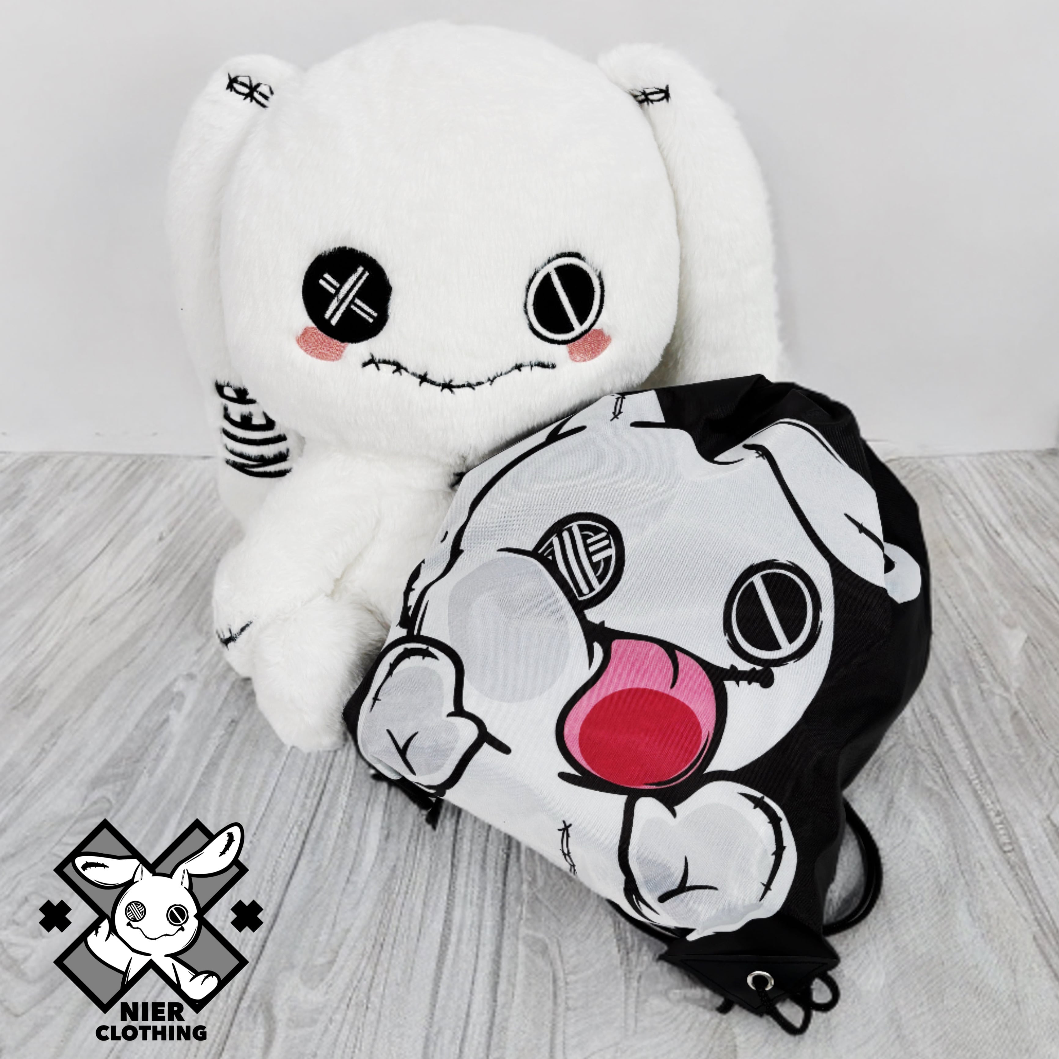 NIERちゃんのユーモアあふれるデザインが目を惹くナップサックです。