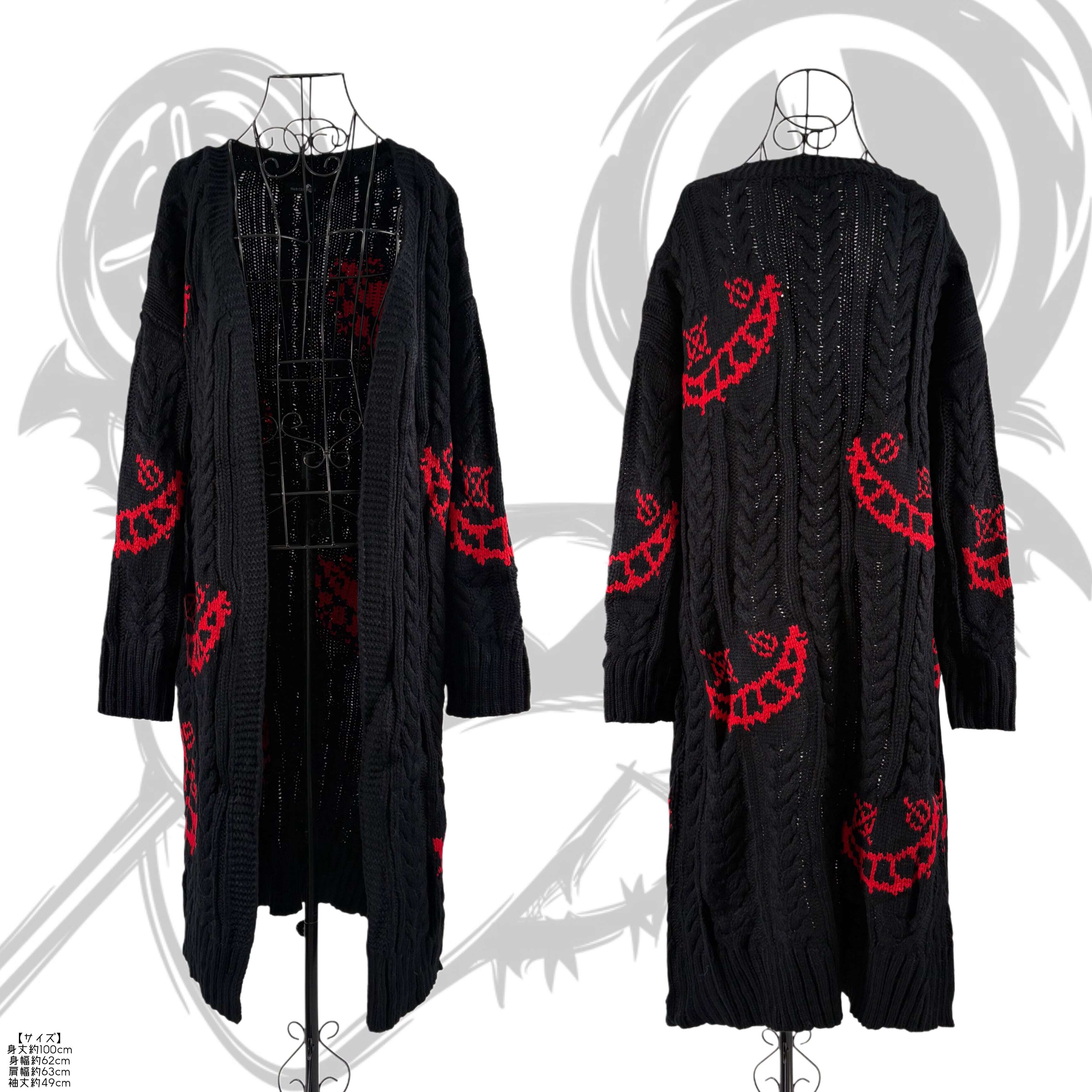 ・超ロング編み込みニットカーディガン【RED SMILE】