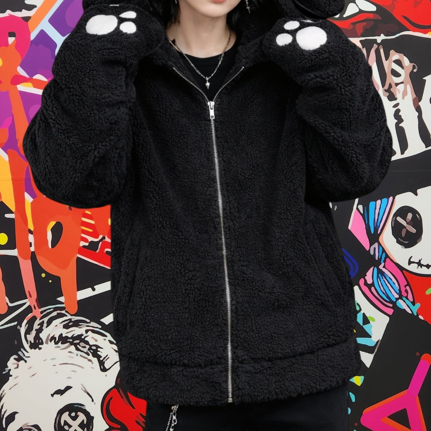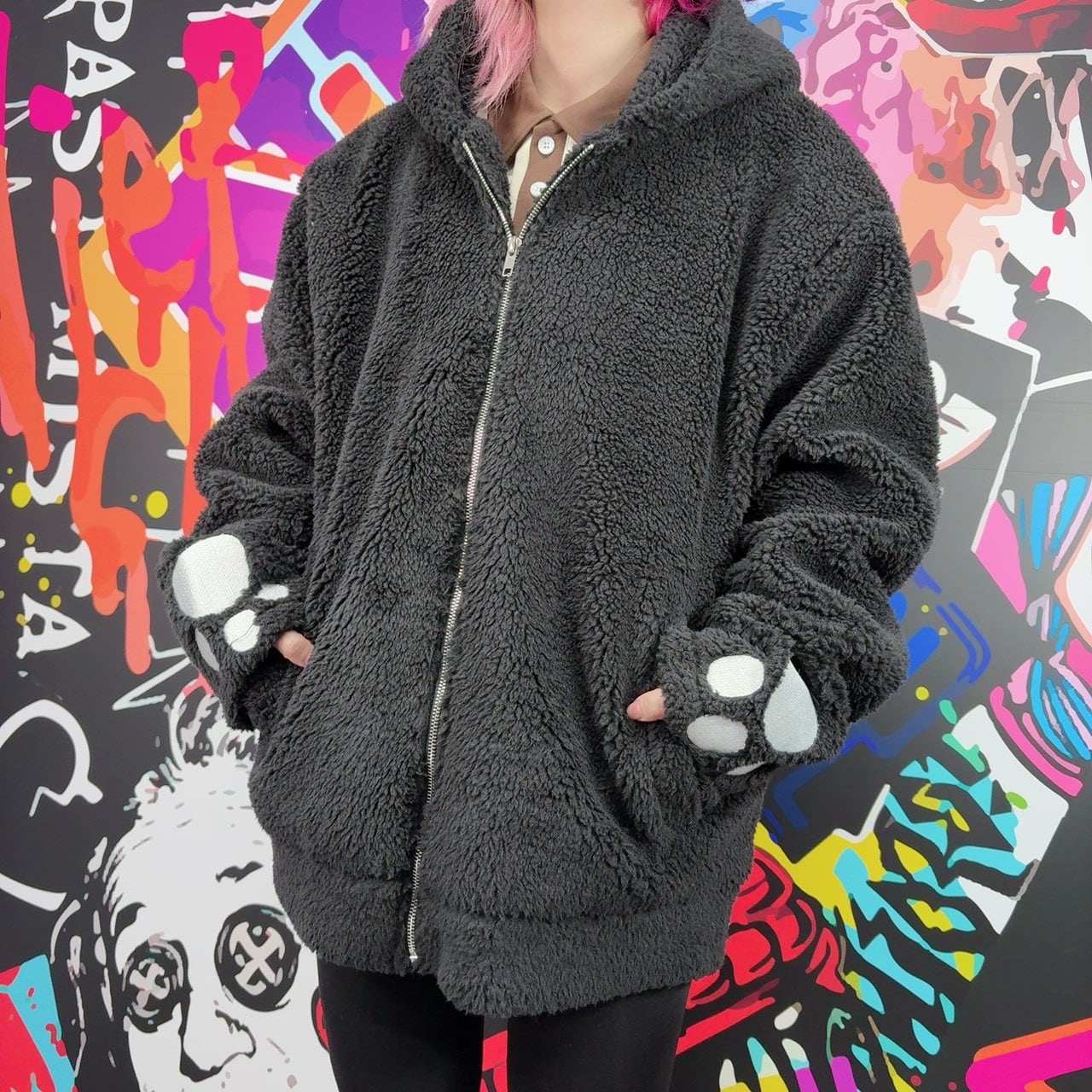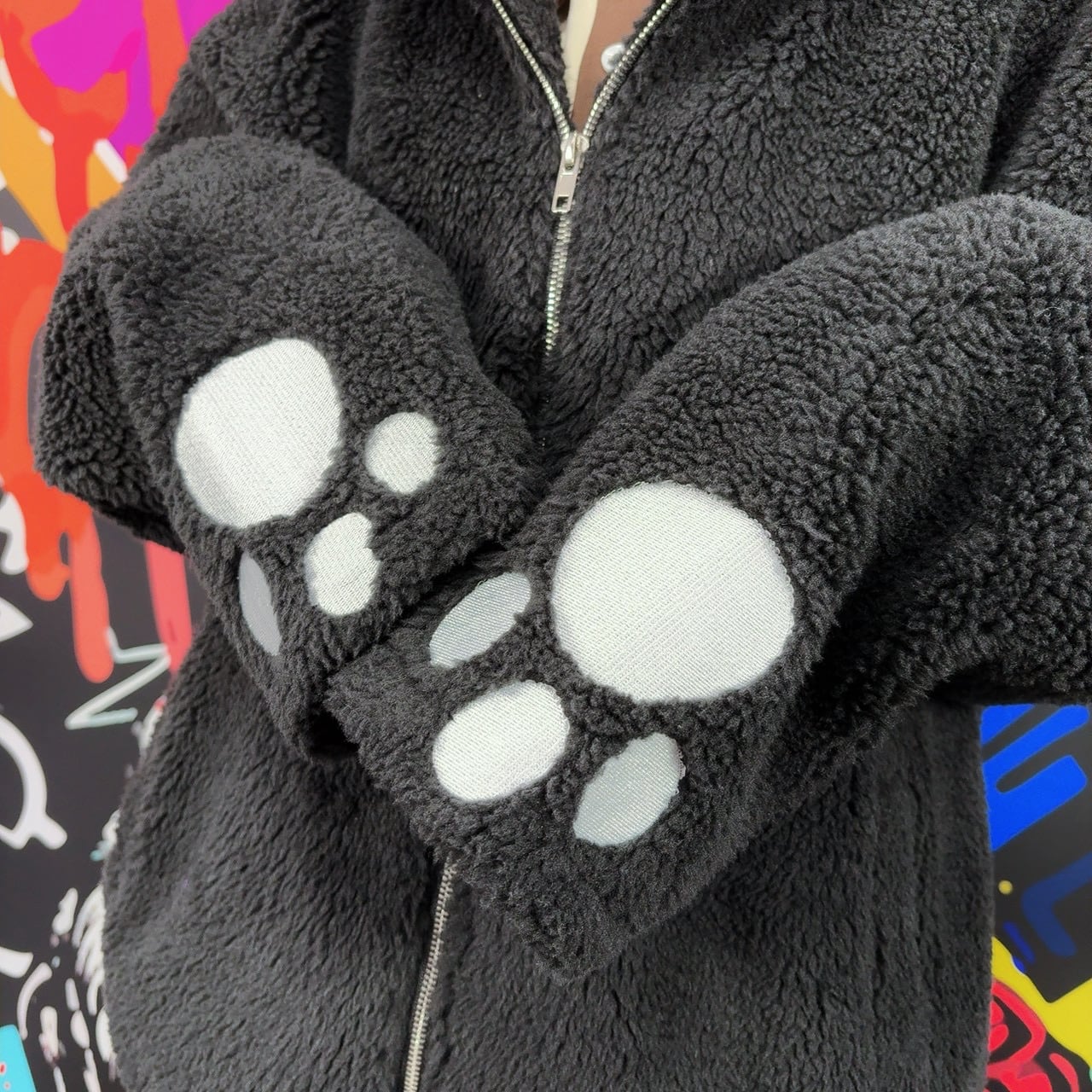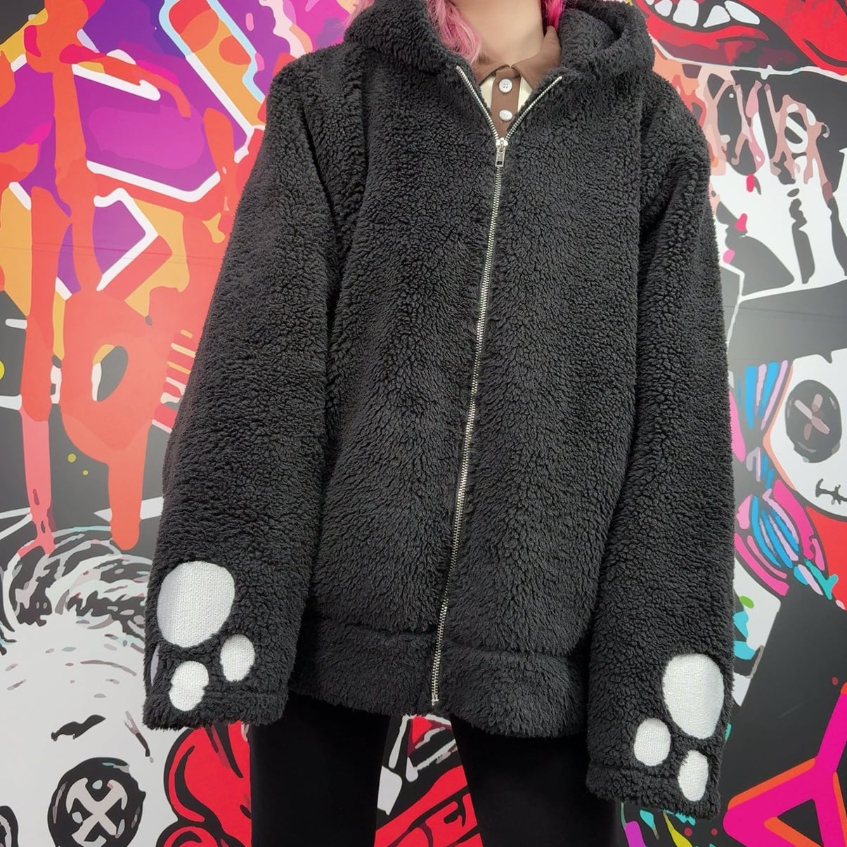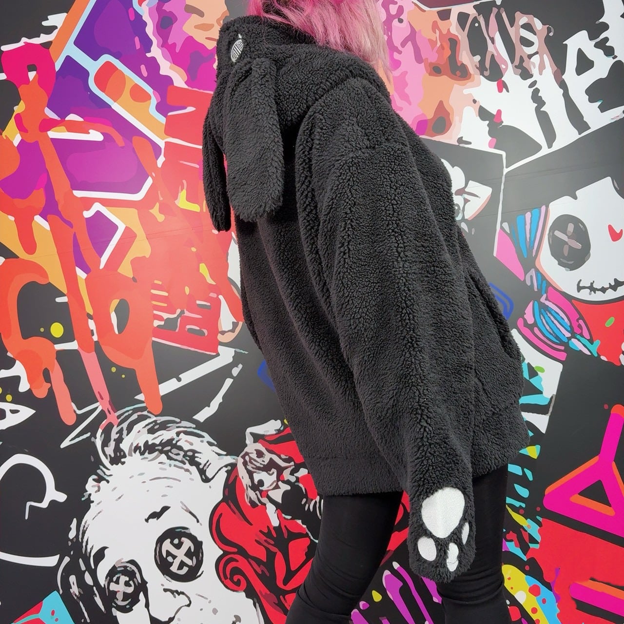 先着77点限定大特価‼︎肉球刺繍×うさ耳 ふわもこブラックボアアウター