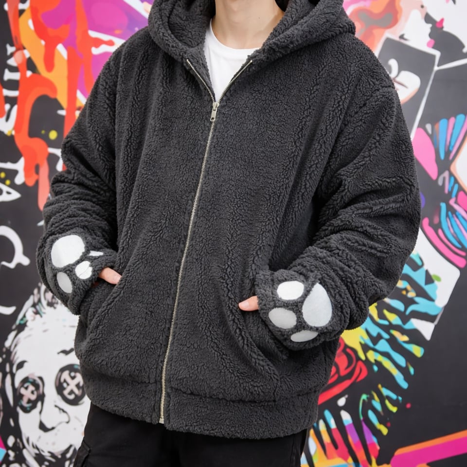 袖口には肉球デザイン刺繍をあしらい、