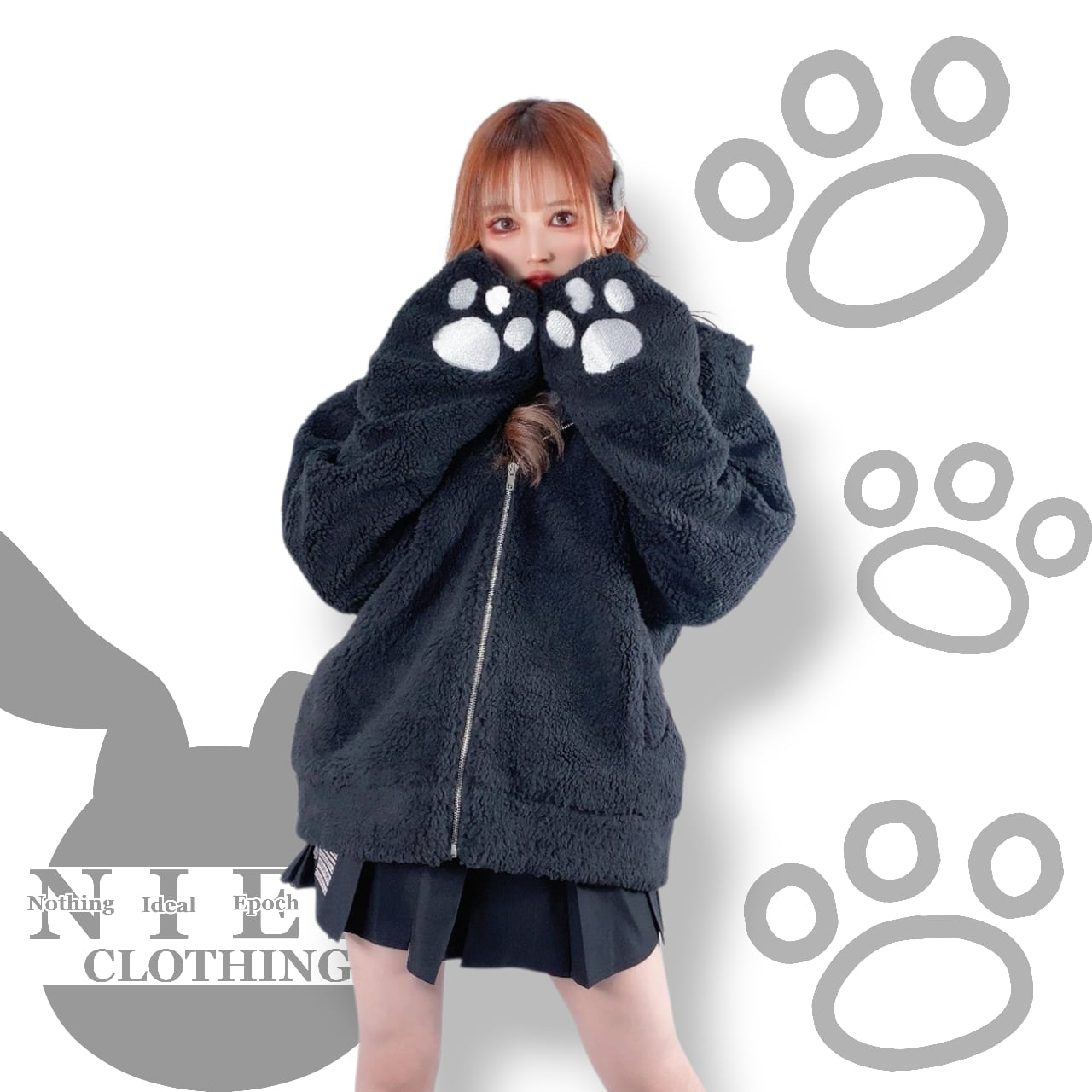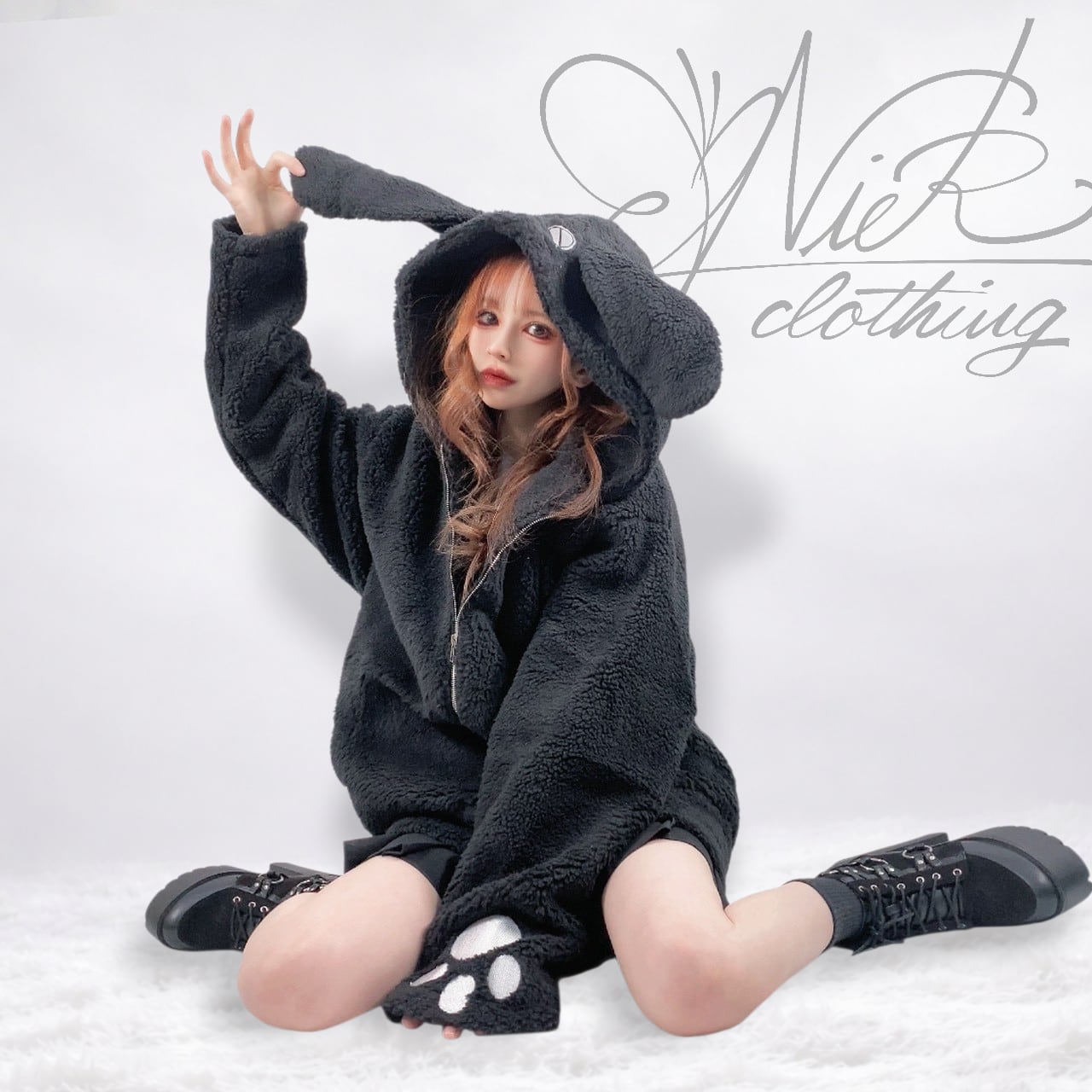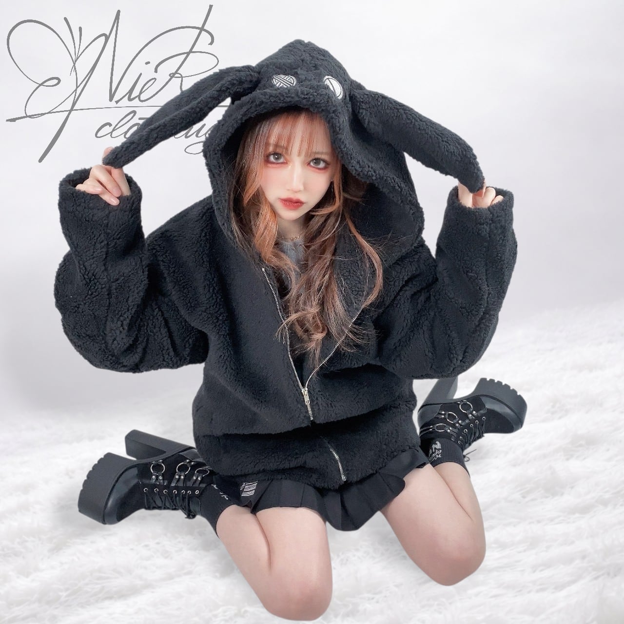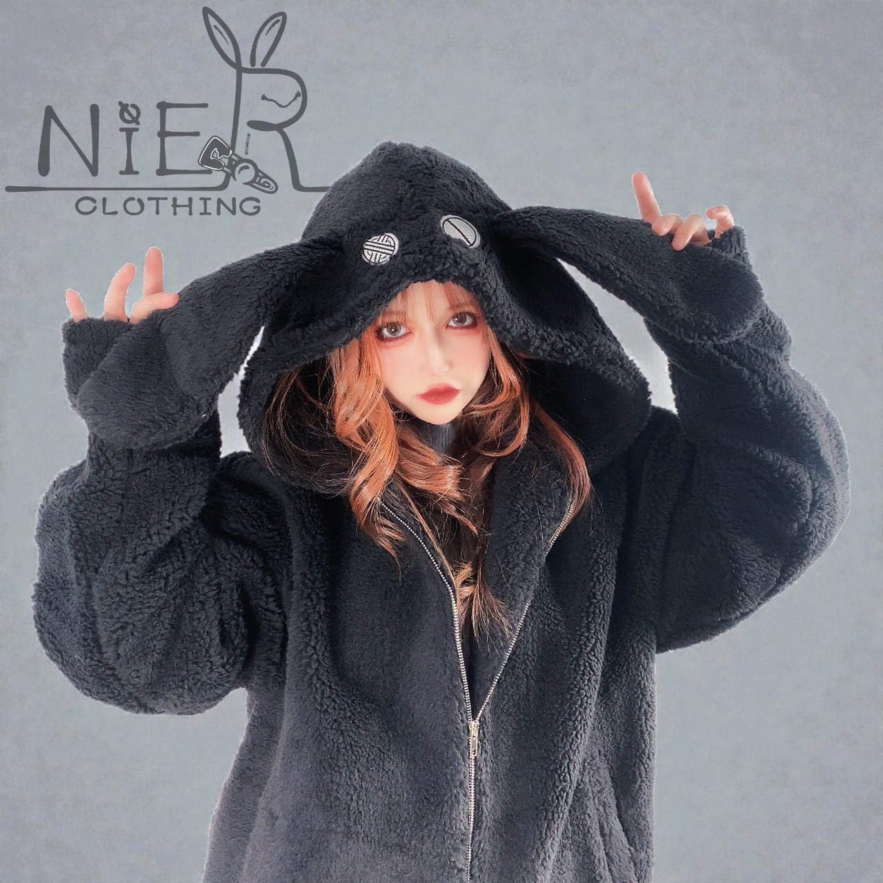 フードには愛らしいNIERちゃんのお耳&フェイス刺繍、