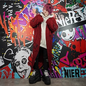 ・超ロング編み込みニットカーディガン【BLACK SMILE】