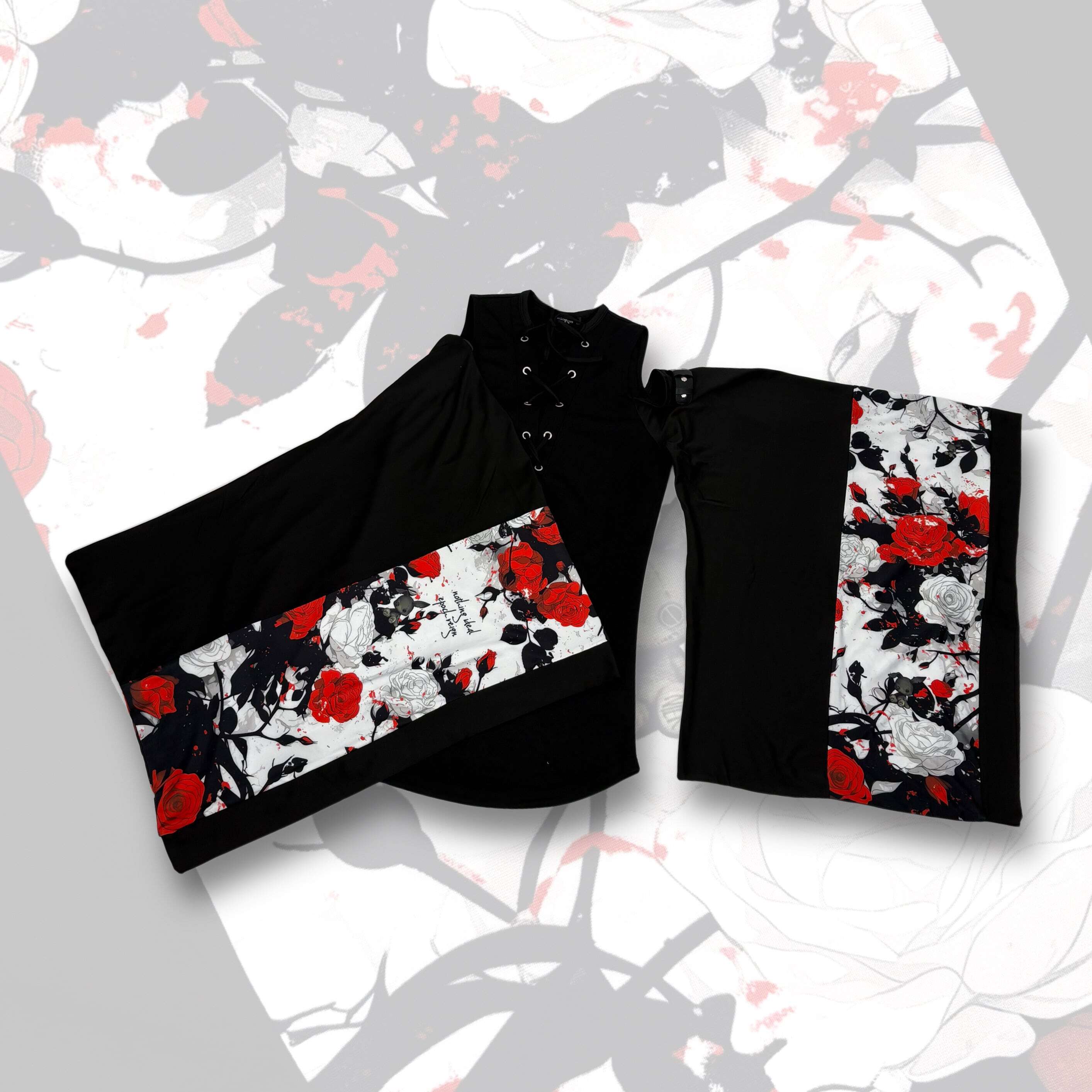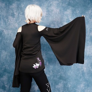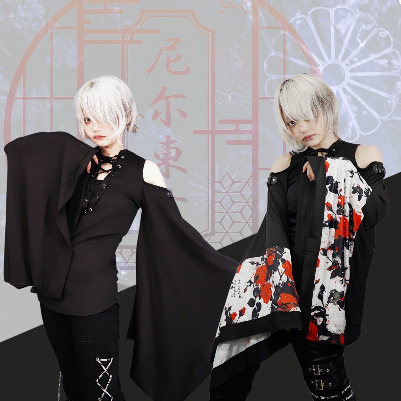 ・着物風袖FRONT BRAID OFF-SHOULDER PULLOVER【赤白薔薇】