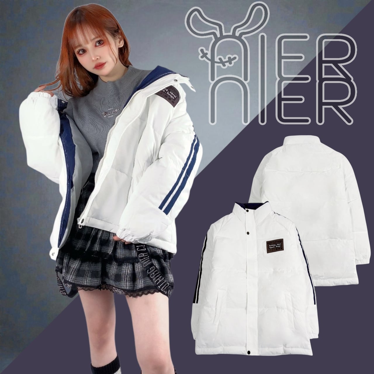 《新春応援プレゼント》軽量WARM DOWN WHITE JACKET【NIER LOGO】