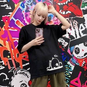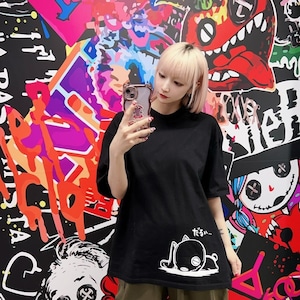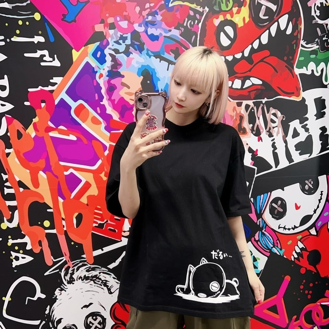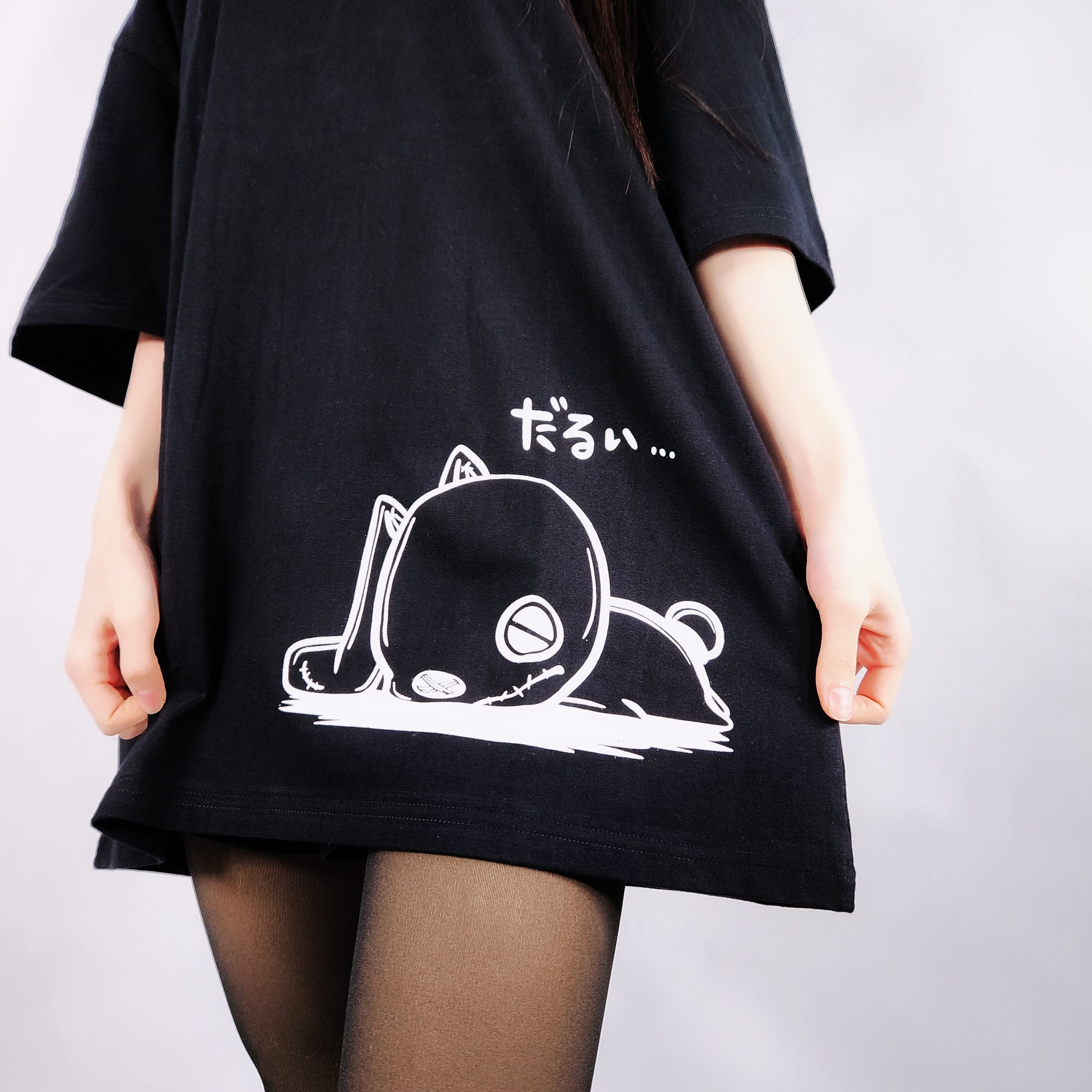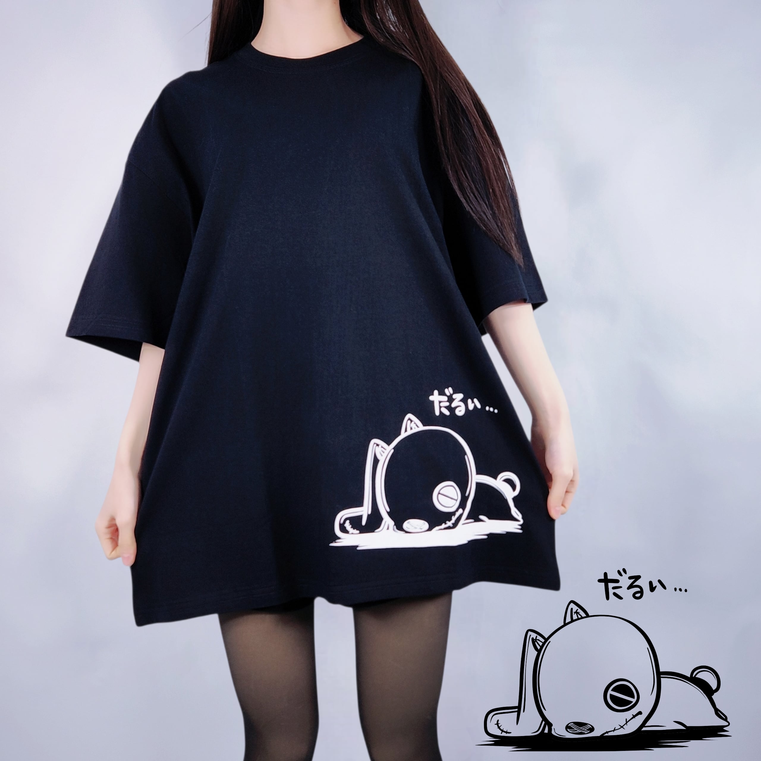 裾付近にちょこんと配置された、寝そべるNIERちゃんプリントがポイント。