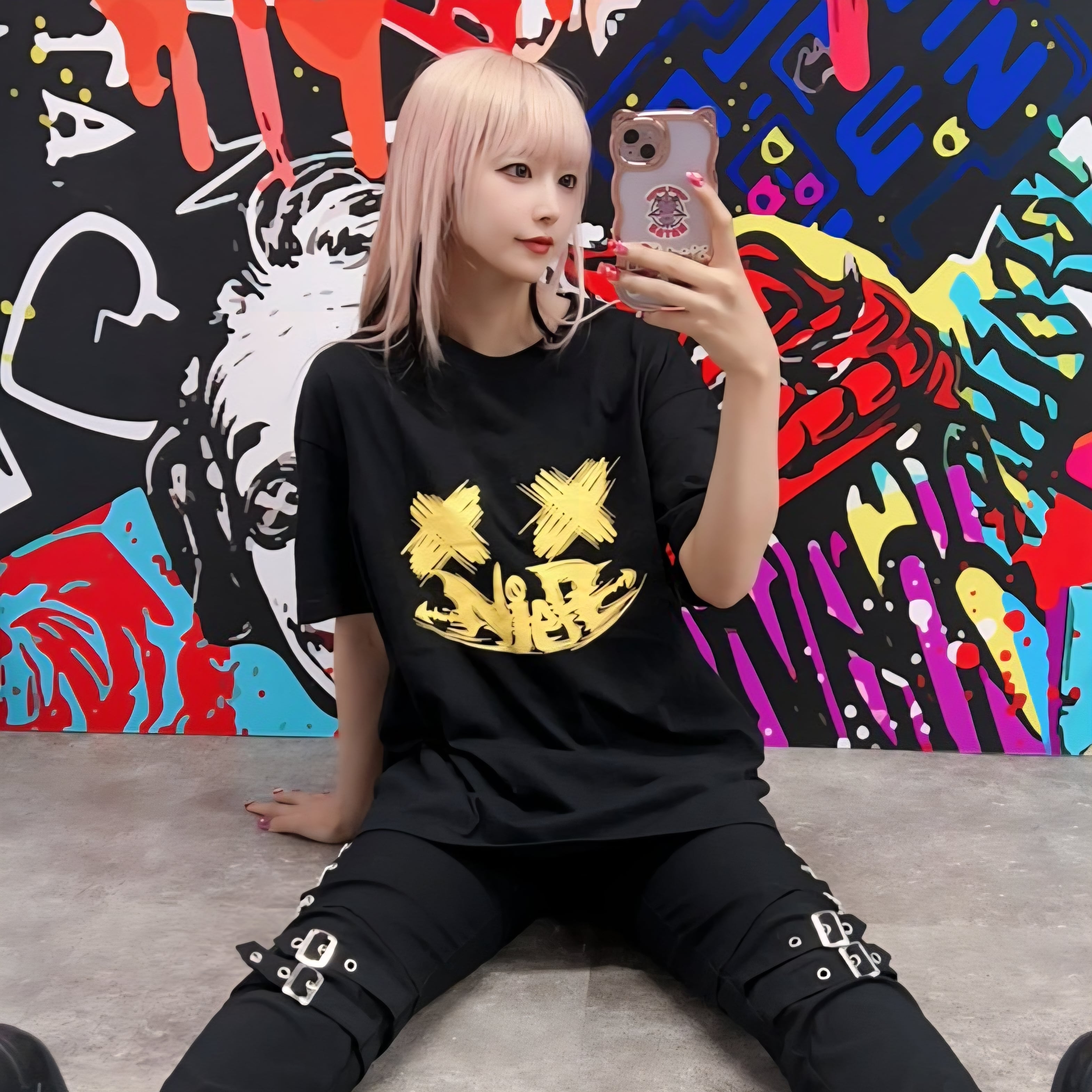 フェイスロゴを大胆にフロントプリントしたブラックカットソーです。