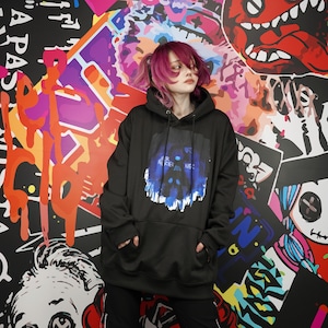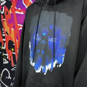 青く滲むインクアートを重ねたアート系パーカーです。