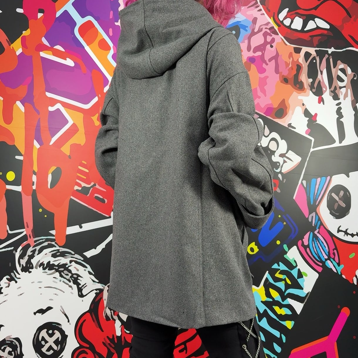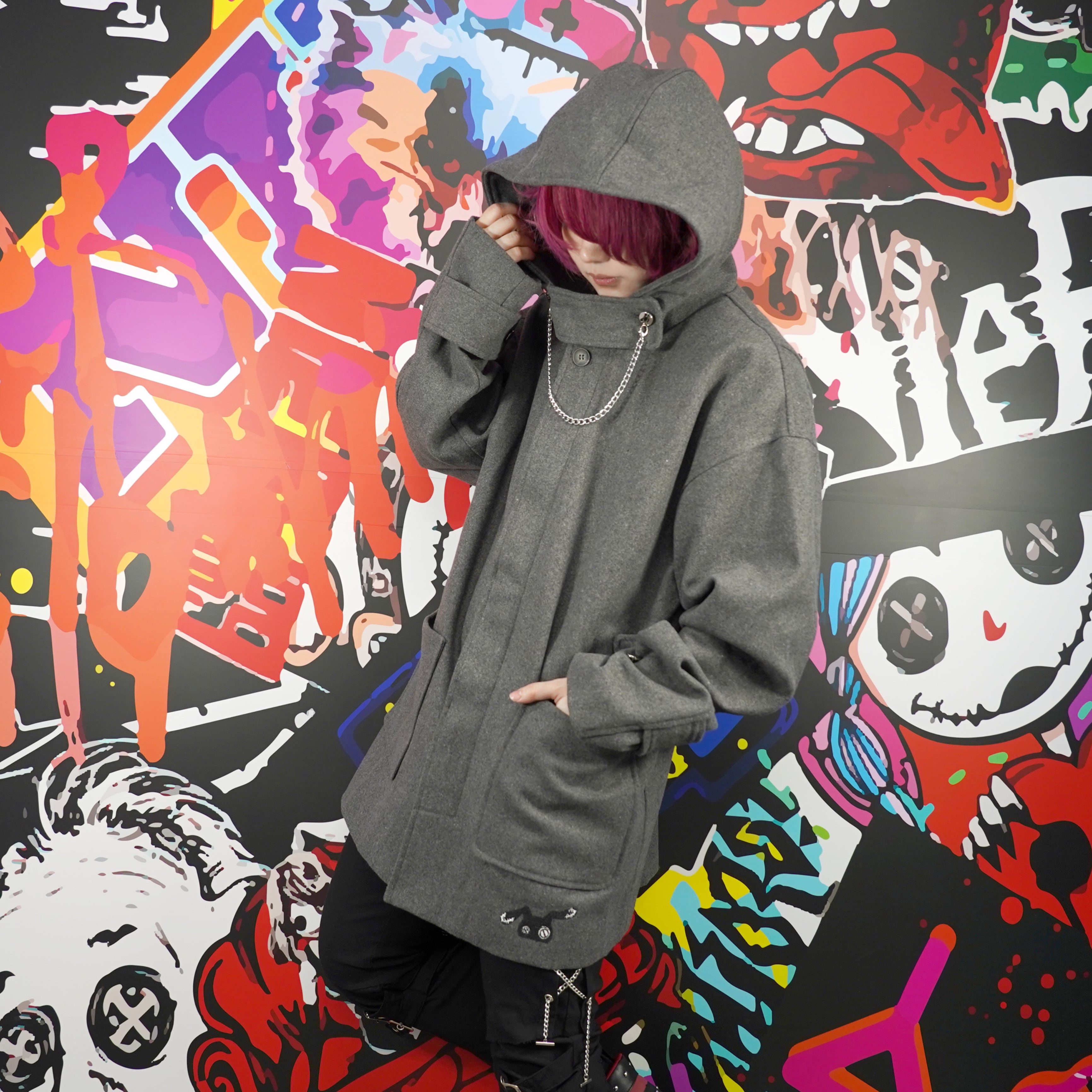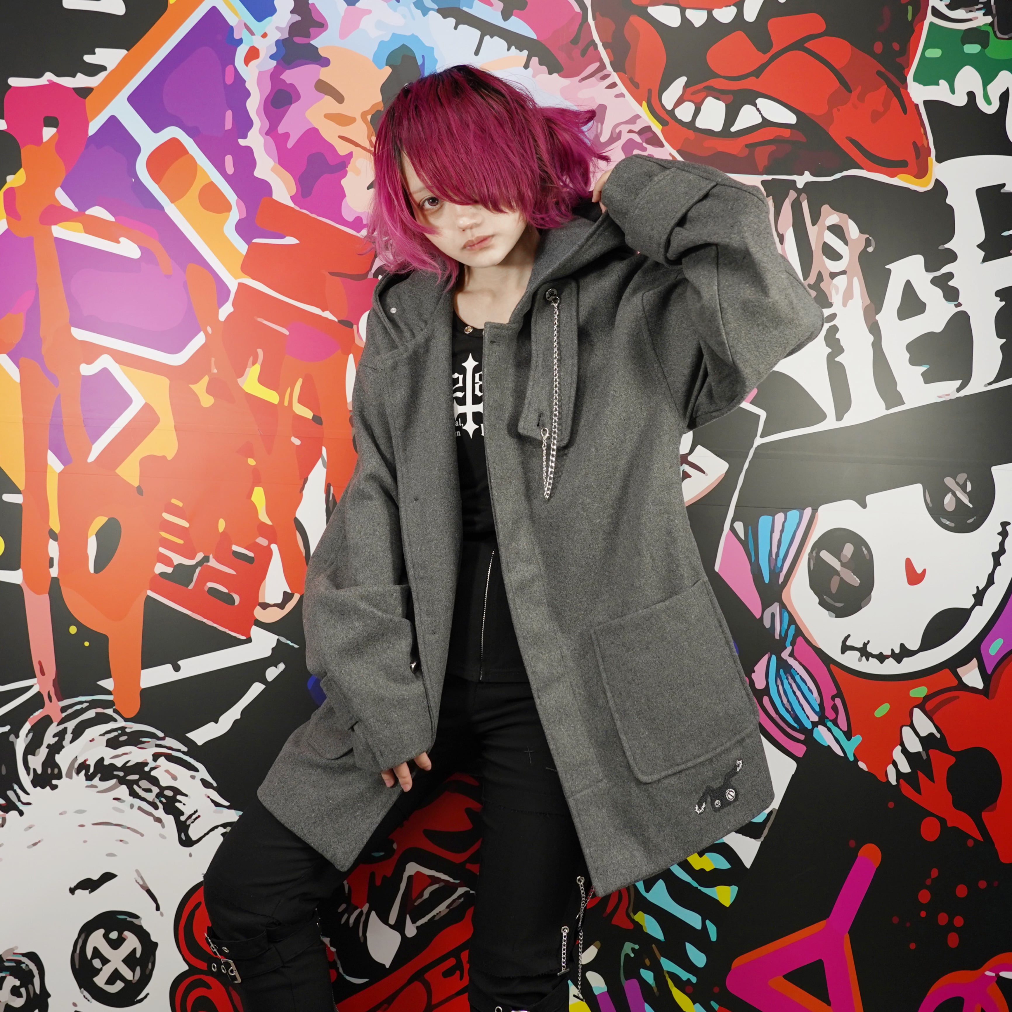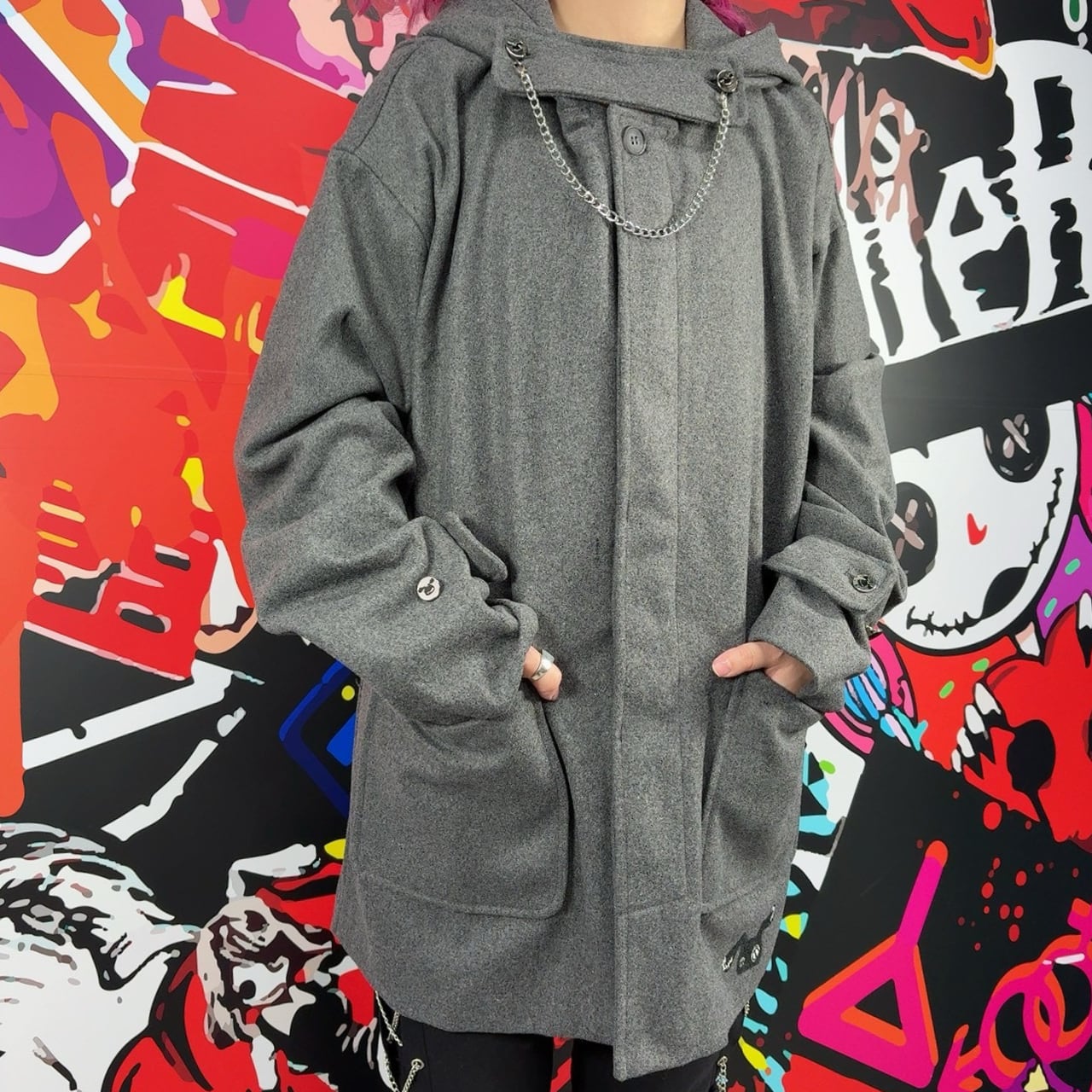 裏地付きフードデザインでライブやイベントから普段使いまで幅広く活躍するグレーアウターです。