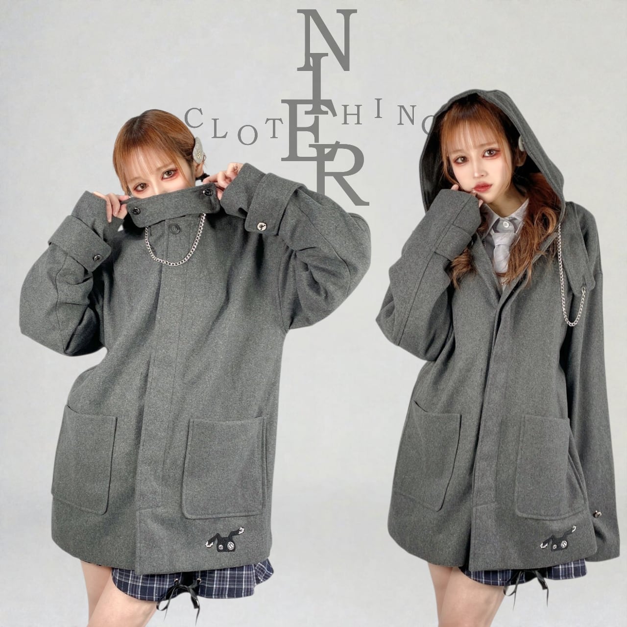CHAIN×THROAT TAB GRAY COAT【比翼仕立て】