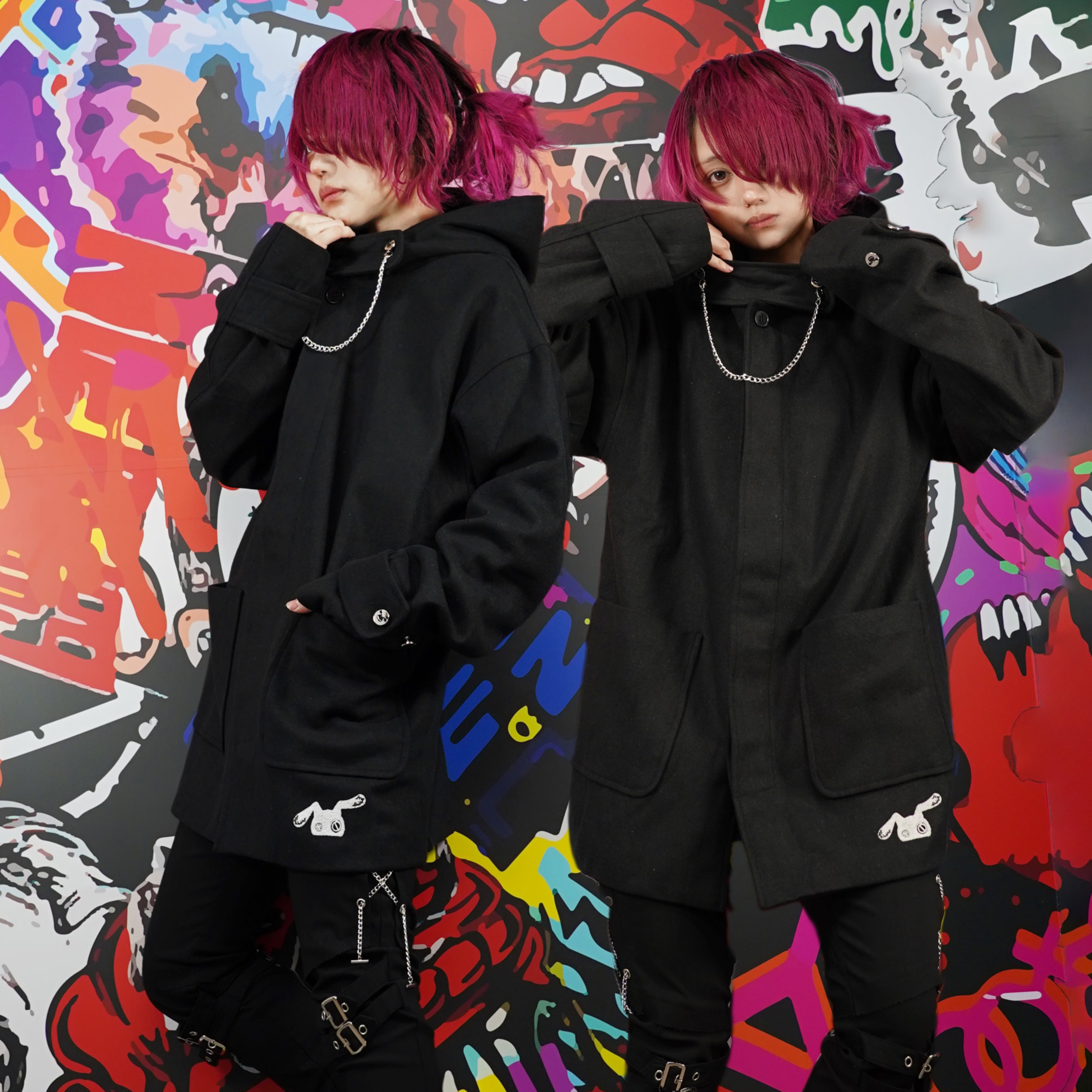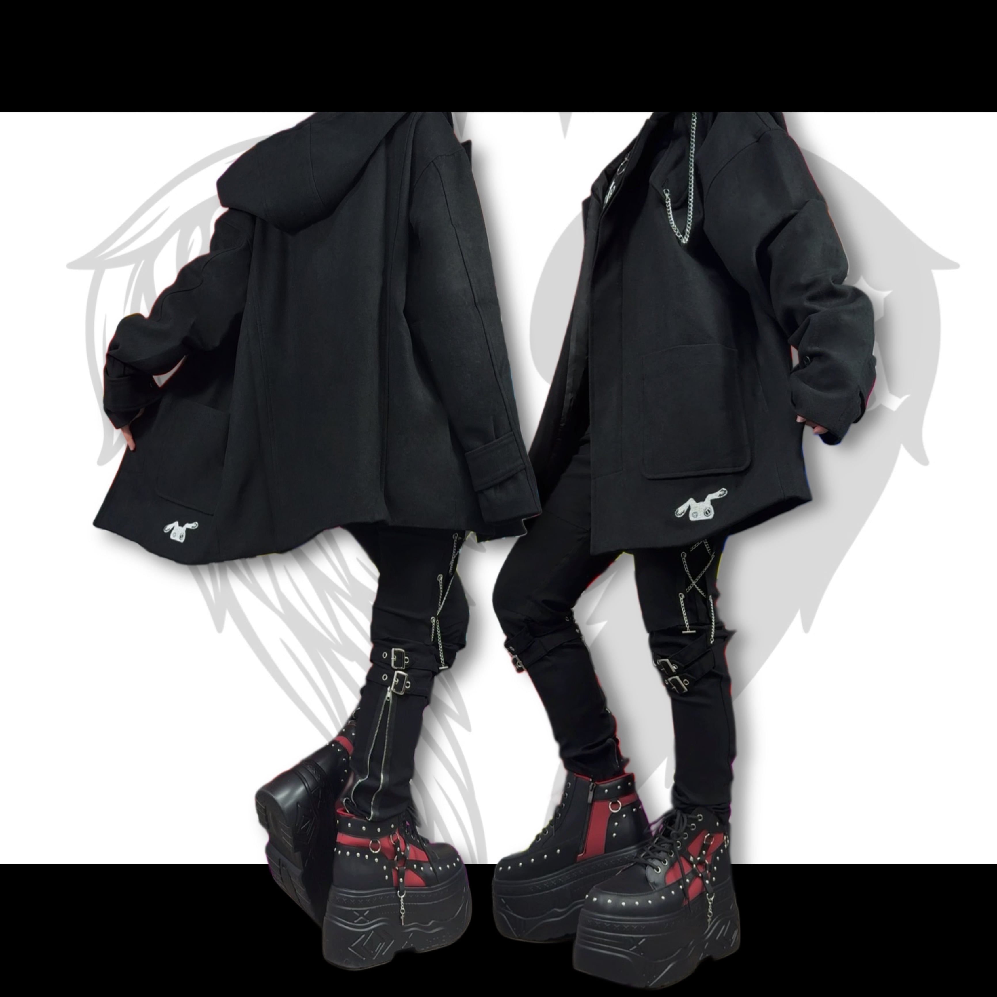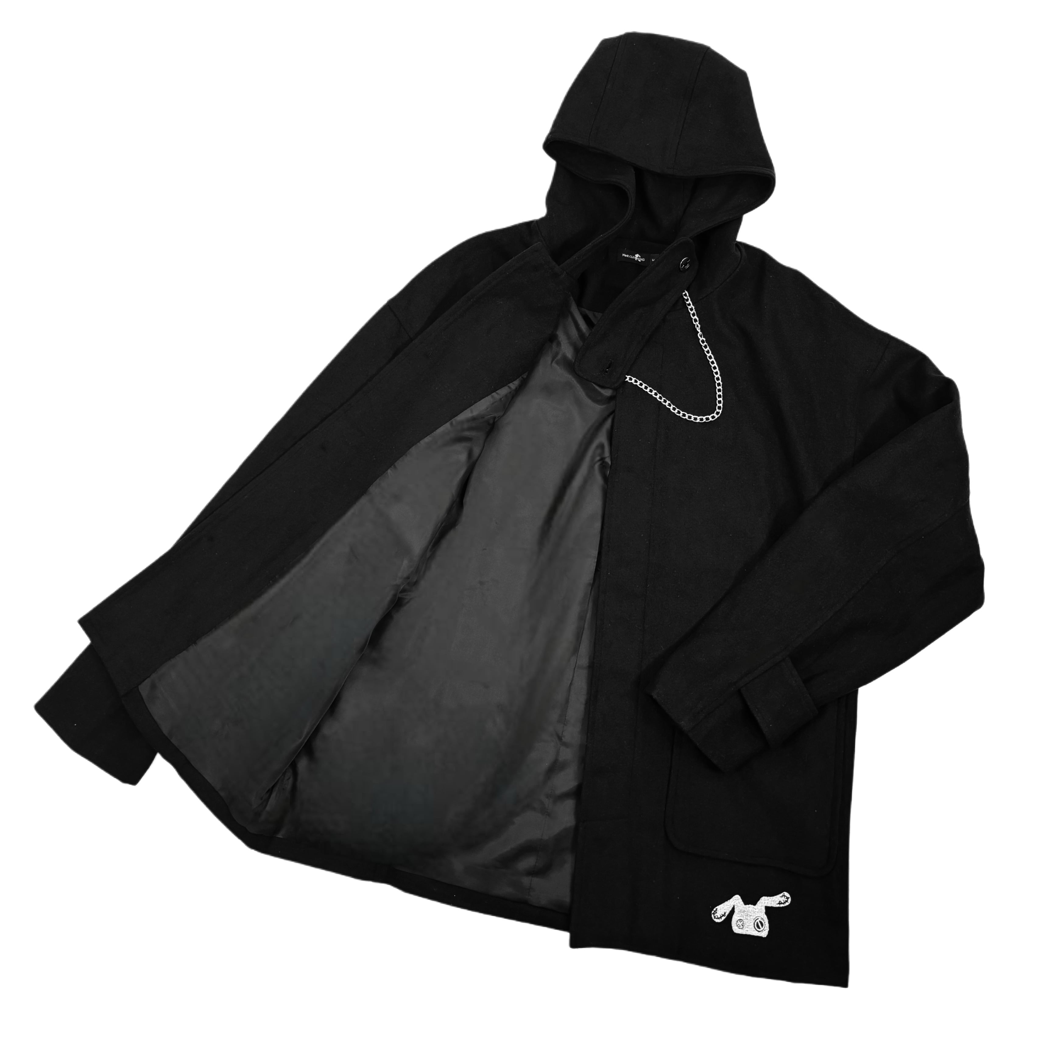 CHAIN×THROAT TAB BLACK COAT【比翼仕立て】