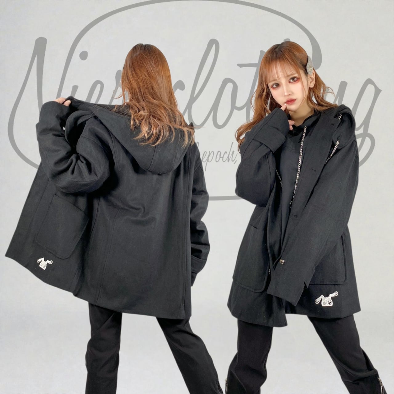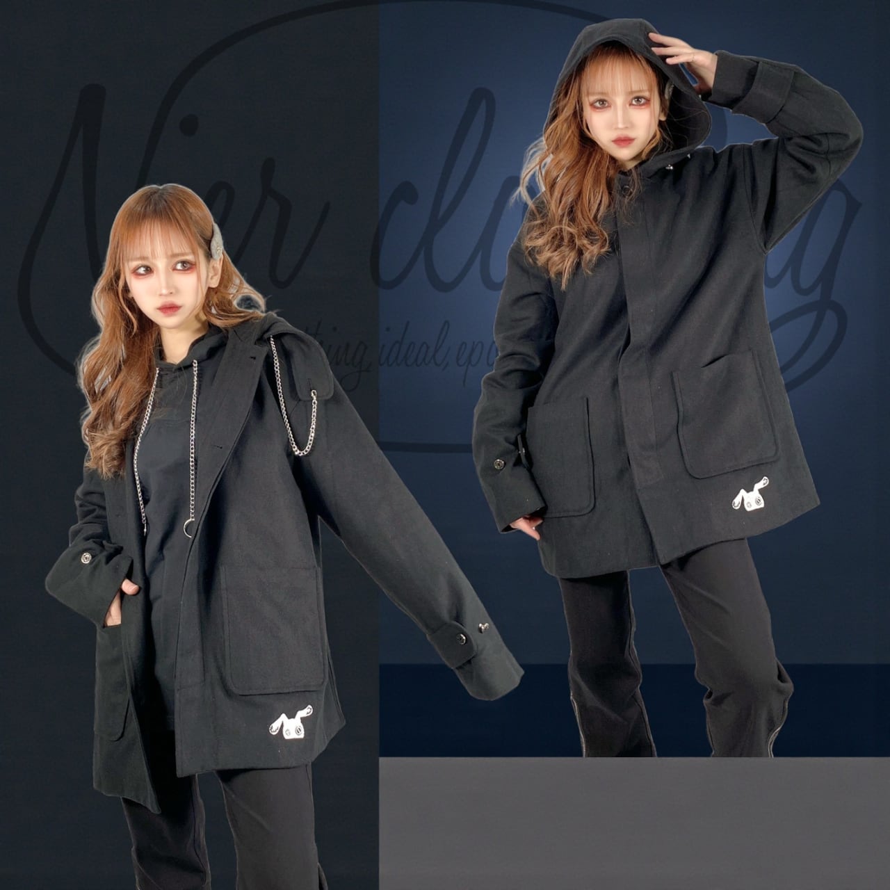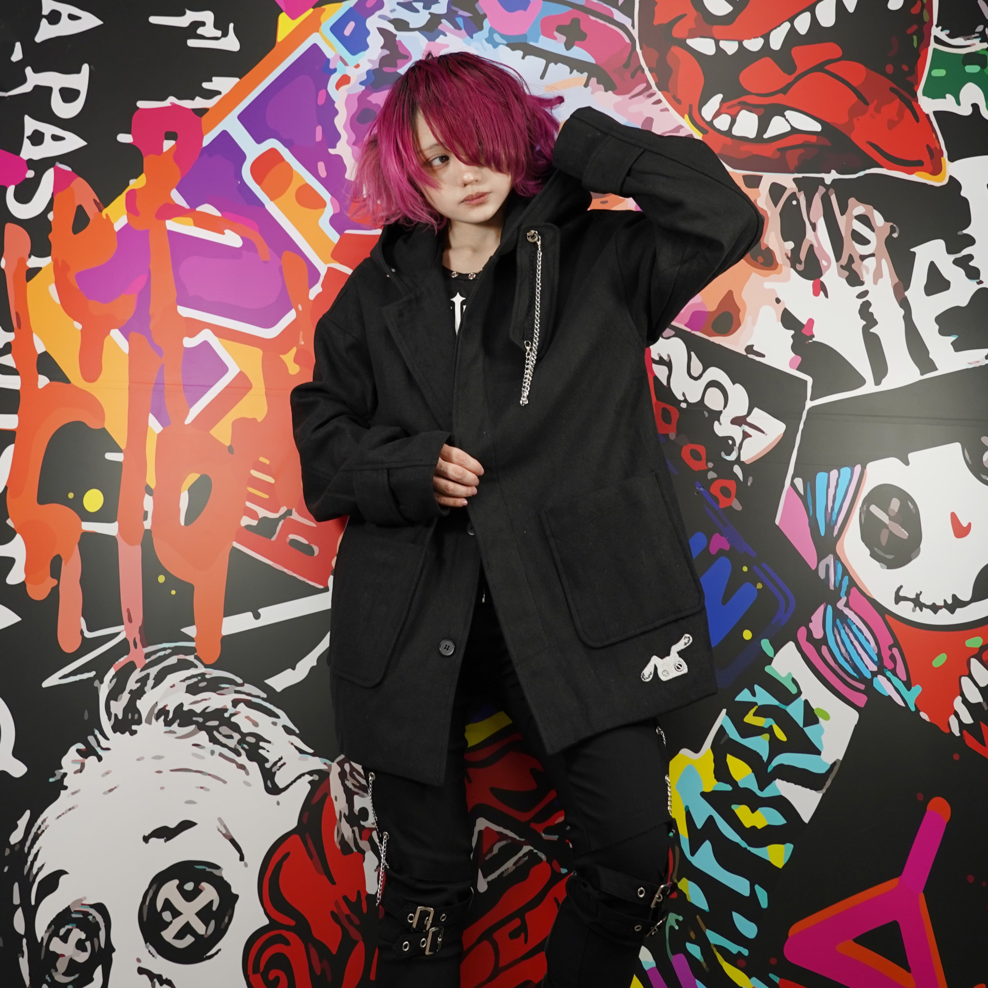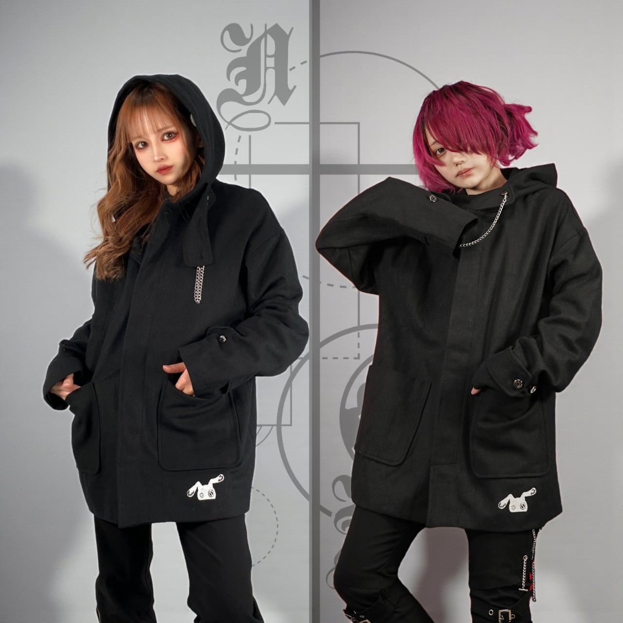 CHAIN×THROAT TAB BLACK COAT【比翼仕立て】