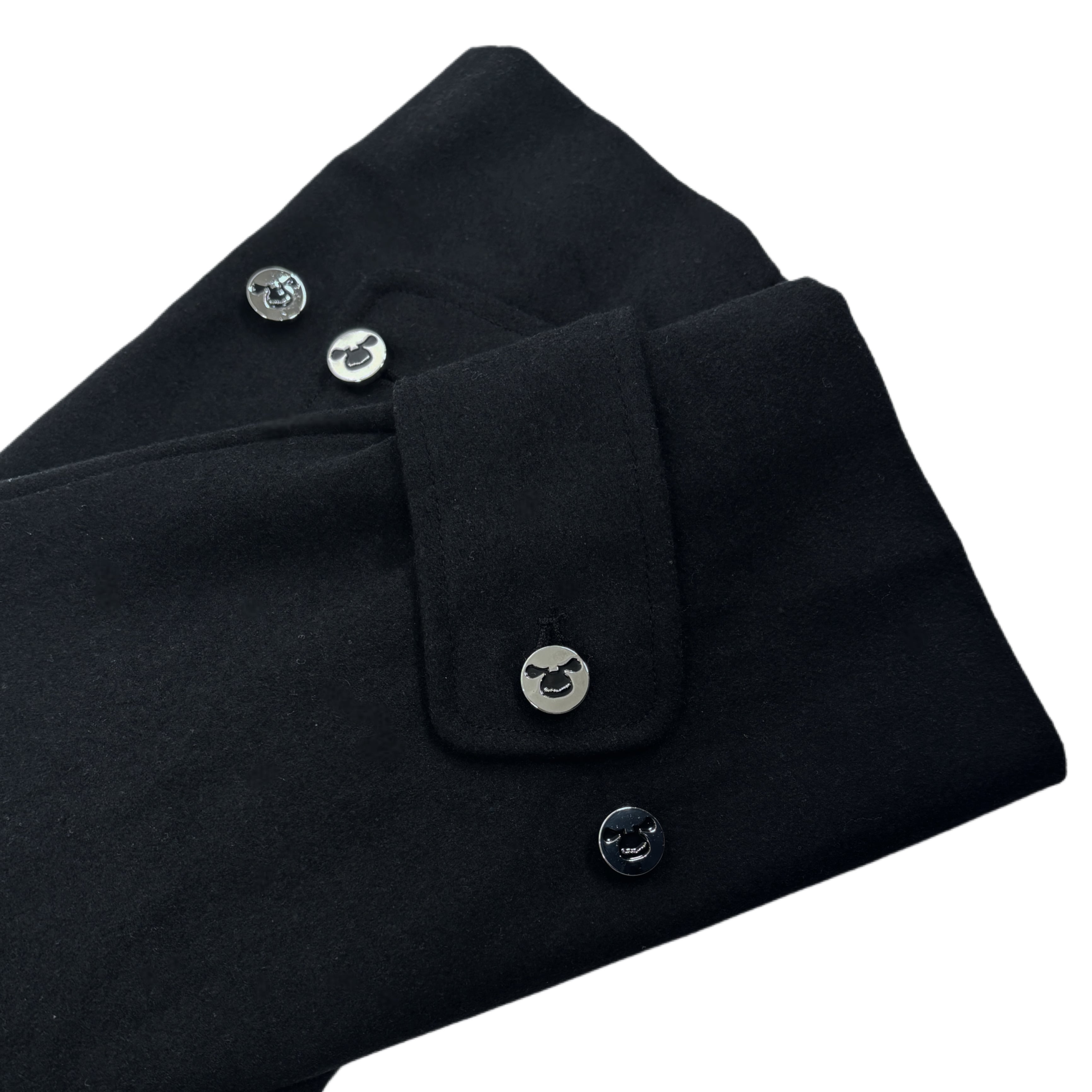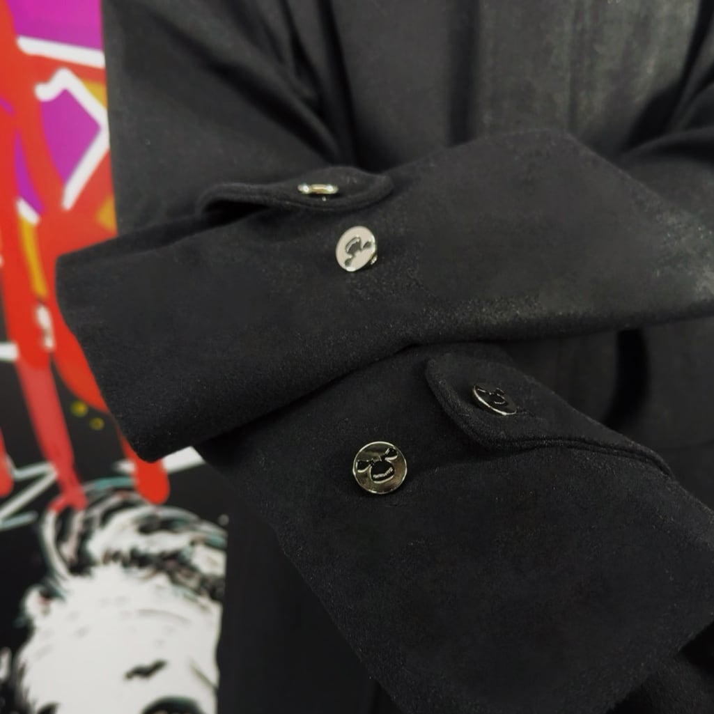 フロントは比翼仕立ての二層構造によりボタンが見えない仕様で、