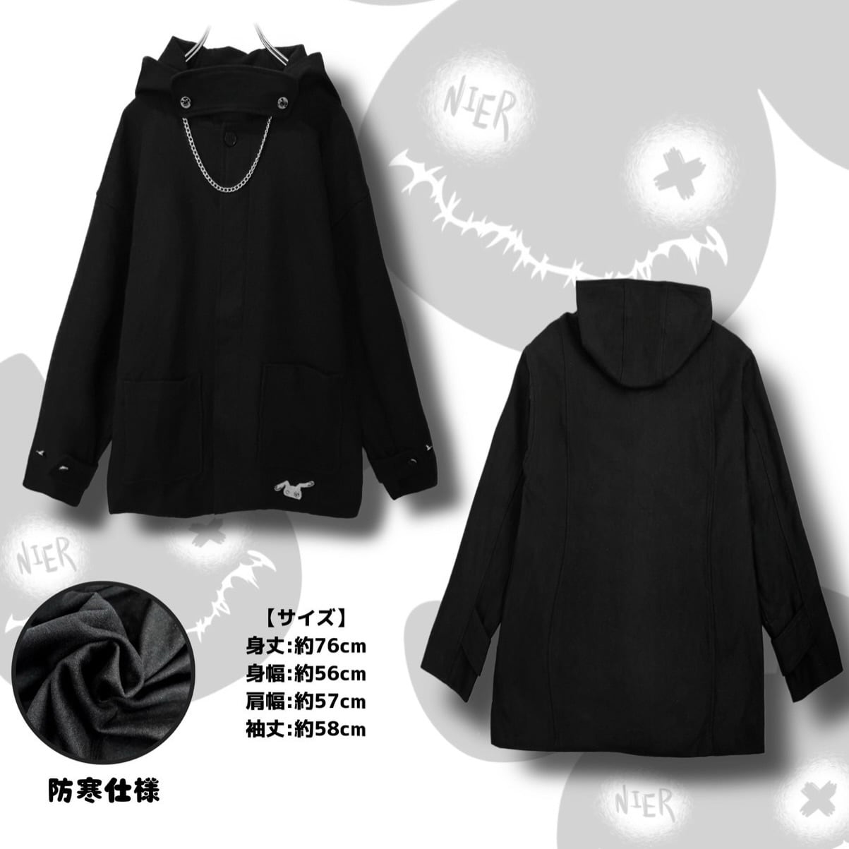※チェーンおよび首元パーツは装飾品のため、引っかかりにはご注意ください。