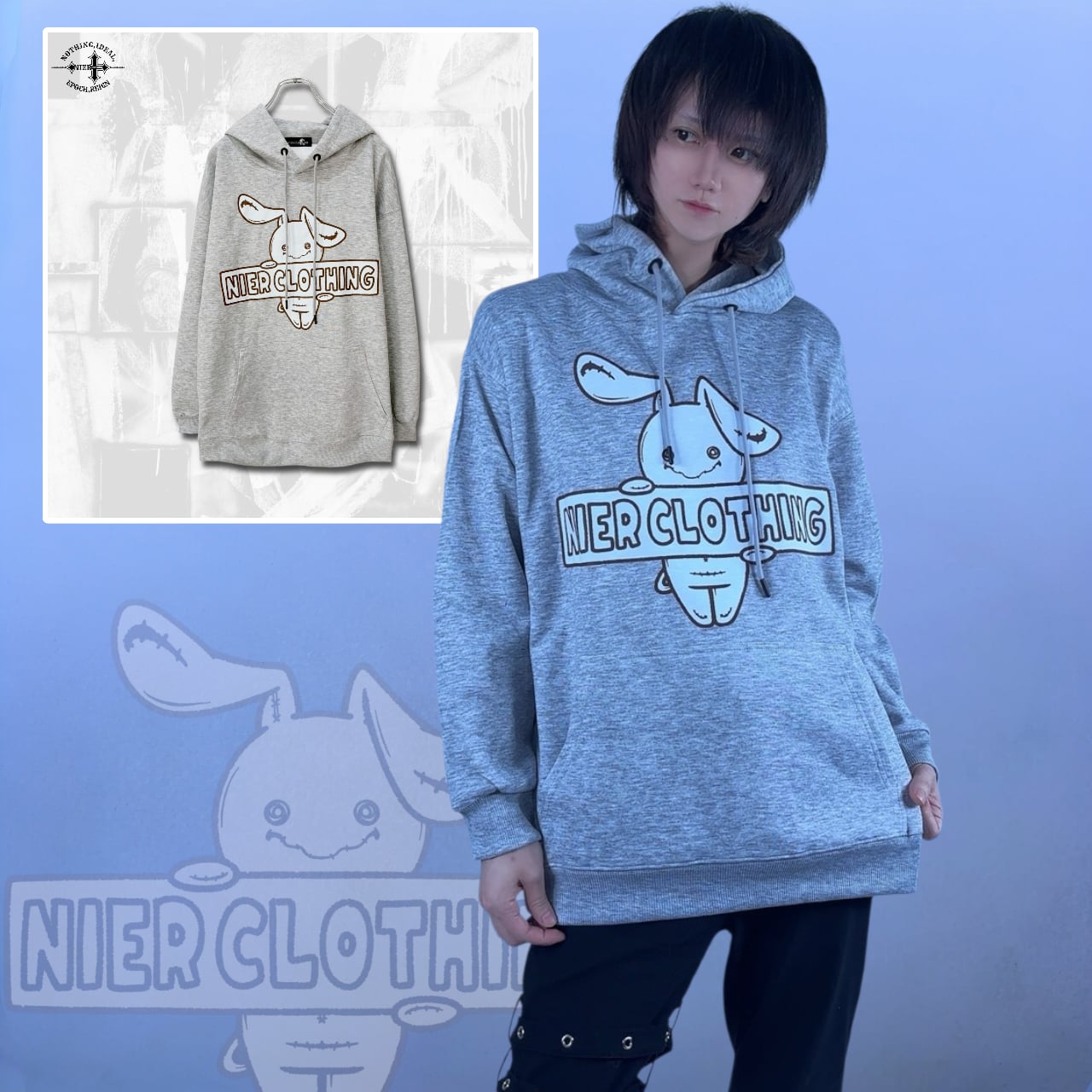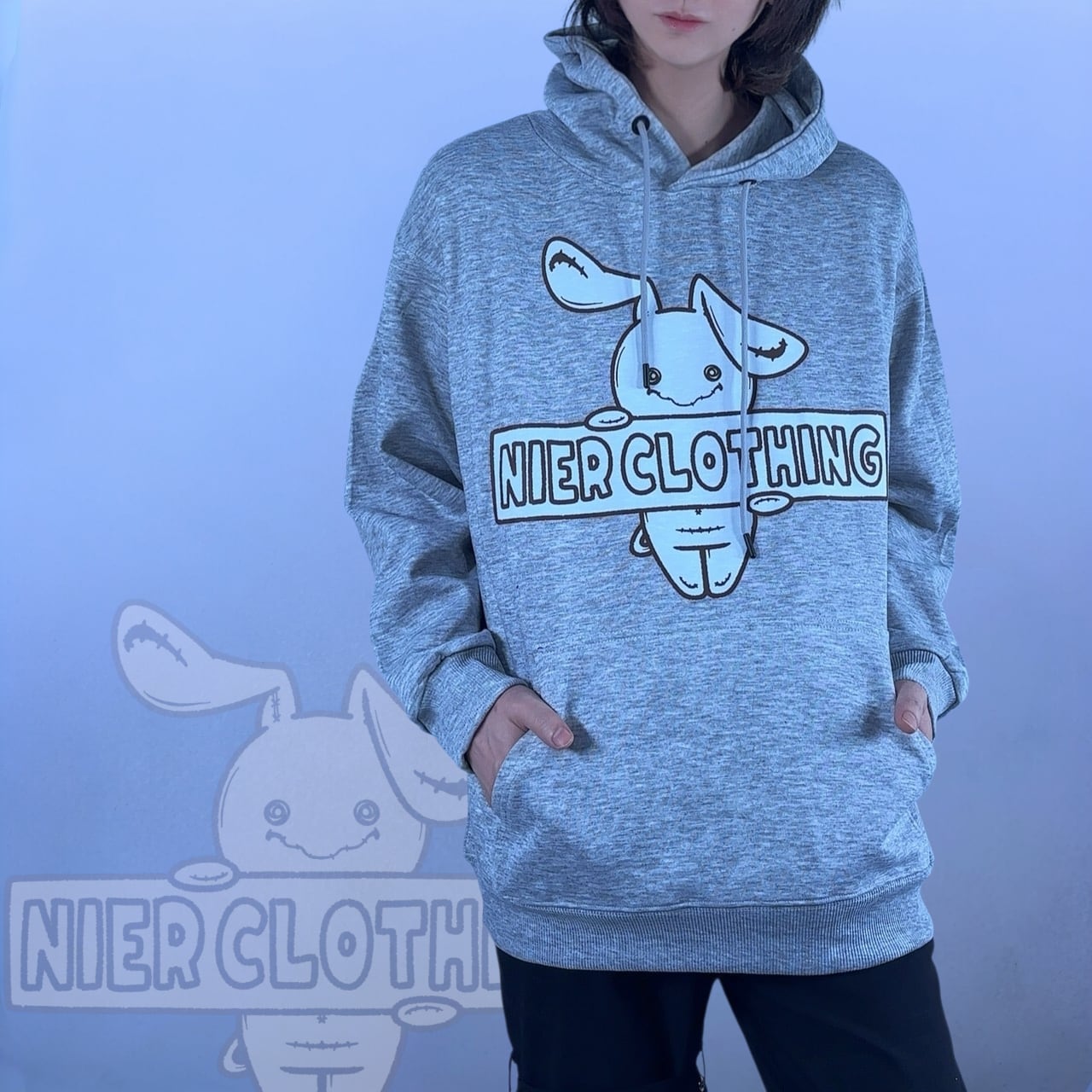 ゆる可愛いNieRちゃんデザインがフロントいっぱいにプリントされたパーカーが新登場。