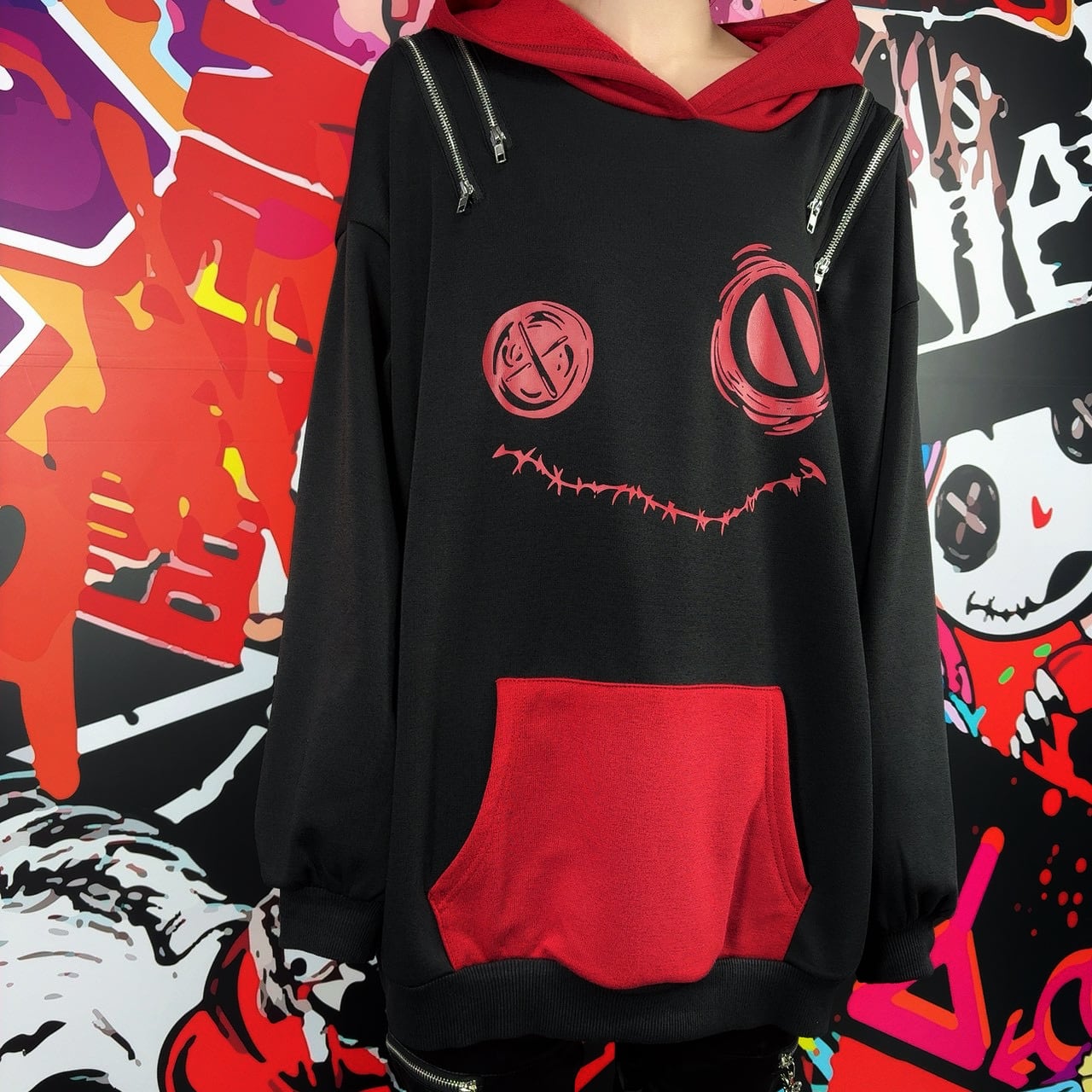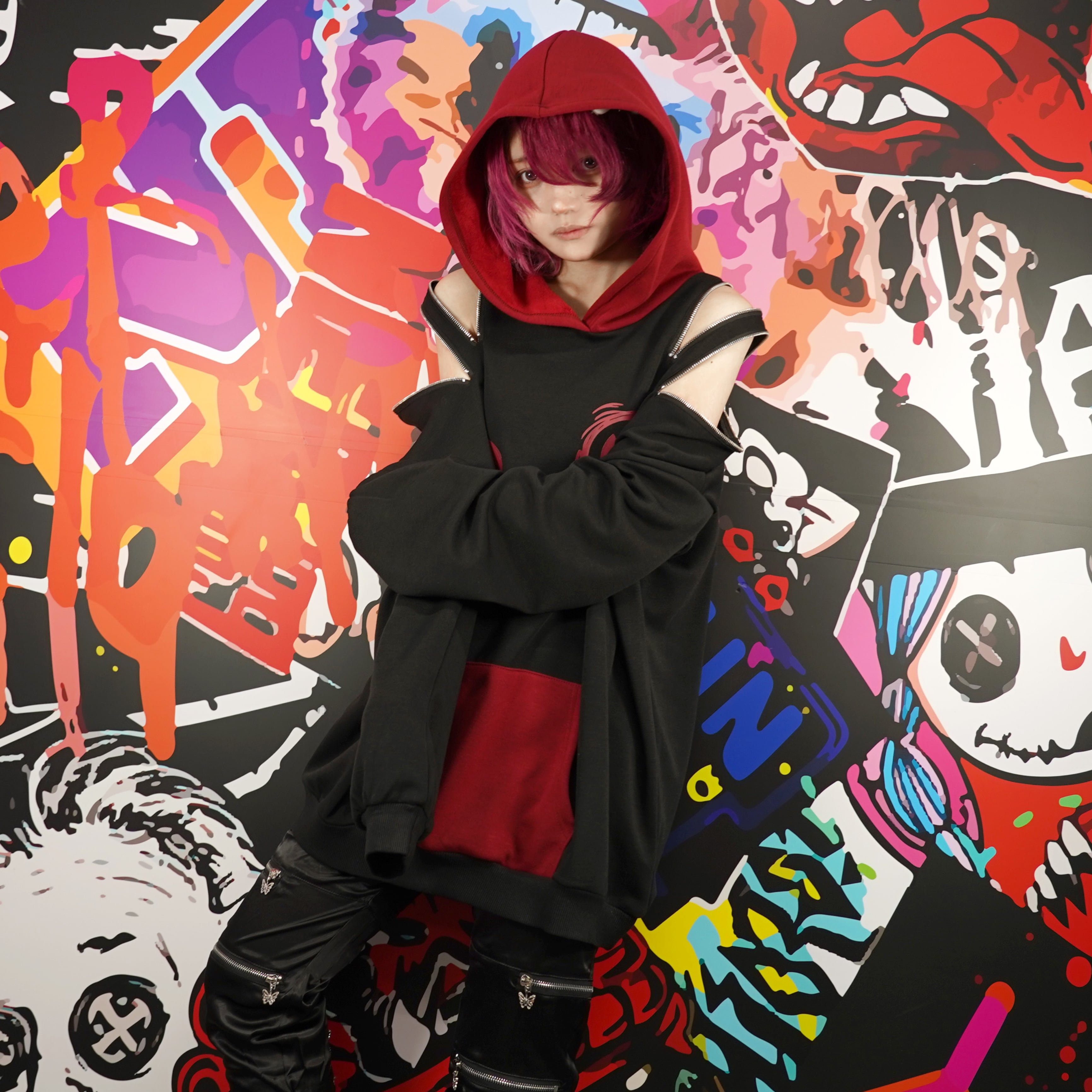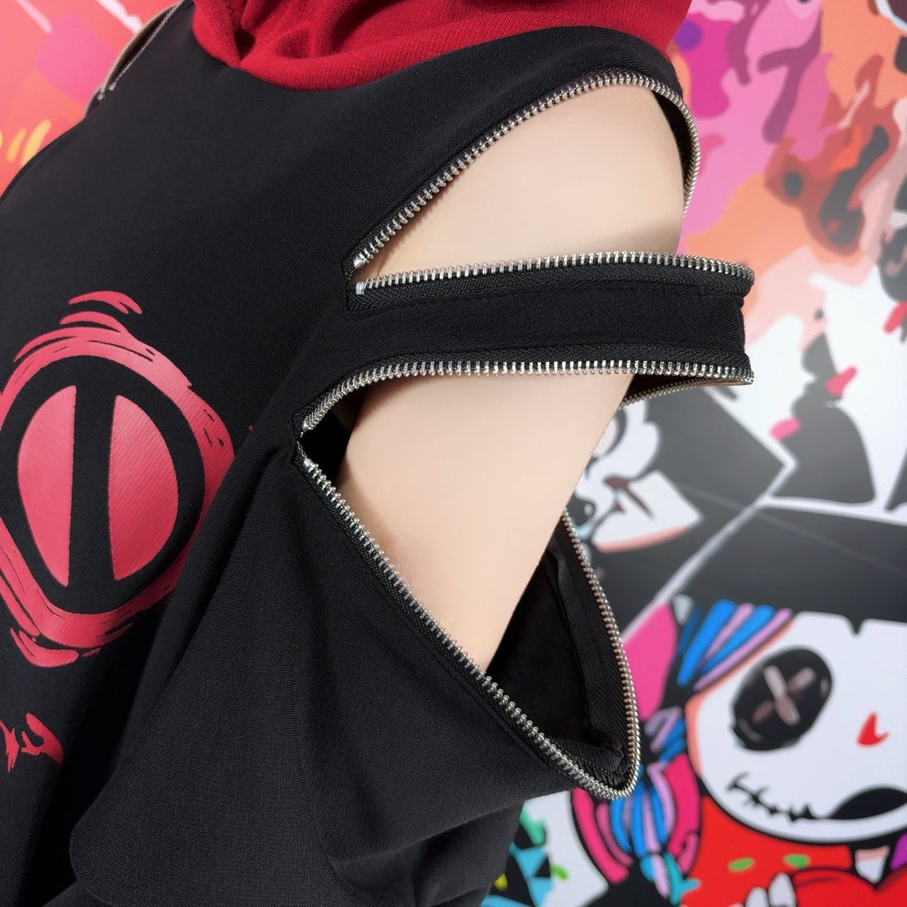両肩には左右それぞれ2本ずつの開閉可能ZIPを配置。