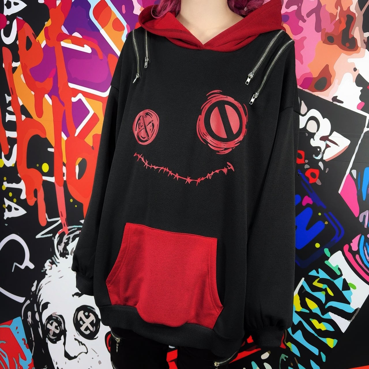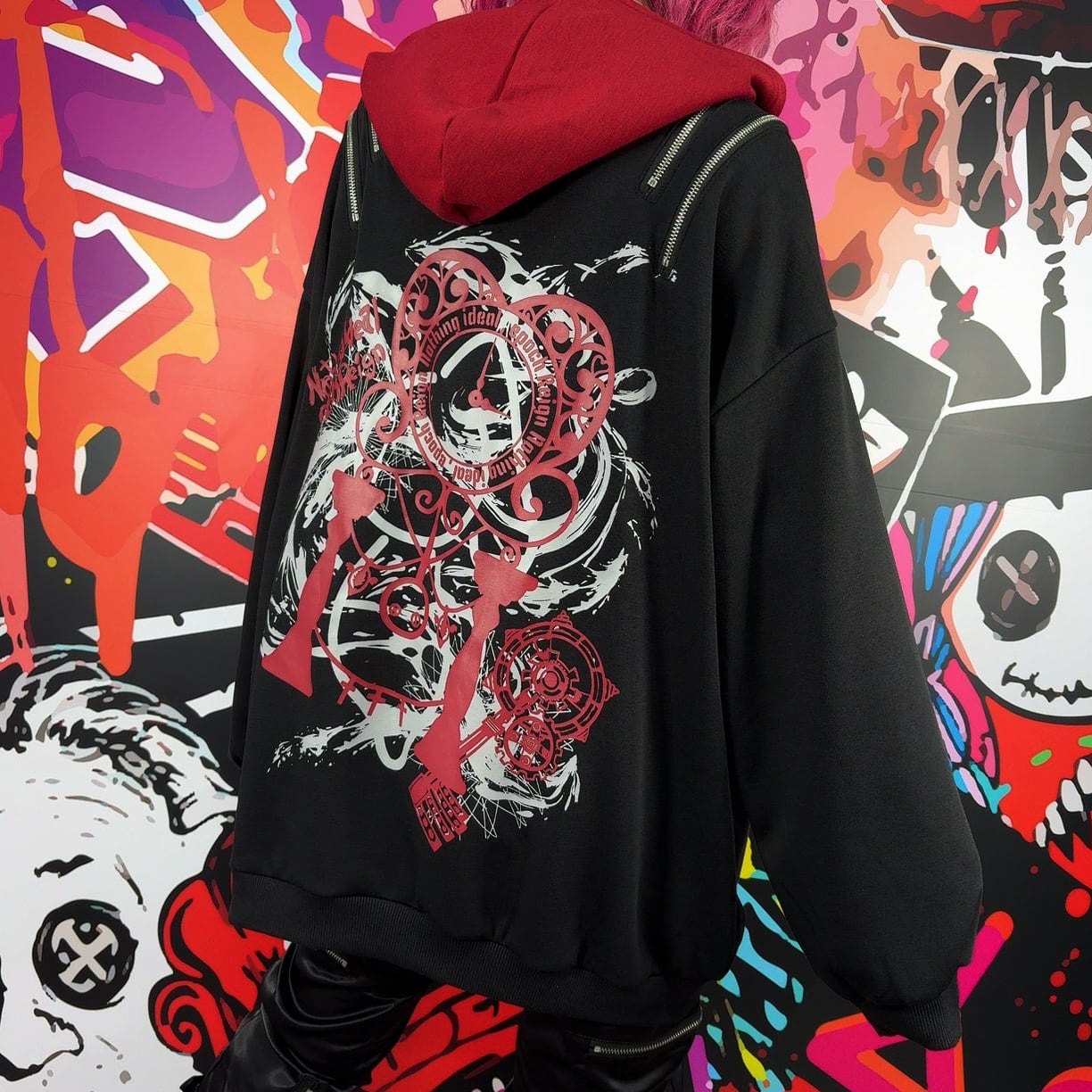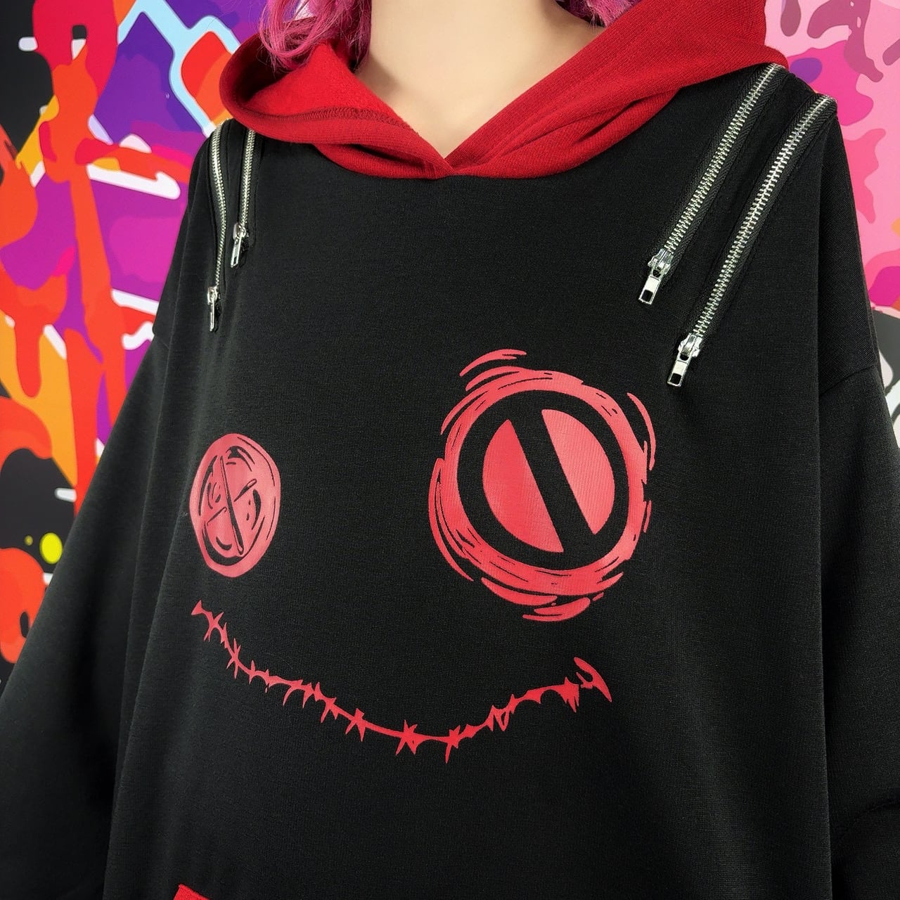 両肩には左右それぞれ2本ずつの開閉可能ZIPを配置。