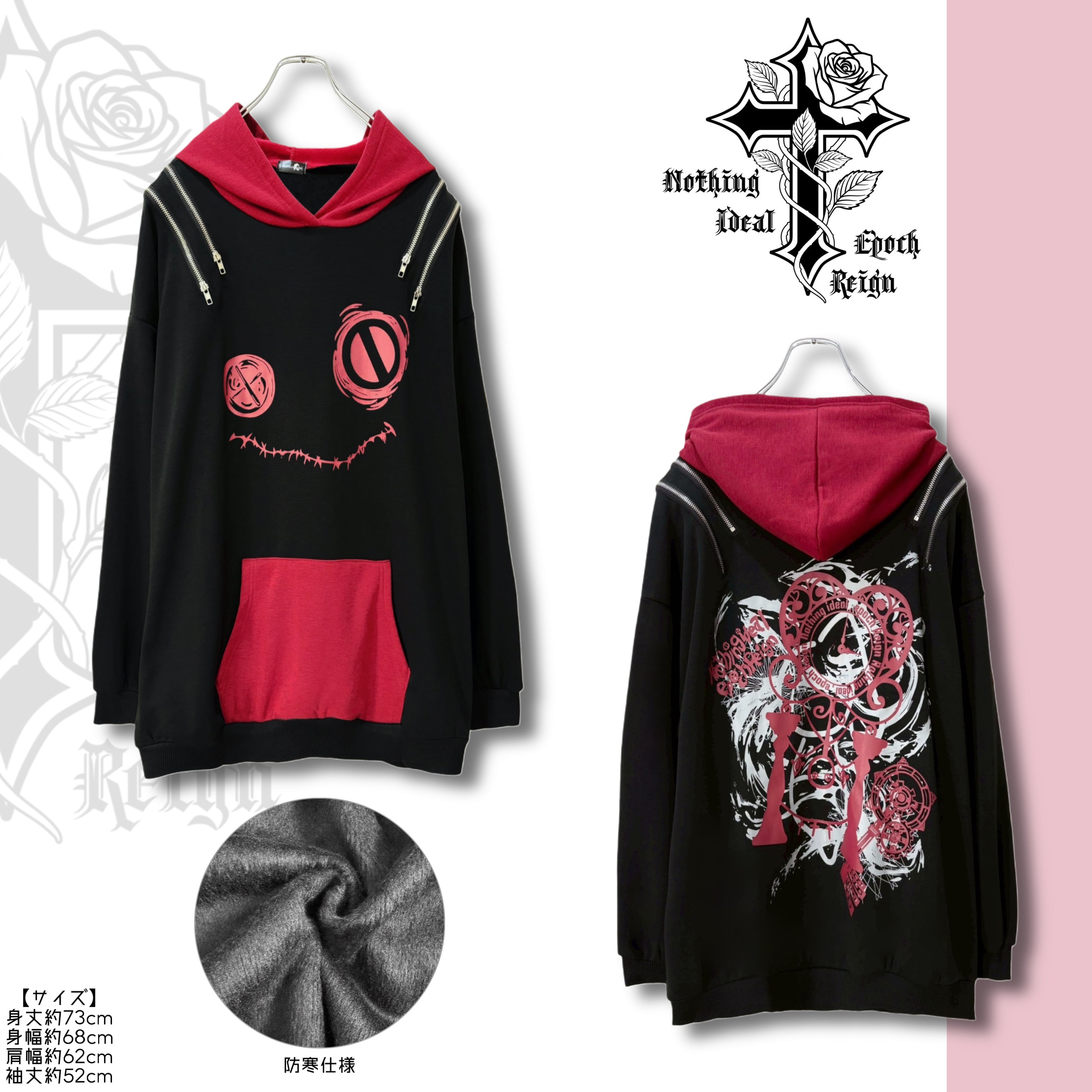 《新春応援55%OFF》防寒4ZIP SHOULDER FLEECE INNER PARKA【BLACK×RED】