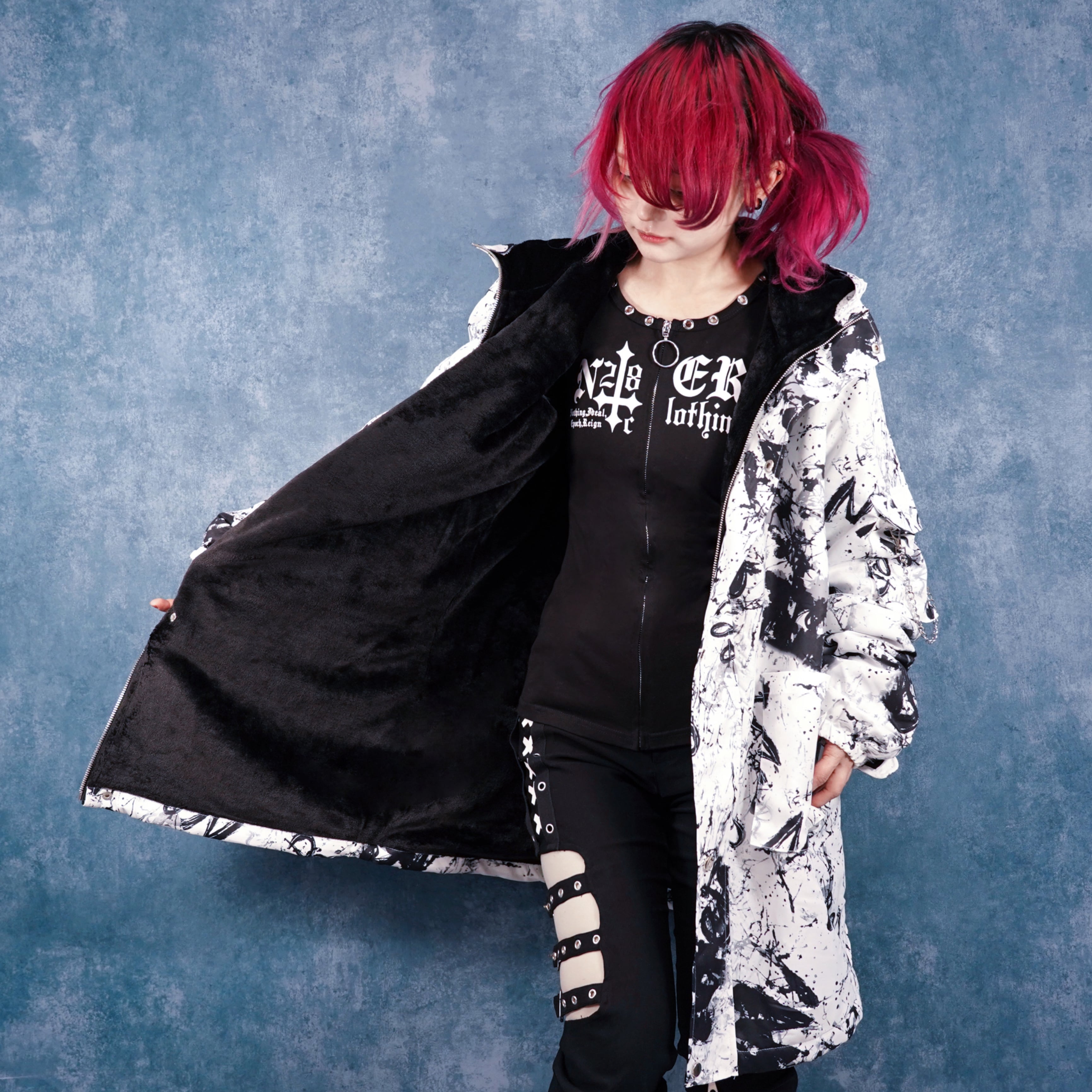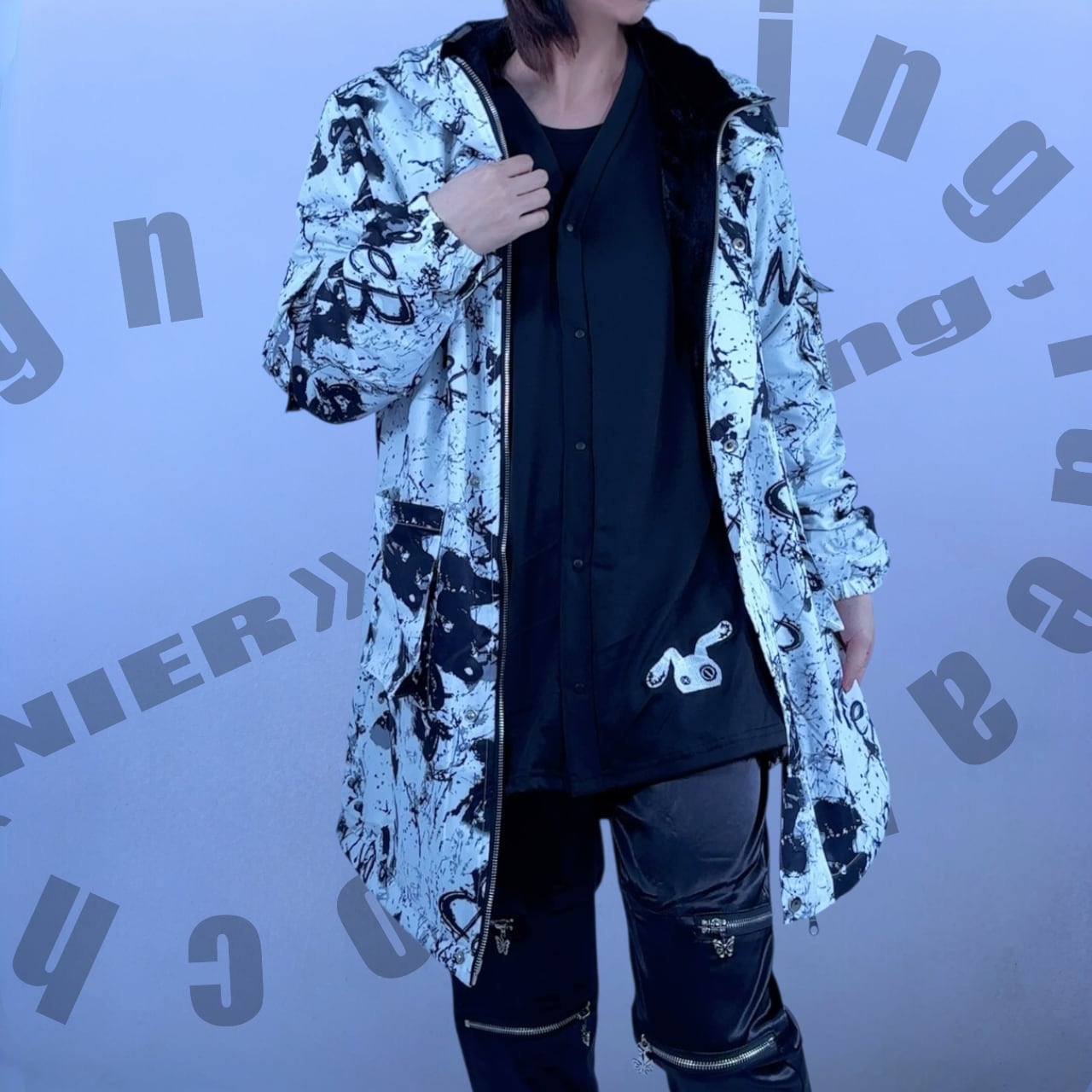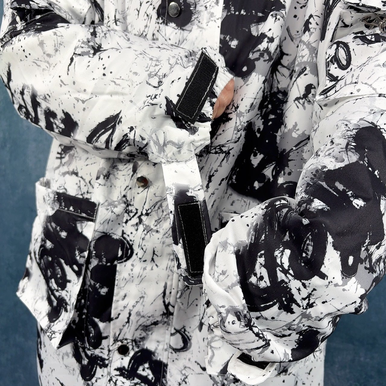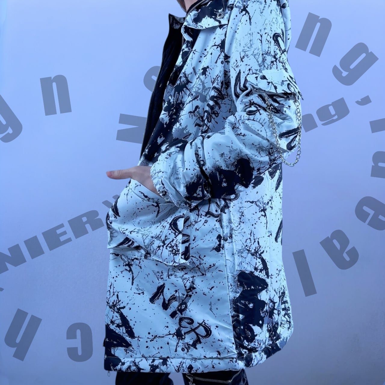 全面にCRASH柄を落とし込んだ、インパクトのあるデザインアウターです。