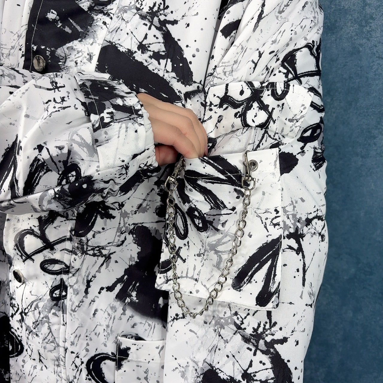 左袖にあるポケットには取り外し可能なチェーン付き✨
