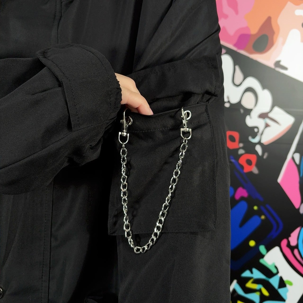 左袖にあるポケットには取り外し可能なチェーン付き✨
