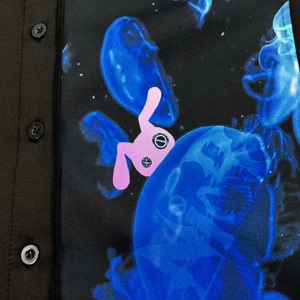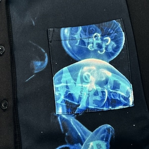 フロントからバックにかけて縦に配置されたクラゲプリントは、