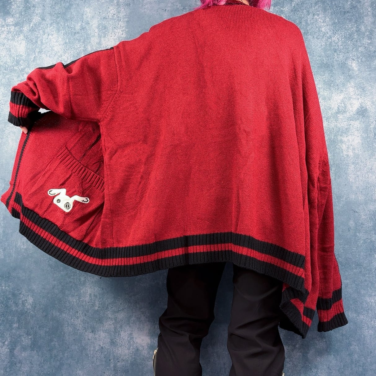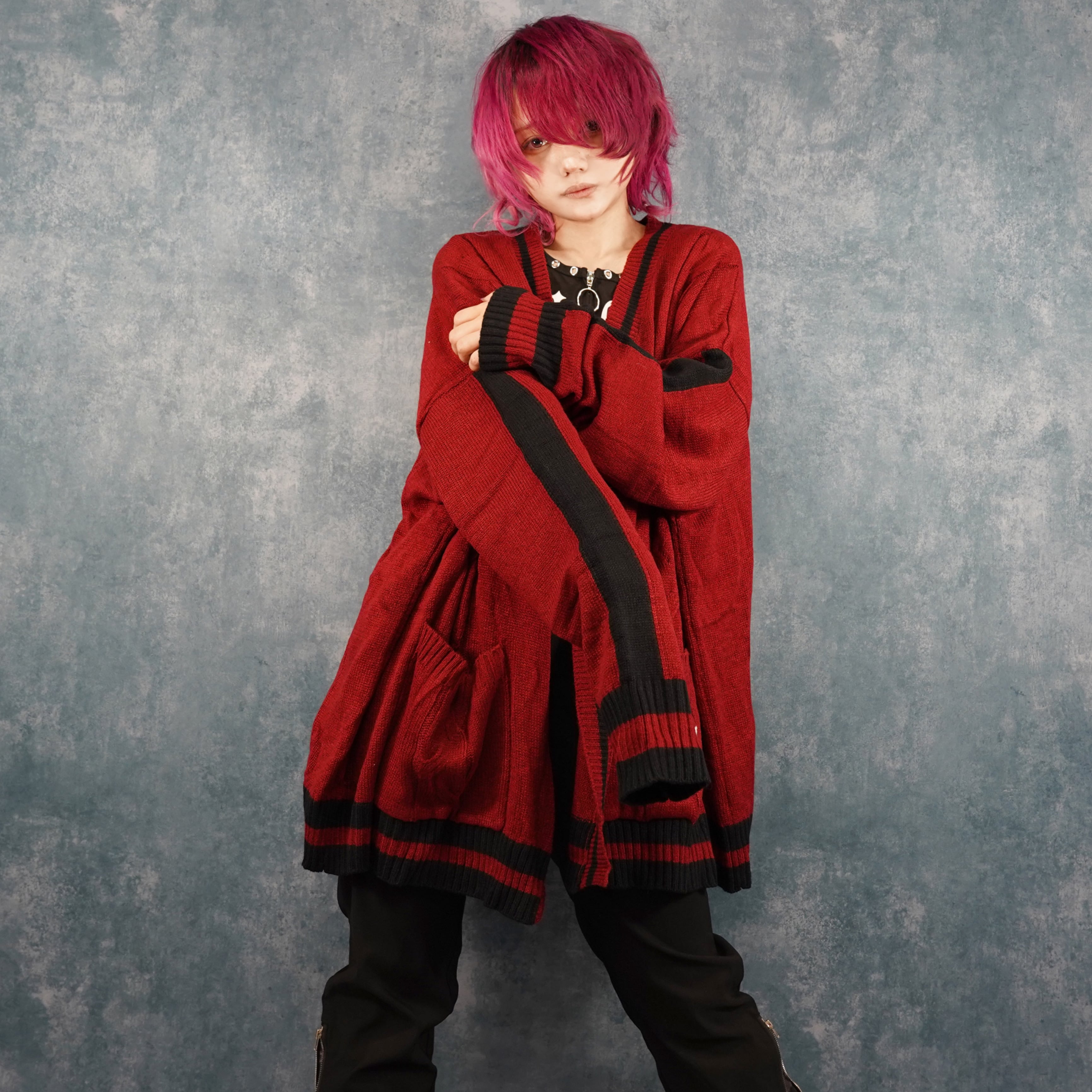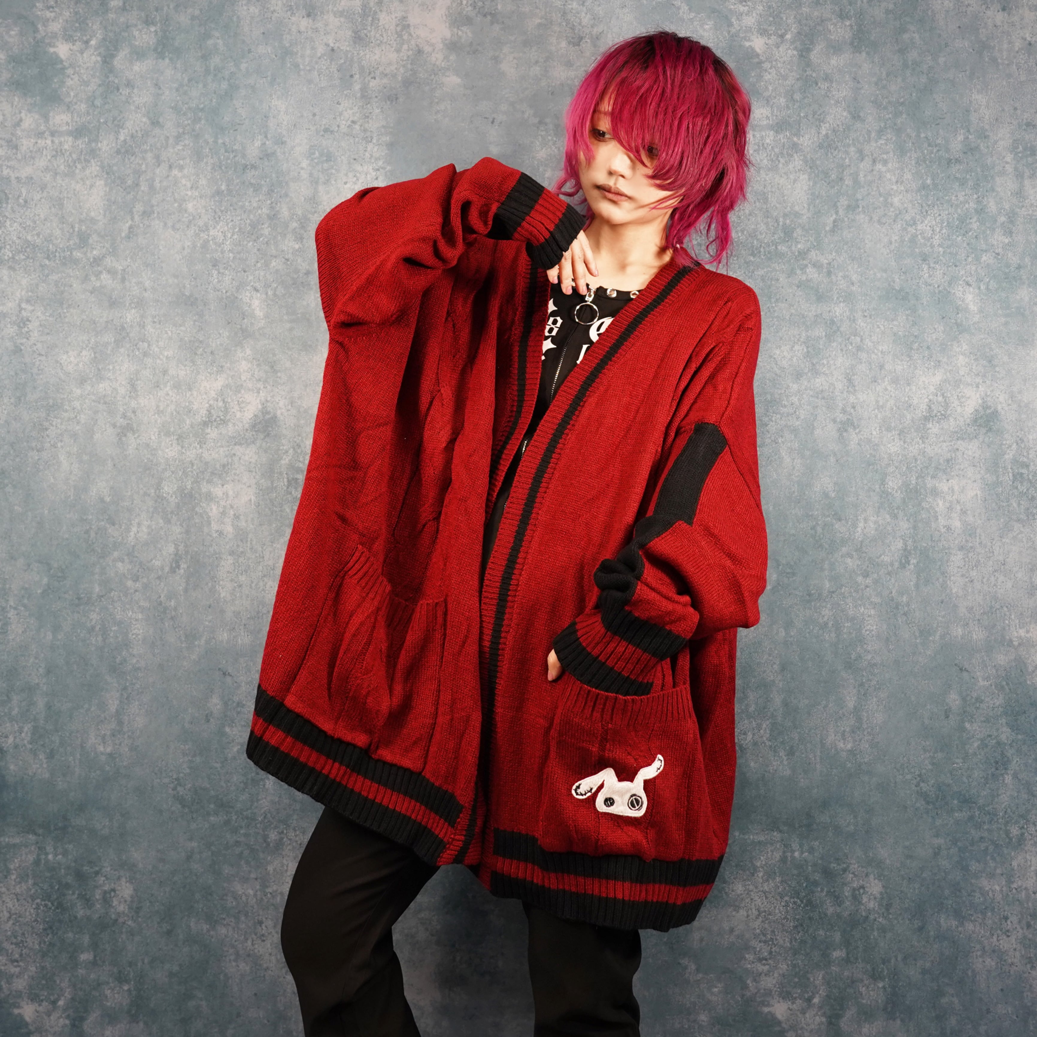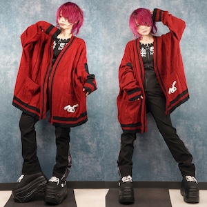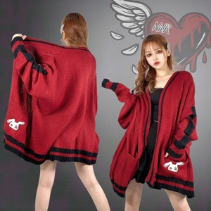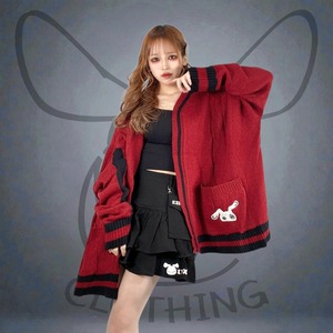 BUTTONLESS RED KNIT CARDIGAN【刺繍入り】