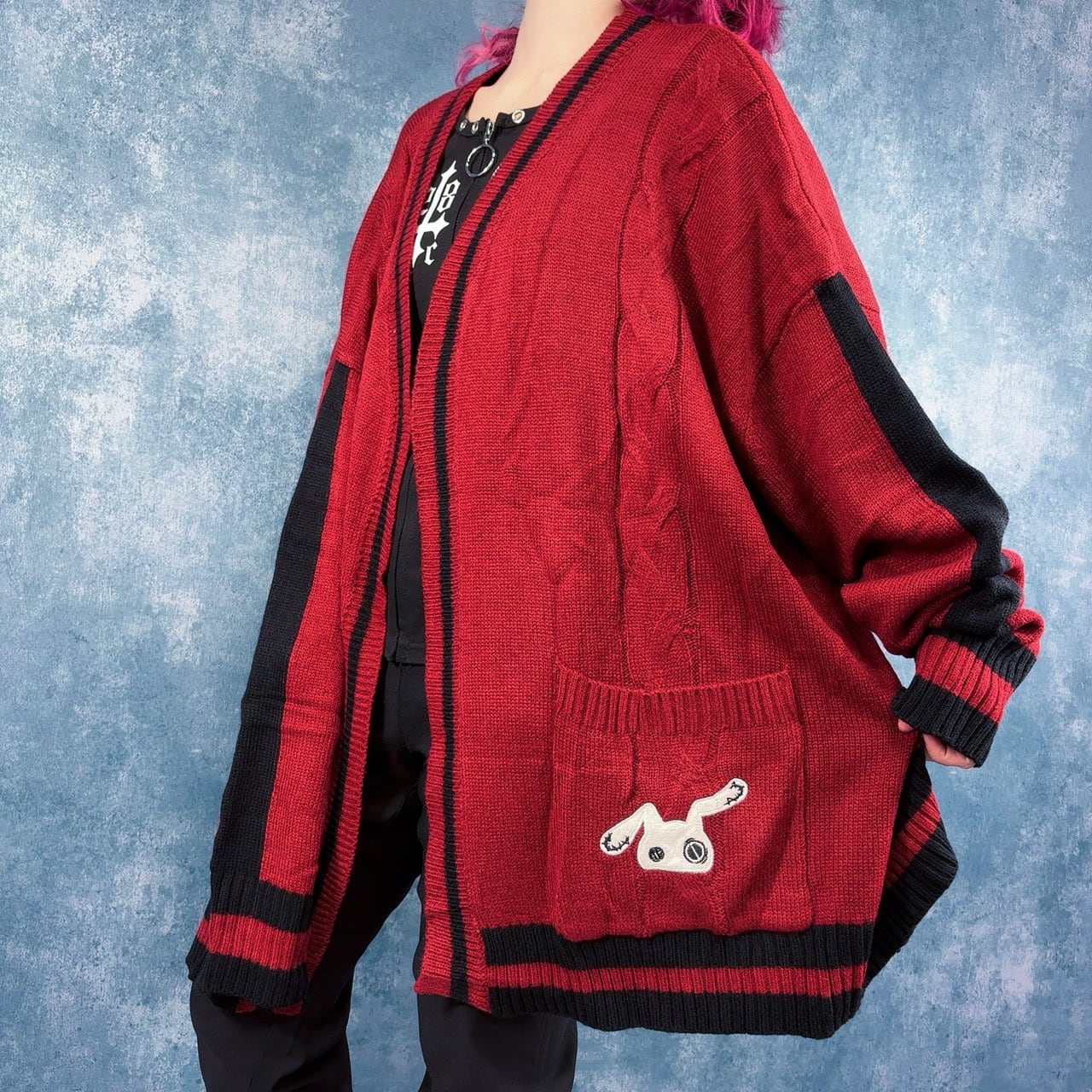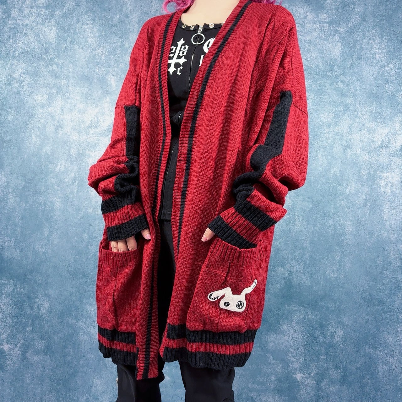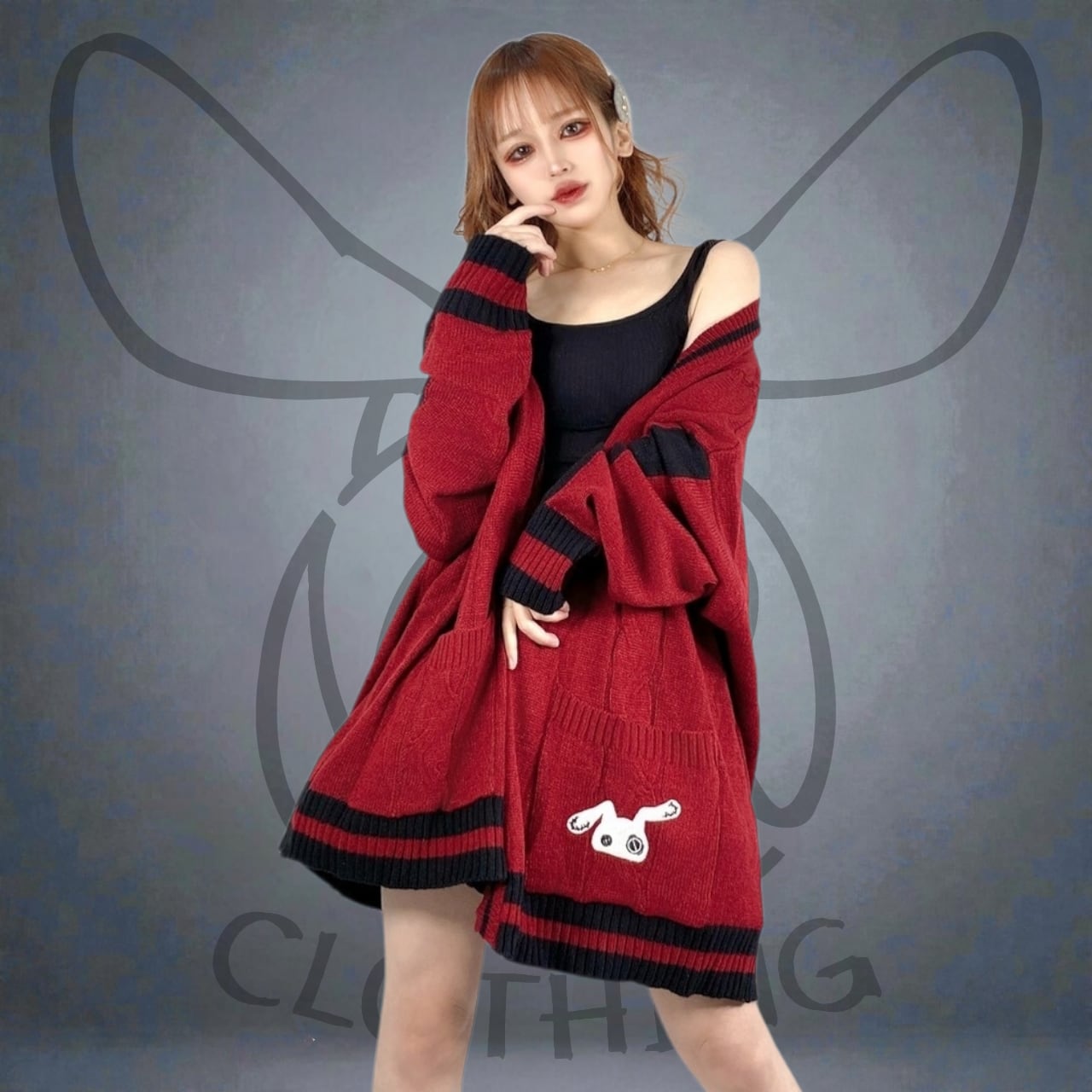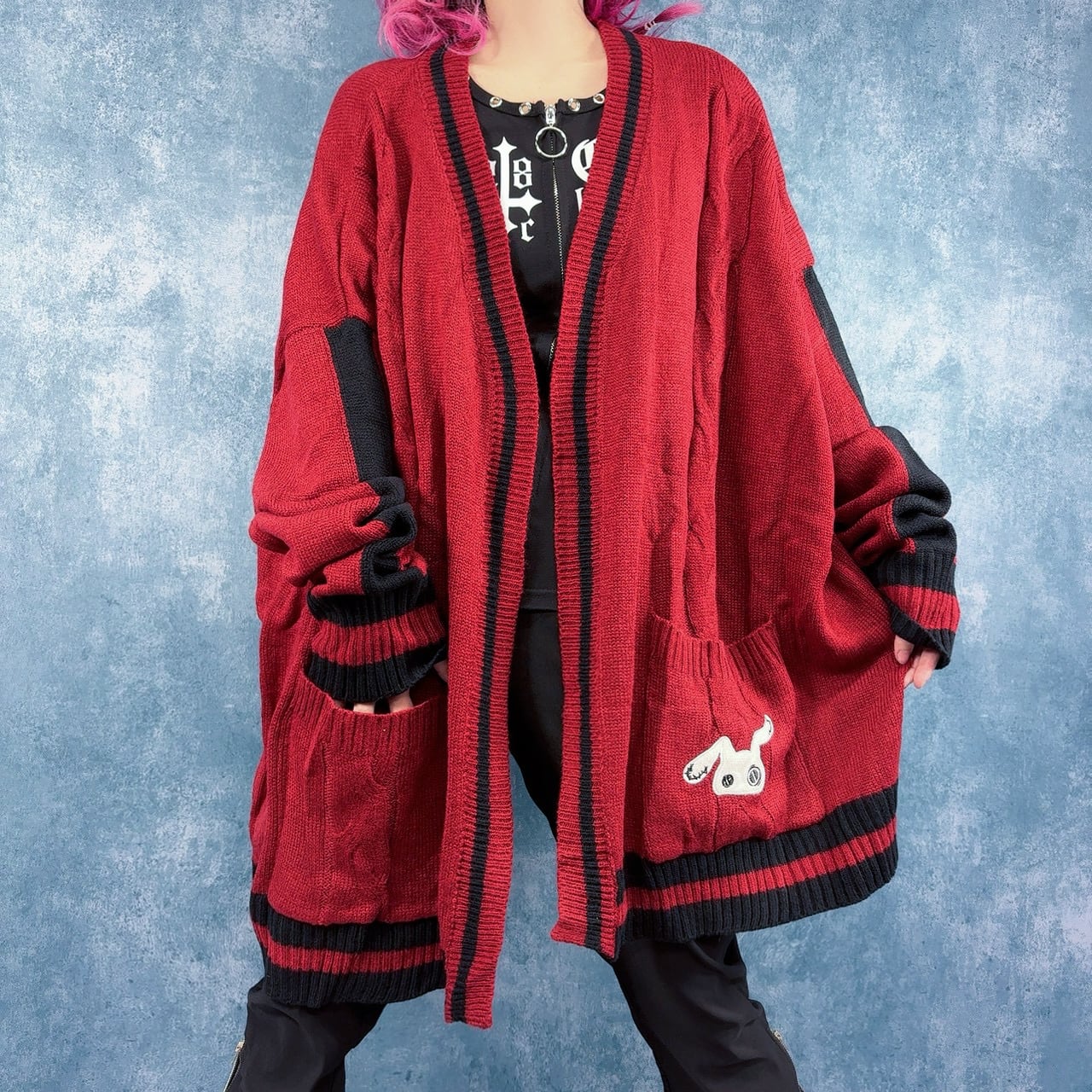 BUTTONLESS RED KNIT CARDIGAN【刺繍入り】