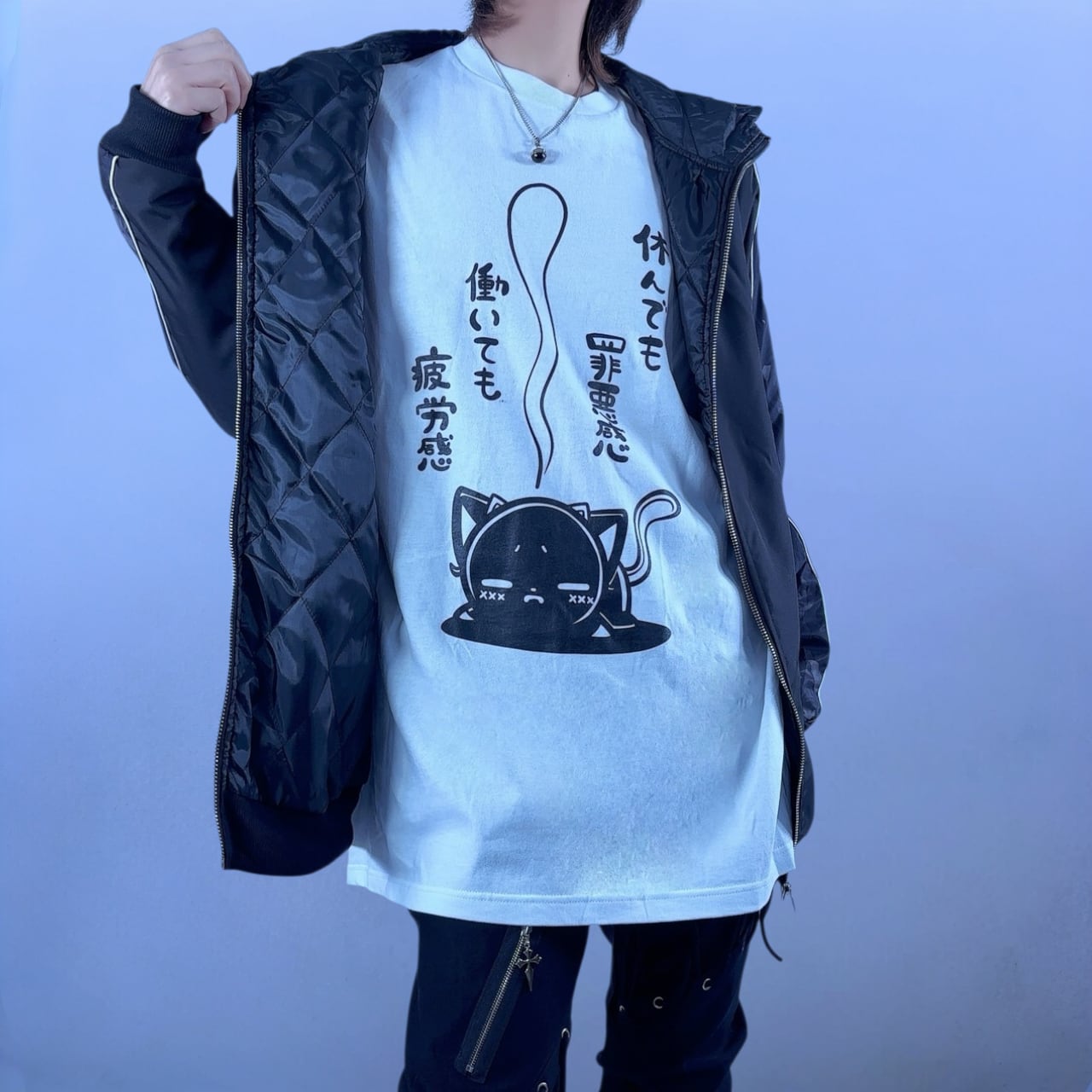 脱力した表情のシエルと、思わず共感してしまうメッセージを落とし込んだユーモアグラフィックカットソーが登場☆