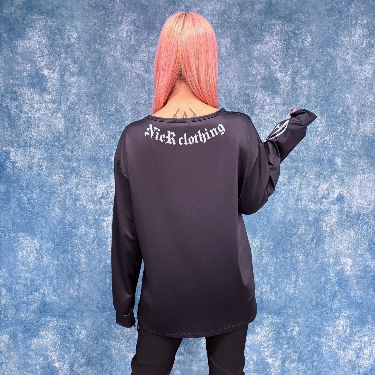 袖口には悪魔の翼モチーフのプリントを配置。