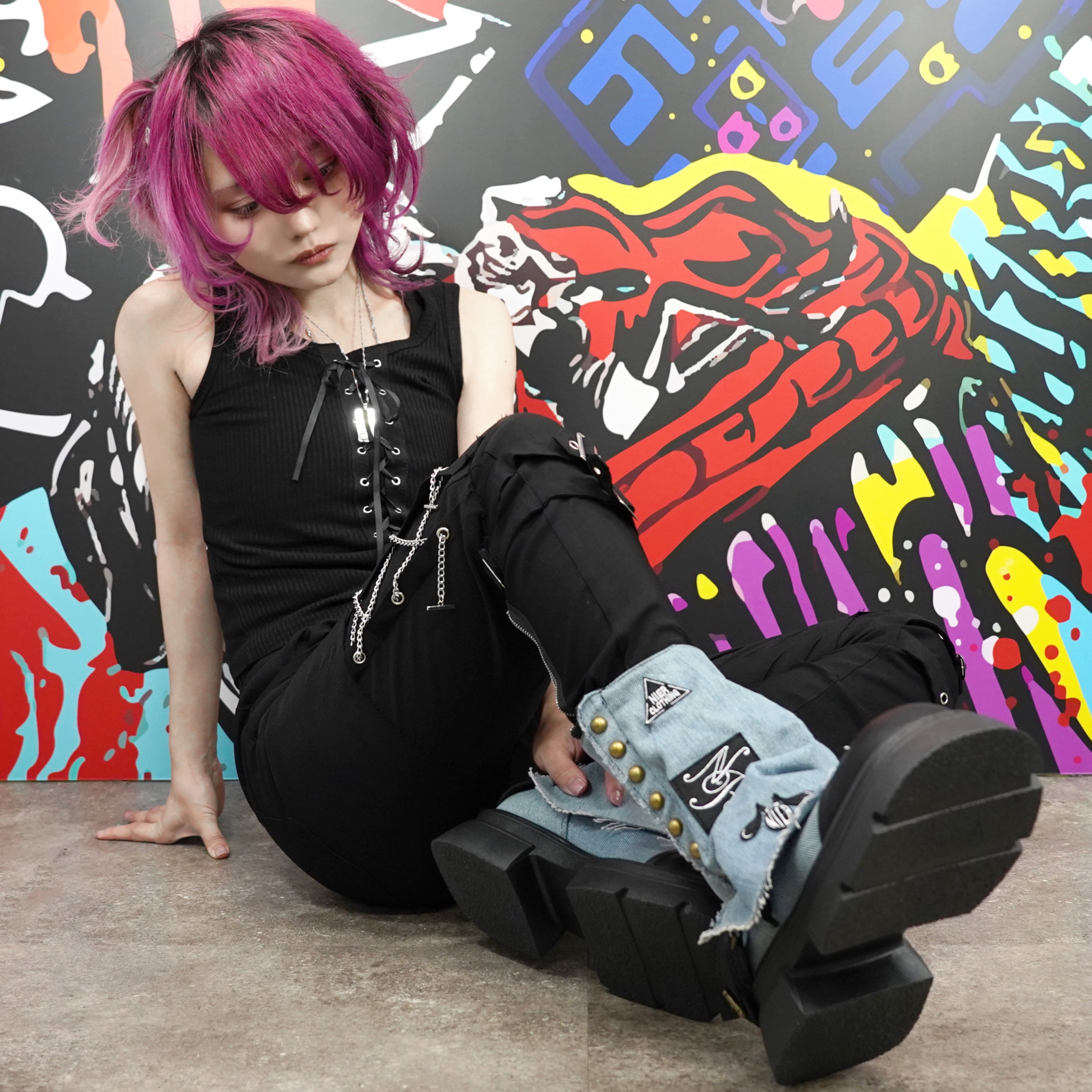 無骨さと可愛らしさを融合させた独創的なデザインが、足元から個性を引き立てます。