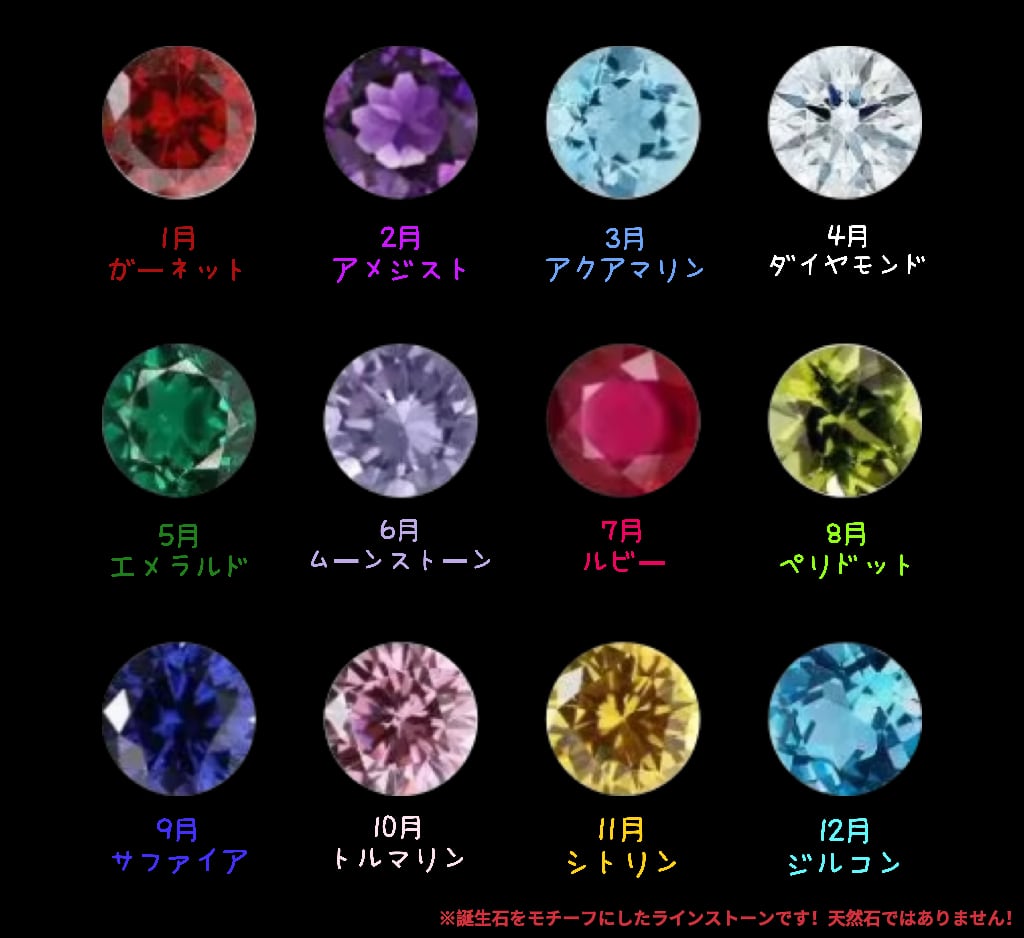 12色から選べるバースストーンカラーのラインストーンをあしらった