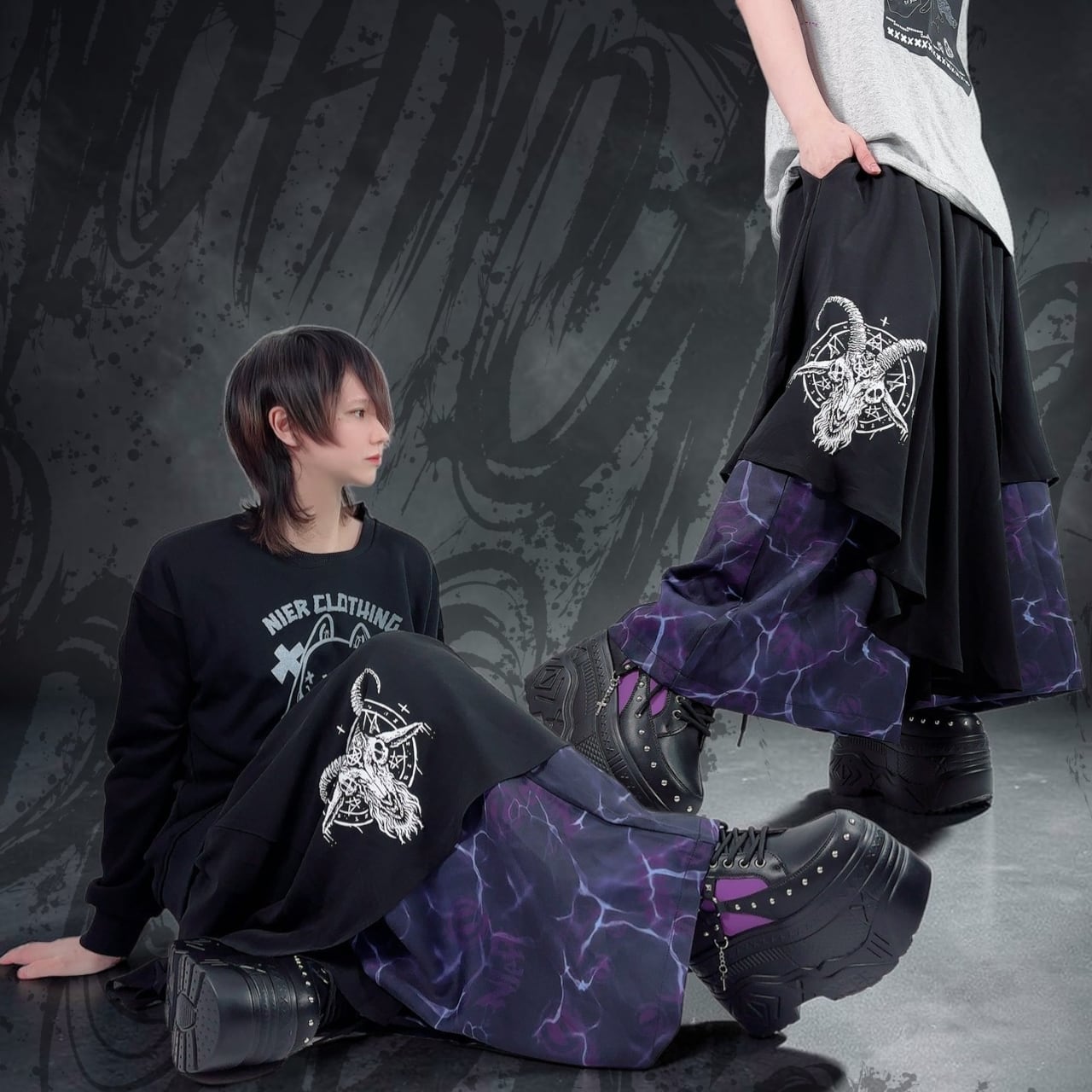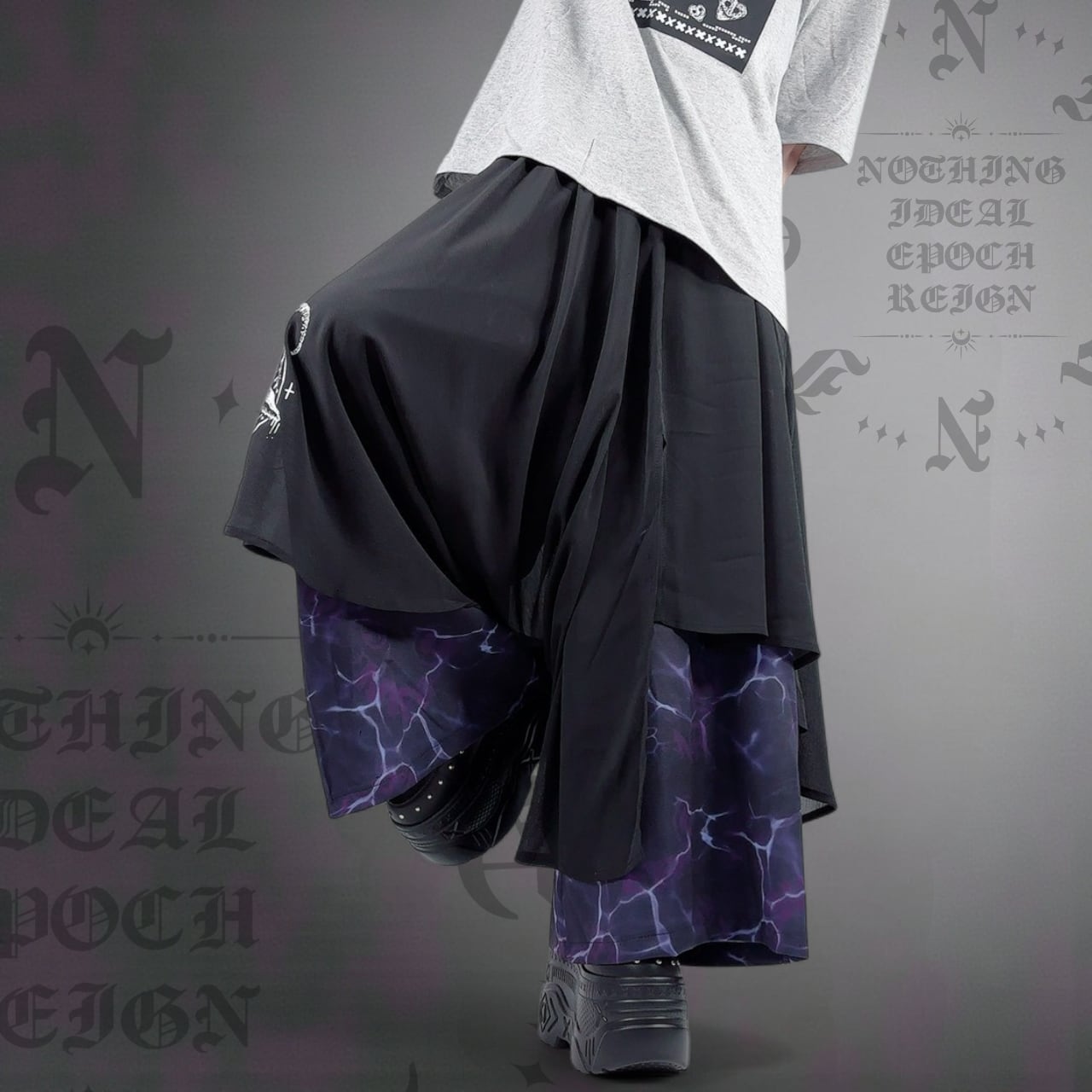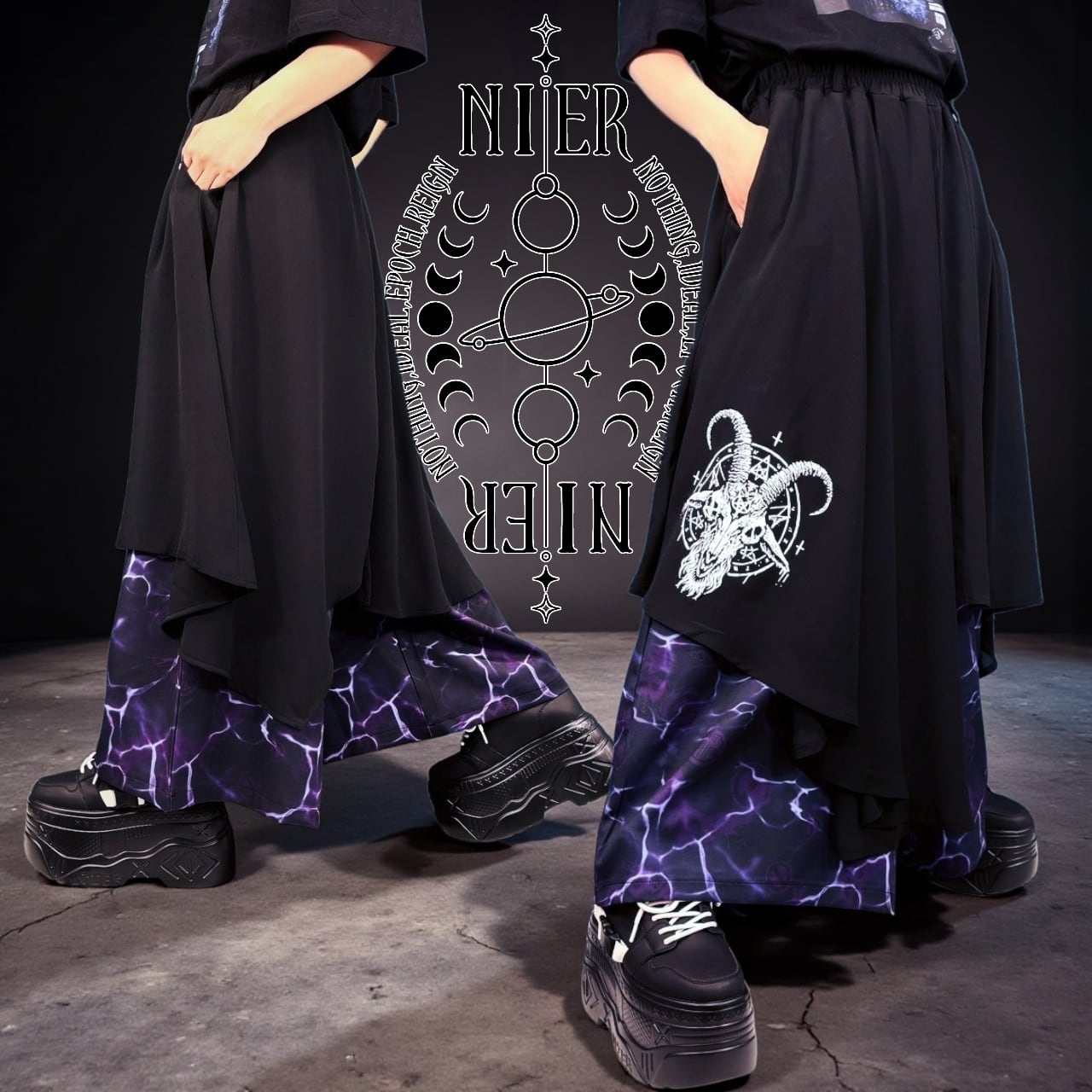 《3/3日ゾロ目の日限定特別大特価》フラップレイヤードワイドパンツ【BAPHOMET】