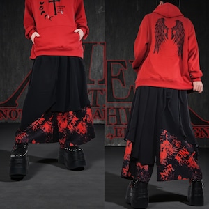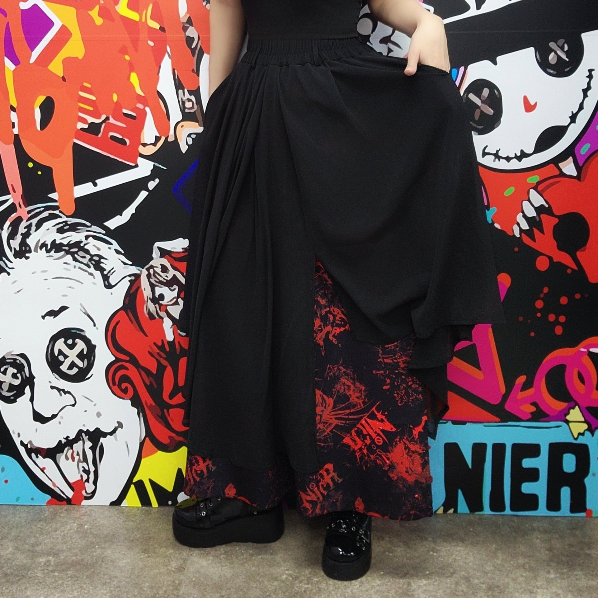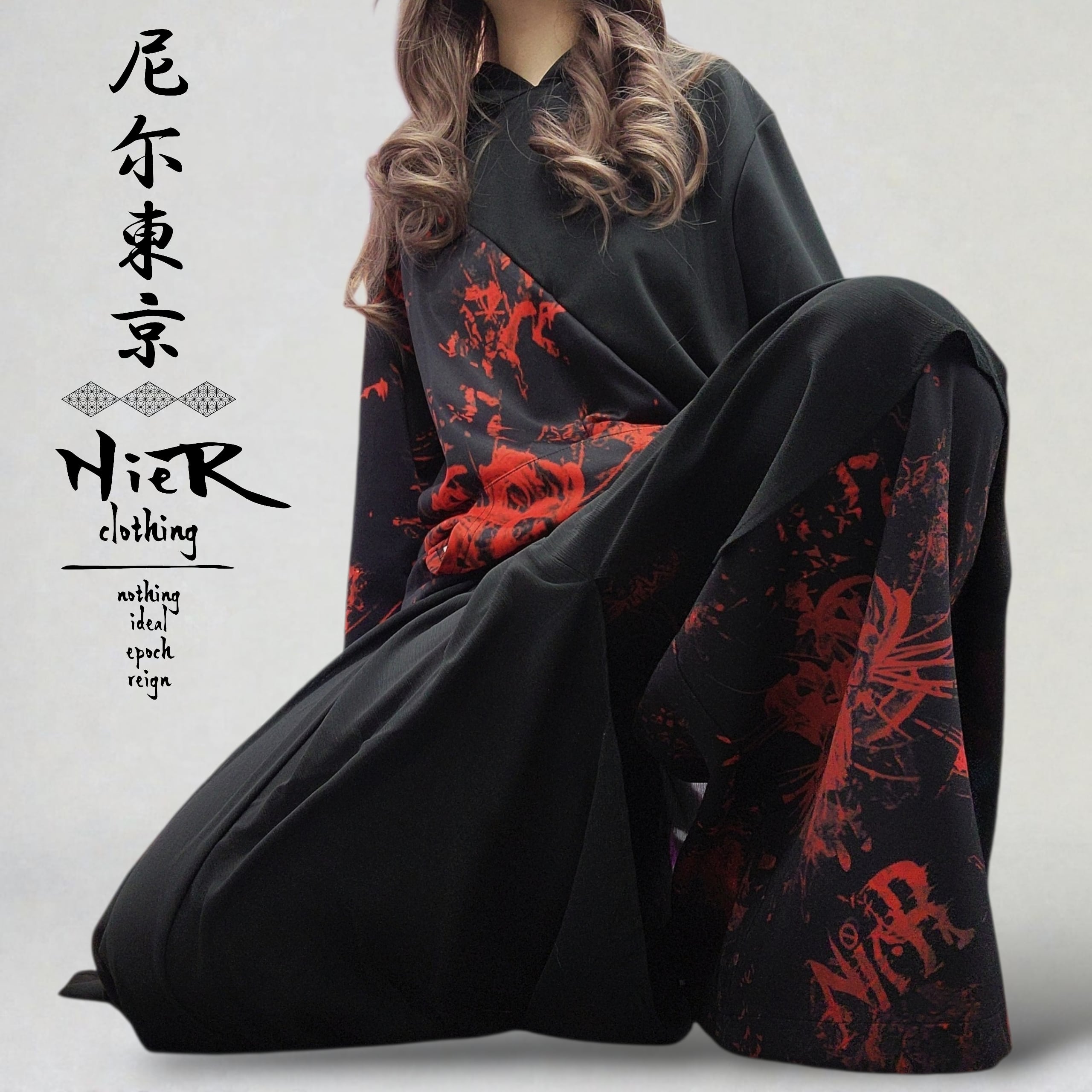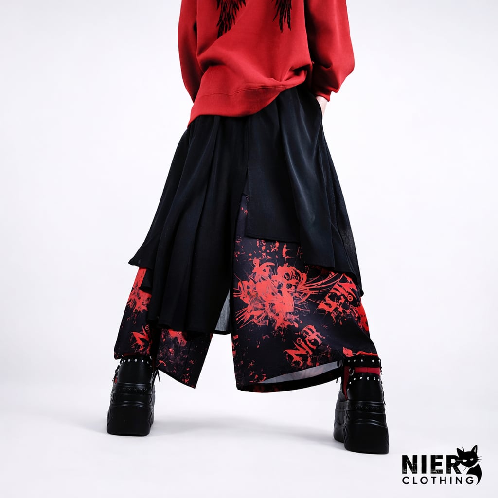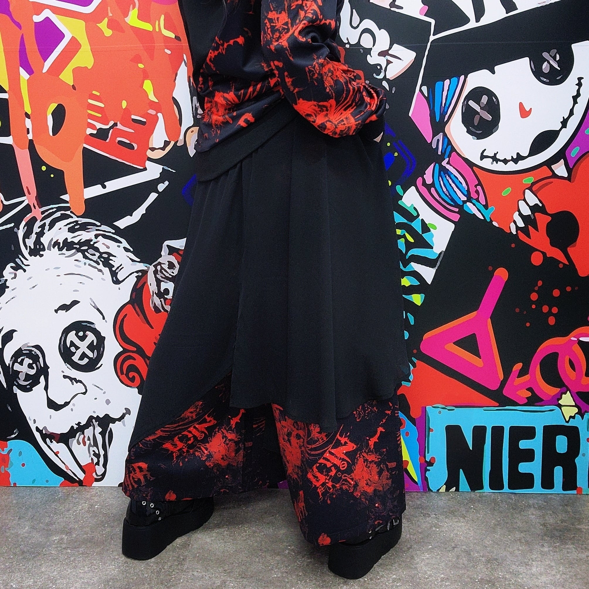 フラップレイヤードワイドパンツ【和柄彼岸花】