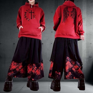 ・BUCK WING RED FLEECE HOODIE【月齢×十字架】