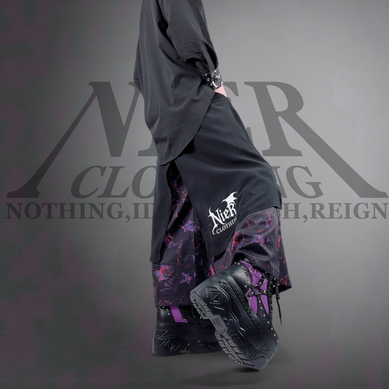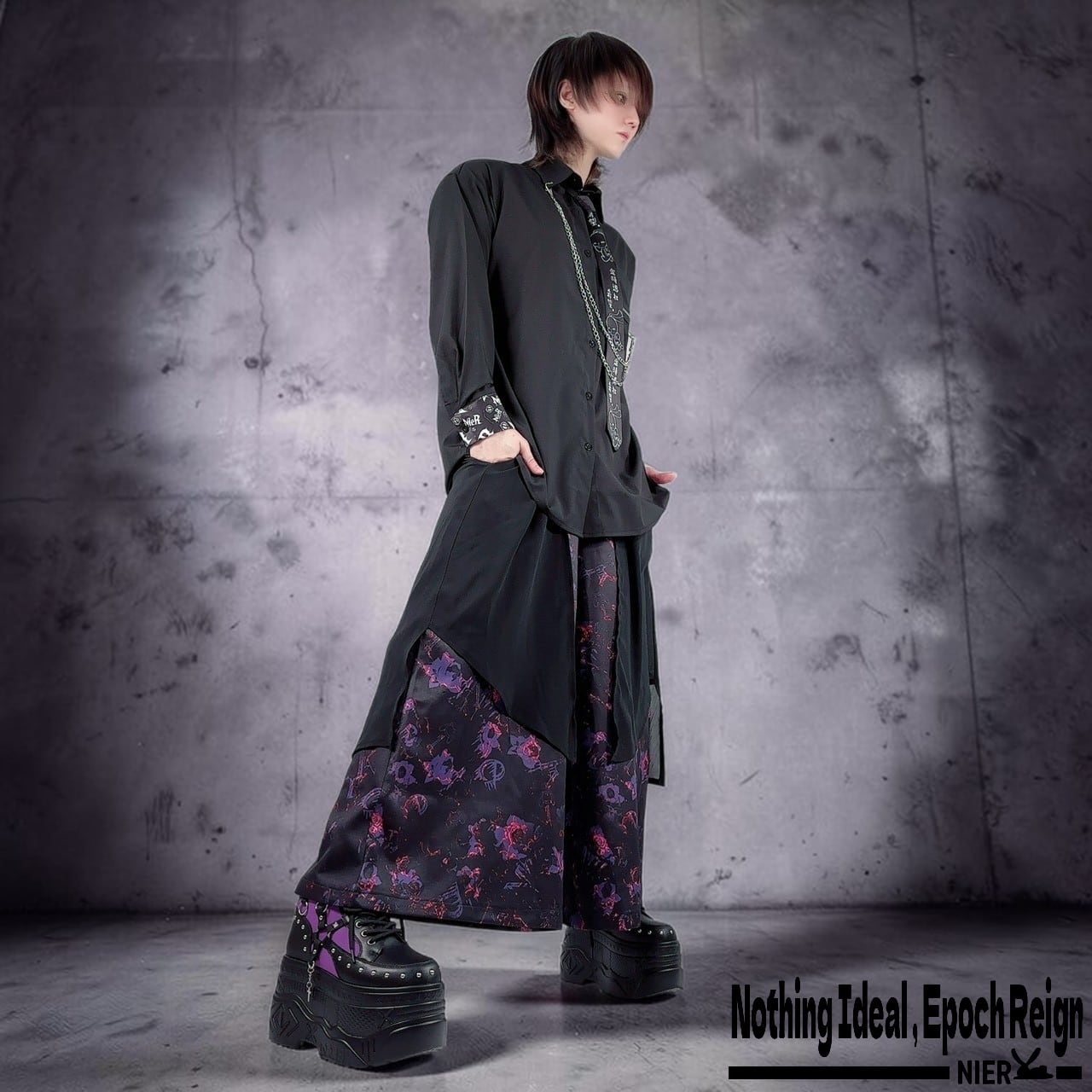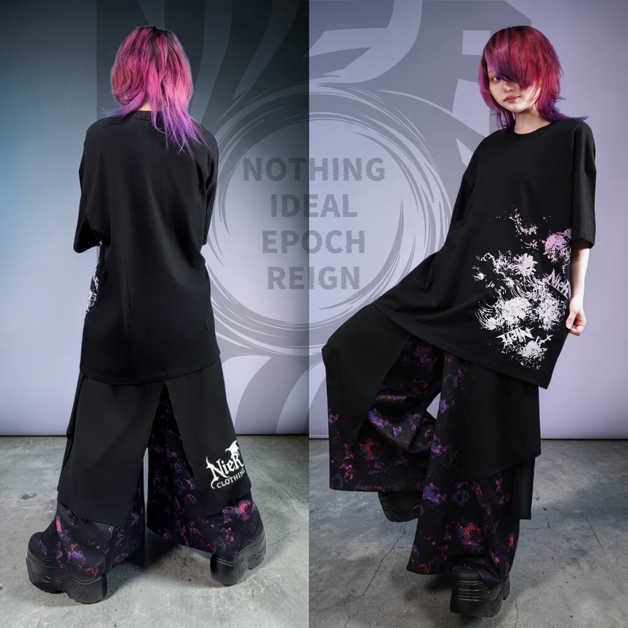 NIERロゴやNIERちゃんのフェイスシルエットがさりげなく散りばめられており、