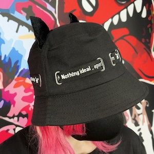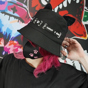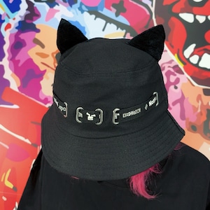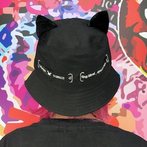 《2/15日目玉大特価70%OFF》BLACK BUCKET HAT【猫耳×RIBBON】