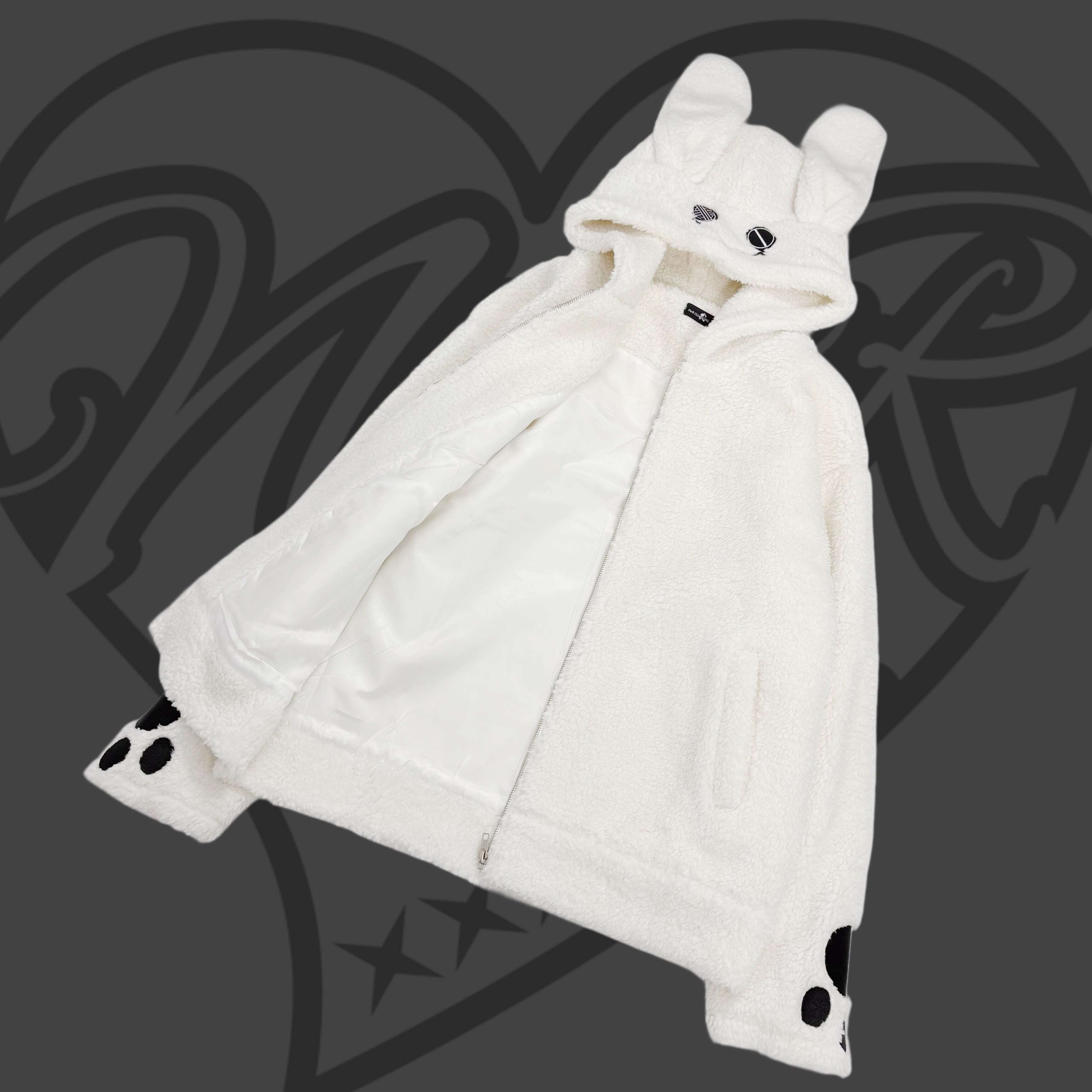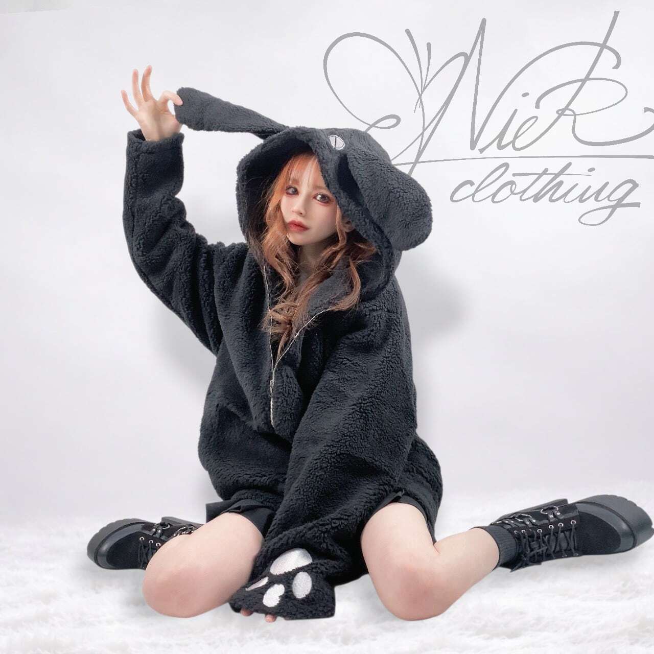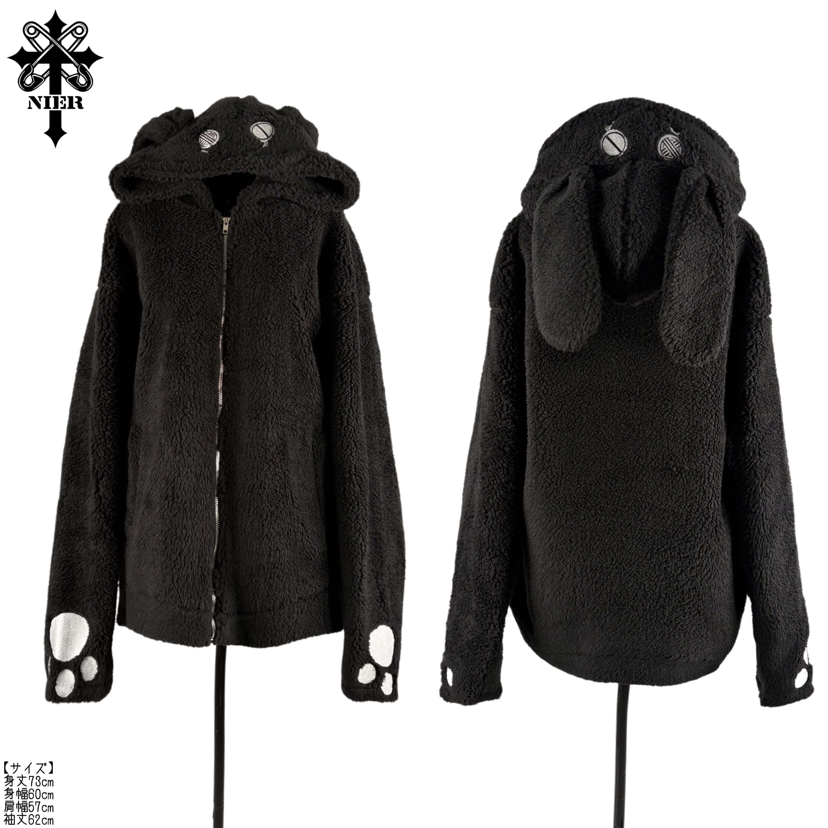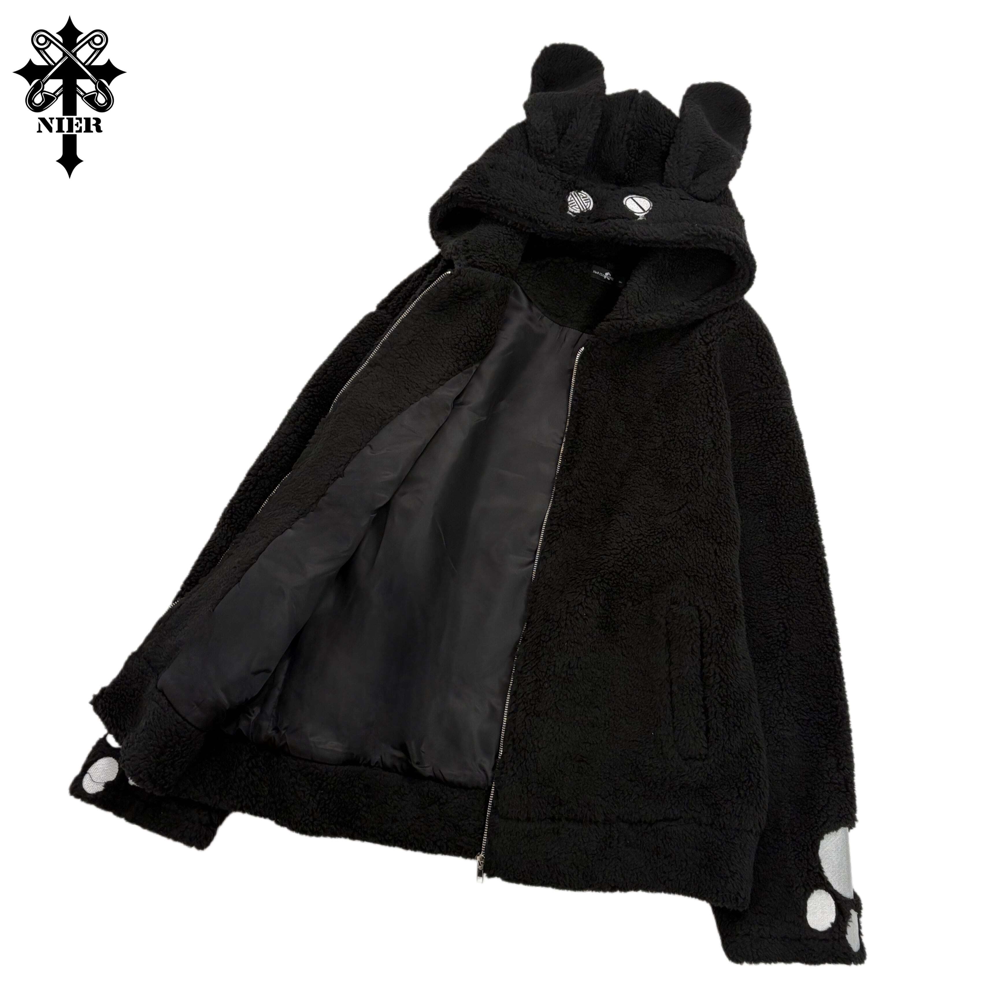 ・肉球刺繍×うさ耳 ふわもこブラックボアアウター