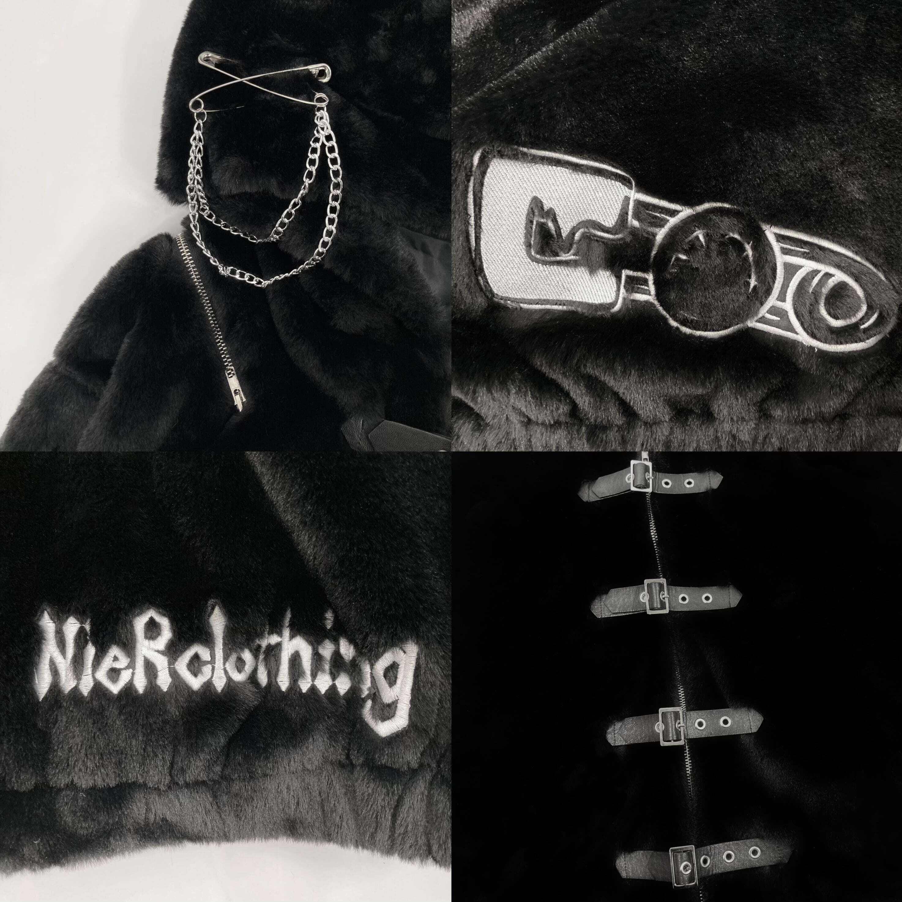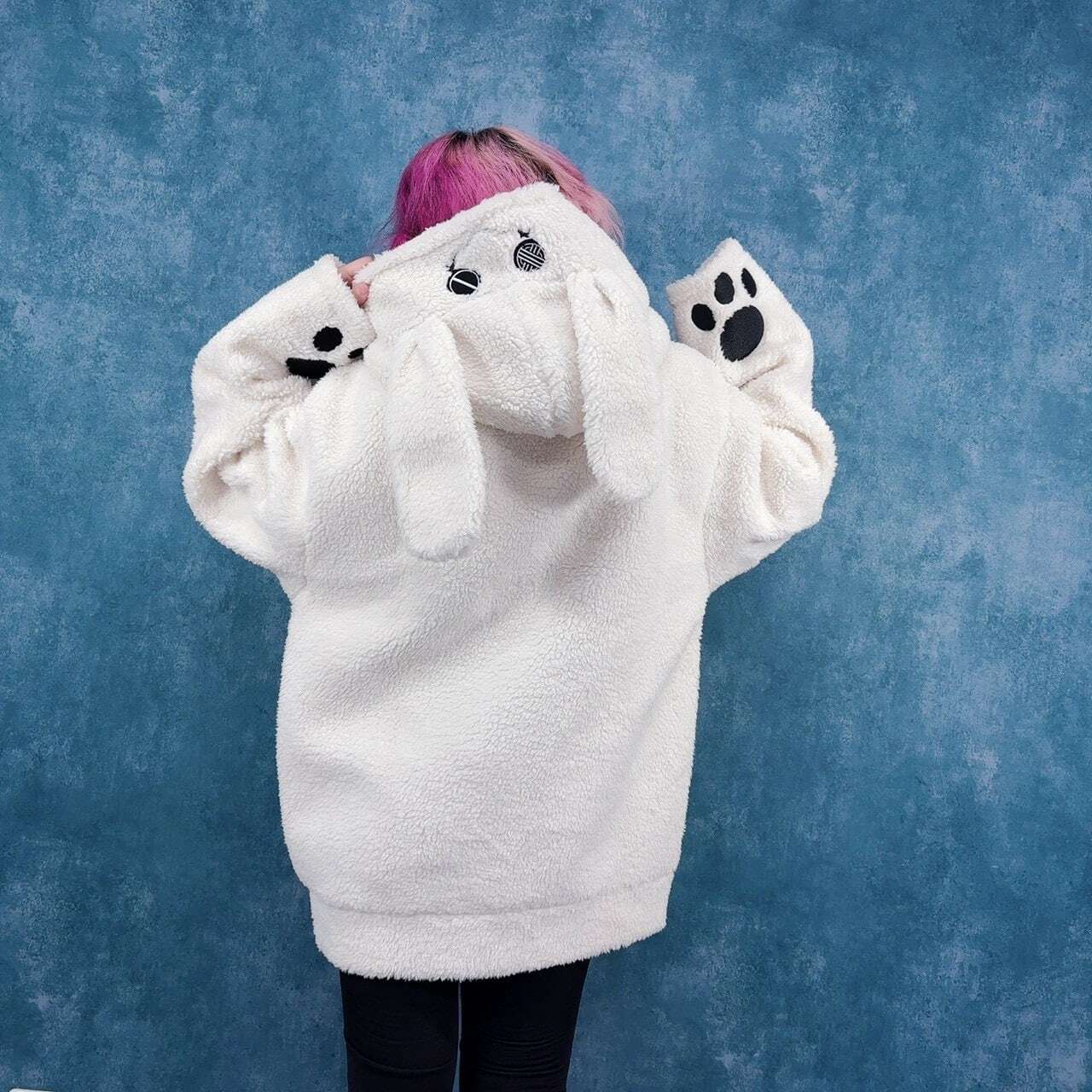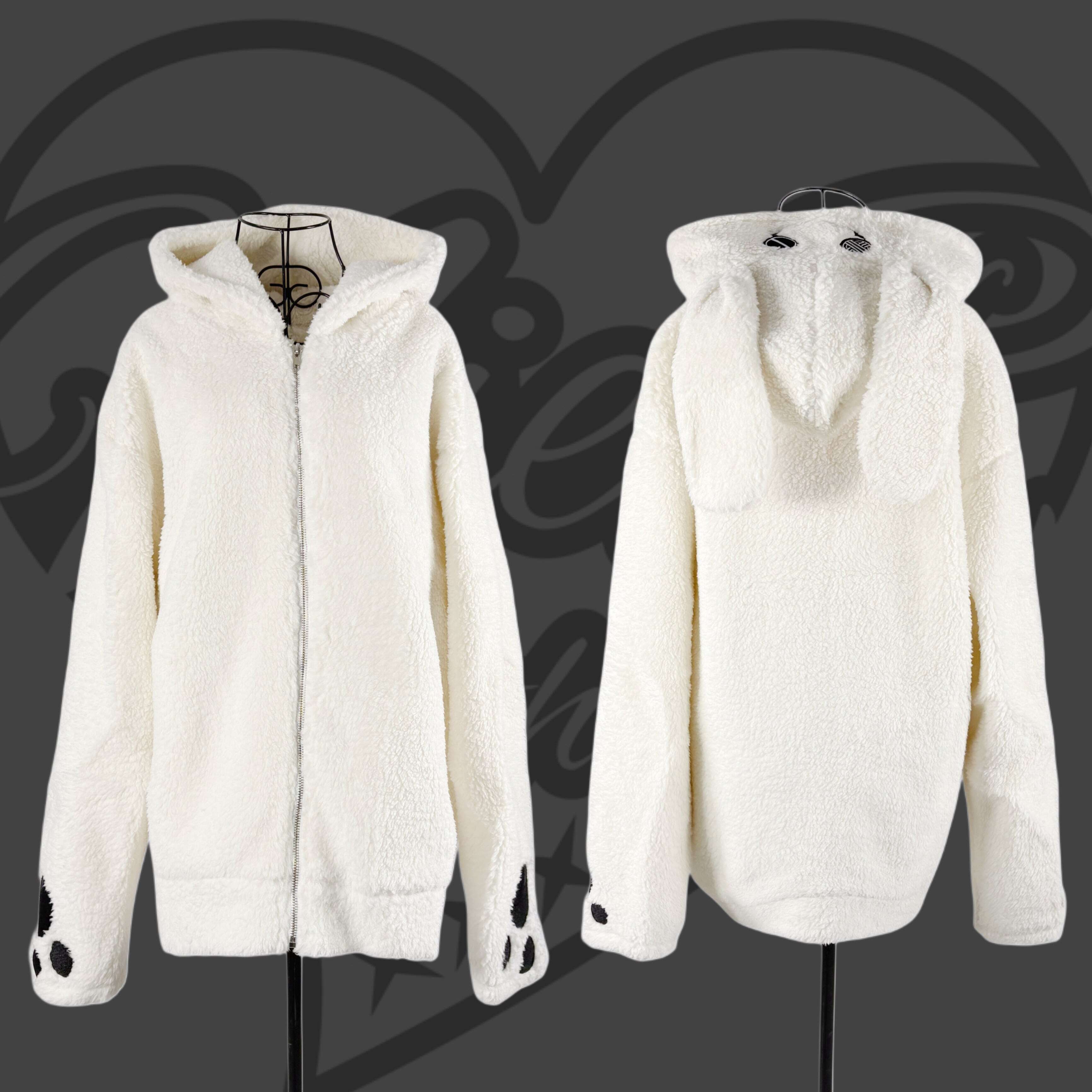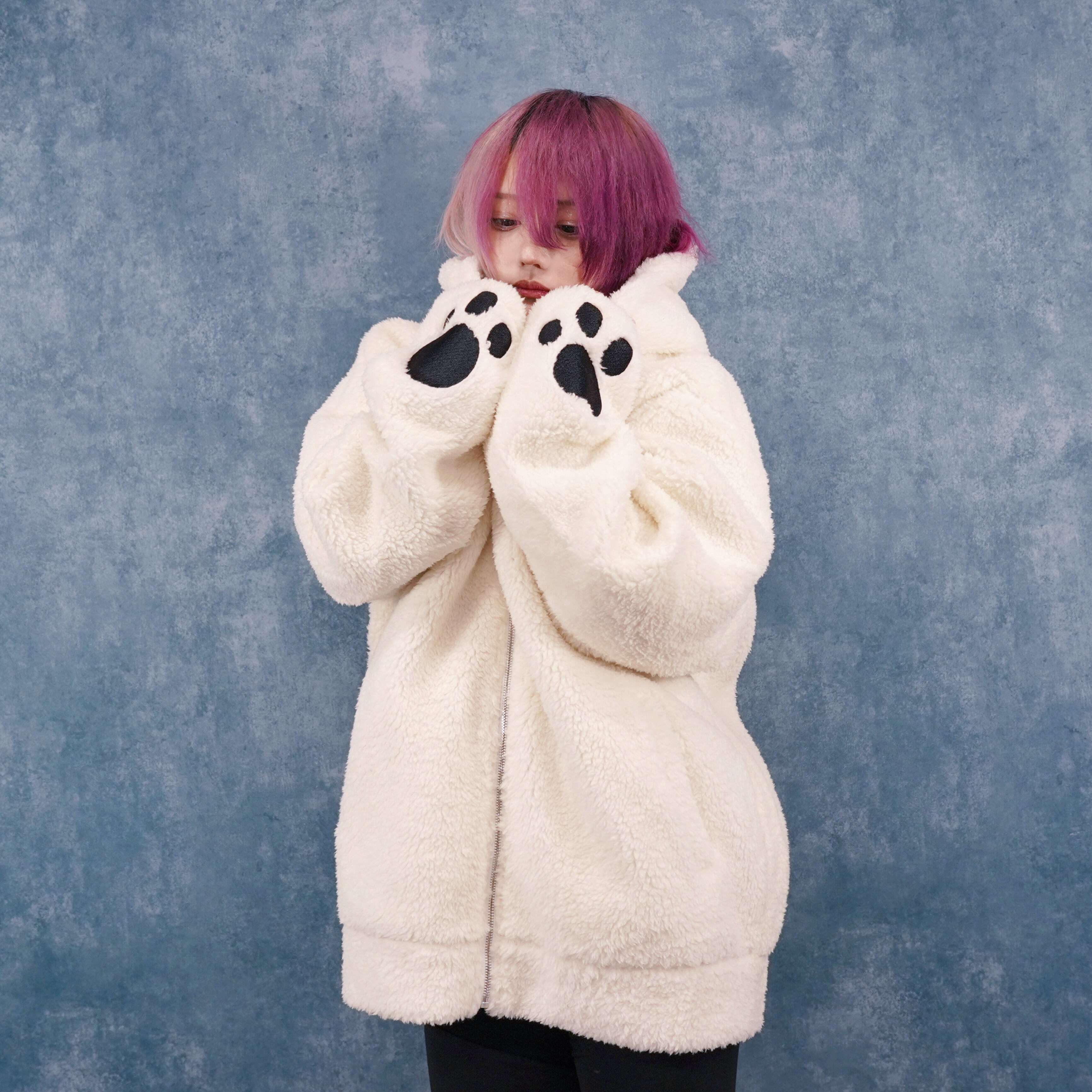 ・肉球刺繍×うさ耳 ふわもこブラックボアアウター