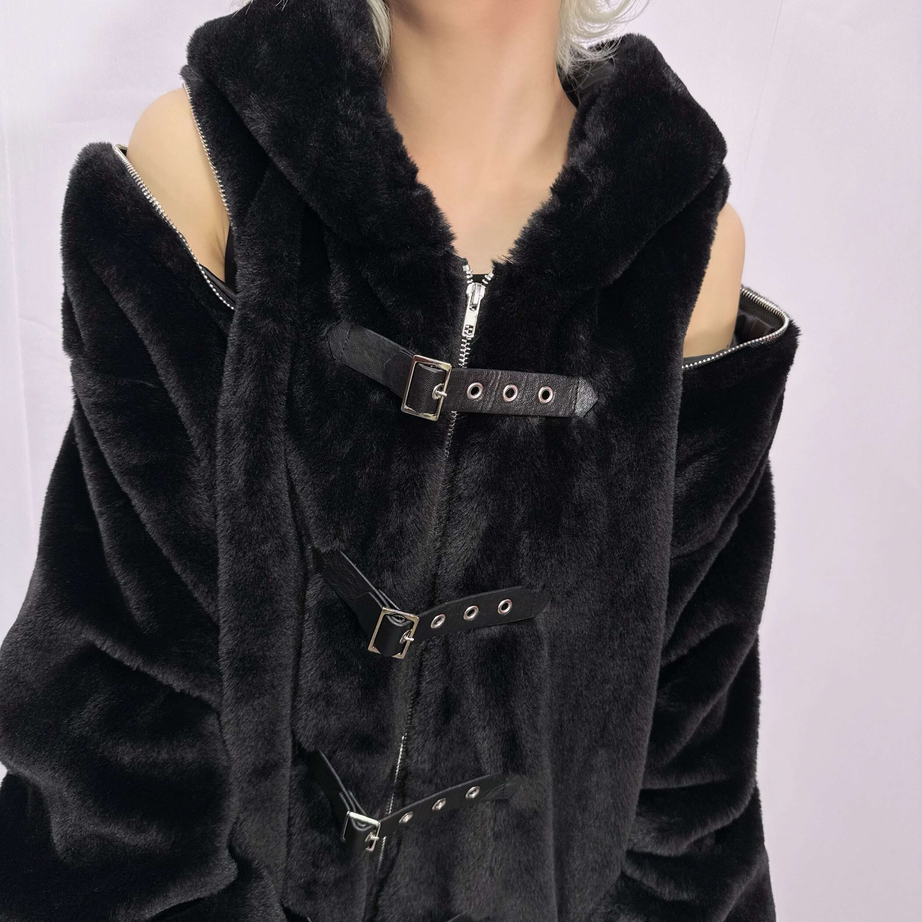 ・超ふわもこ うさ耳2WAY OFF-SHOULDER OUTER【チェーンブローチ付き】