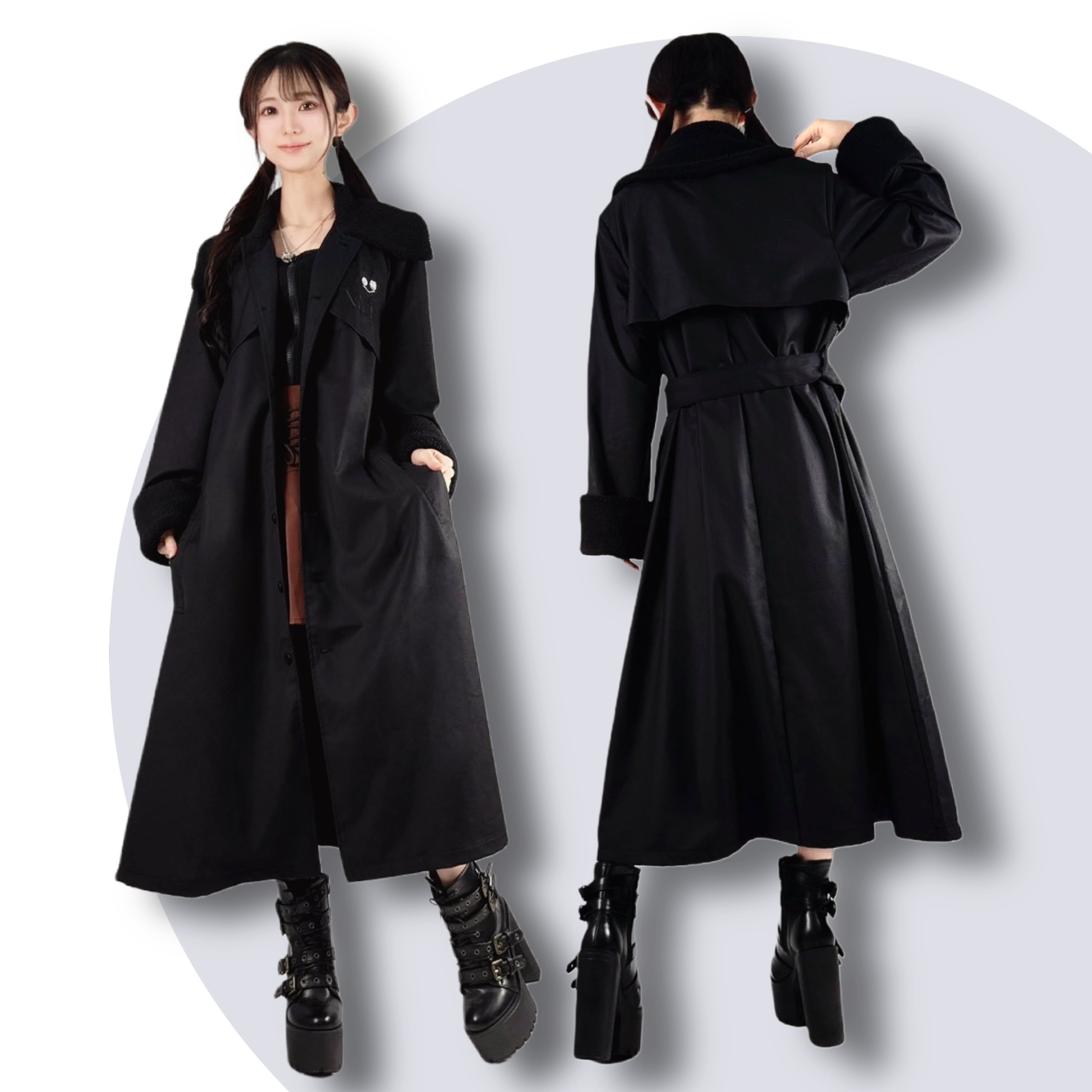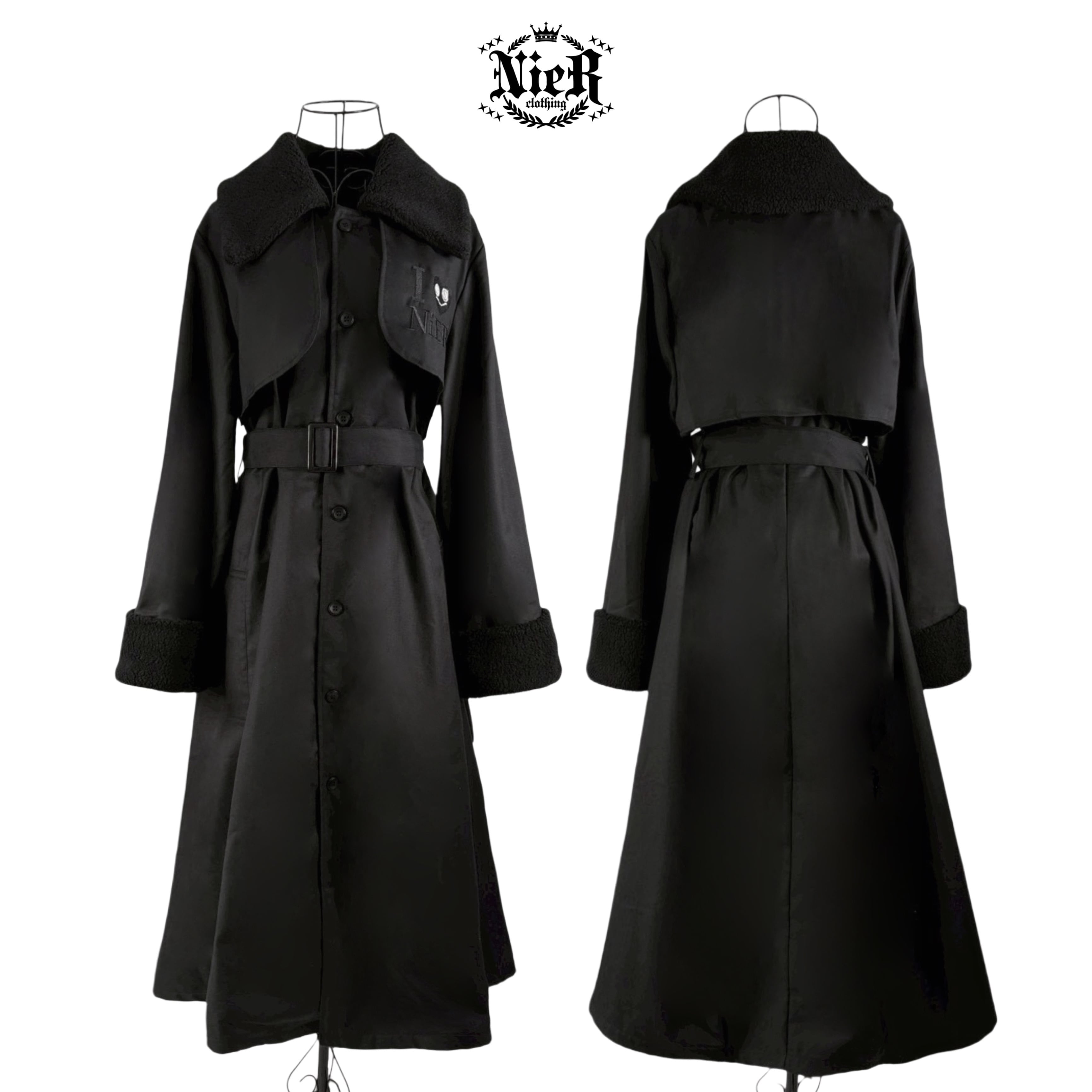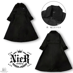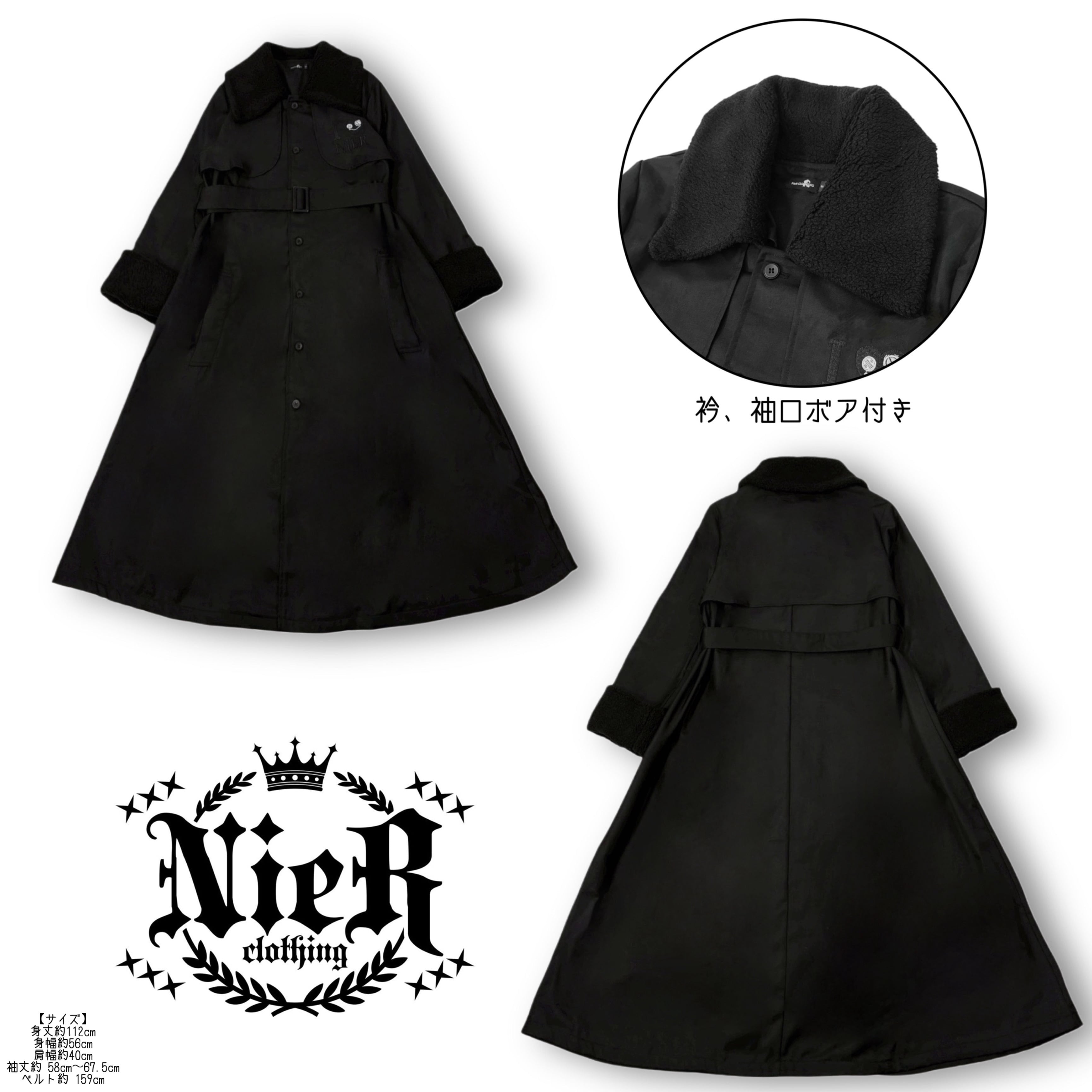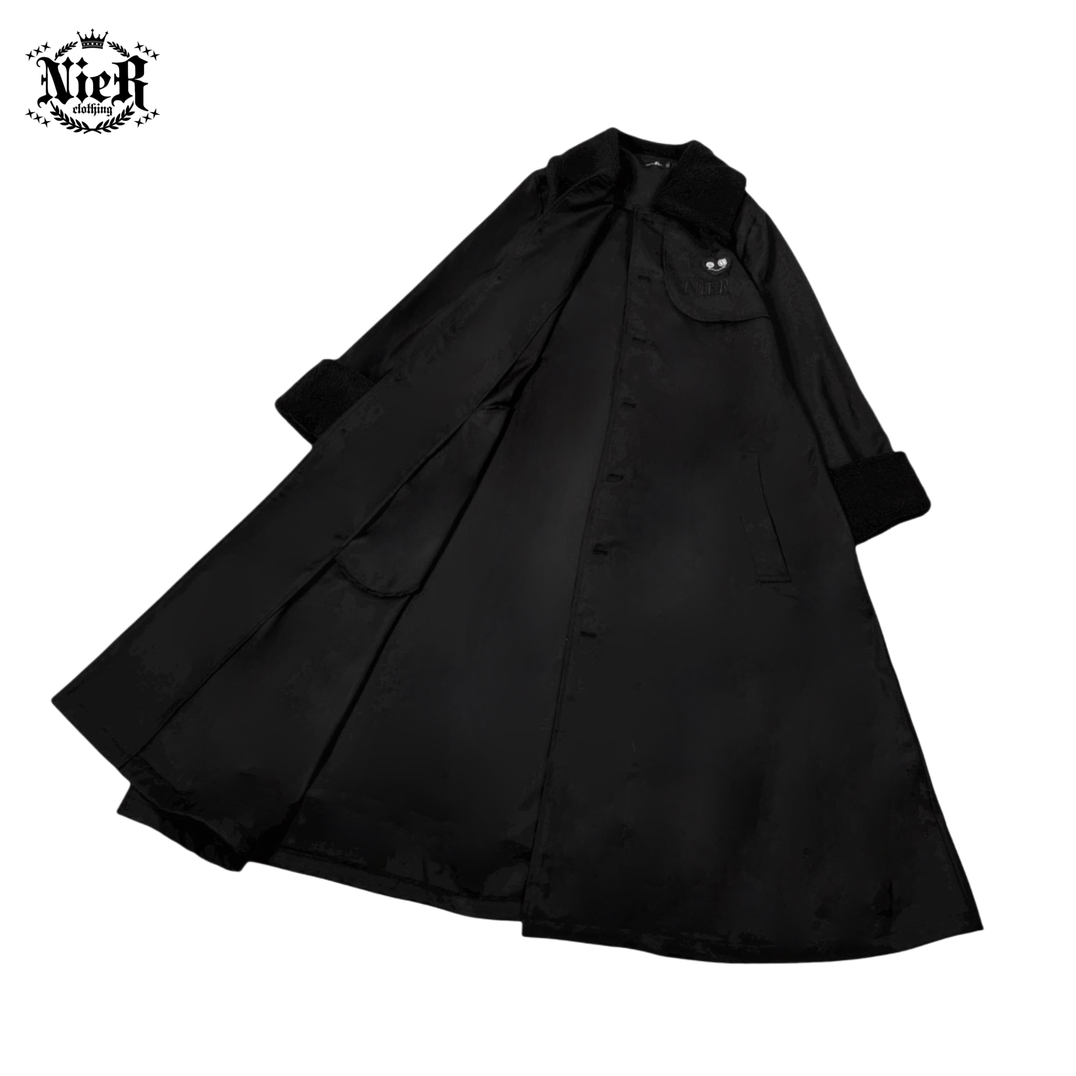 《新春応援60%OFF》ボア襟付き春用BLACK LONG COAT【NIER刺繍入り】