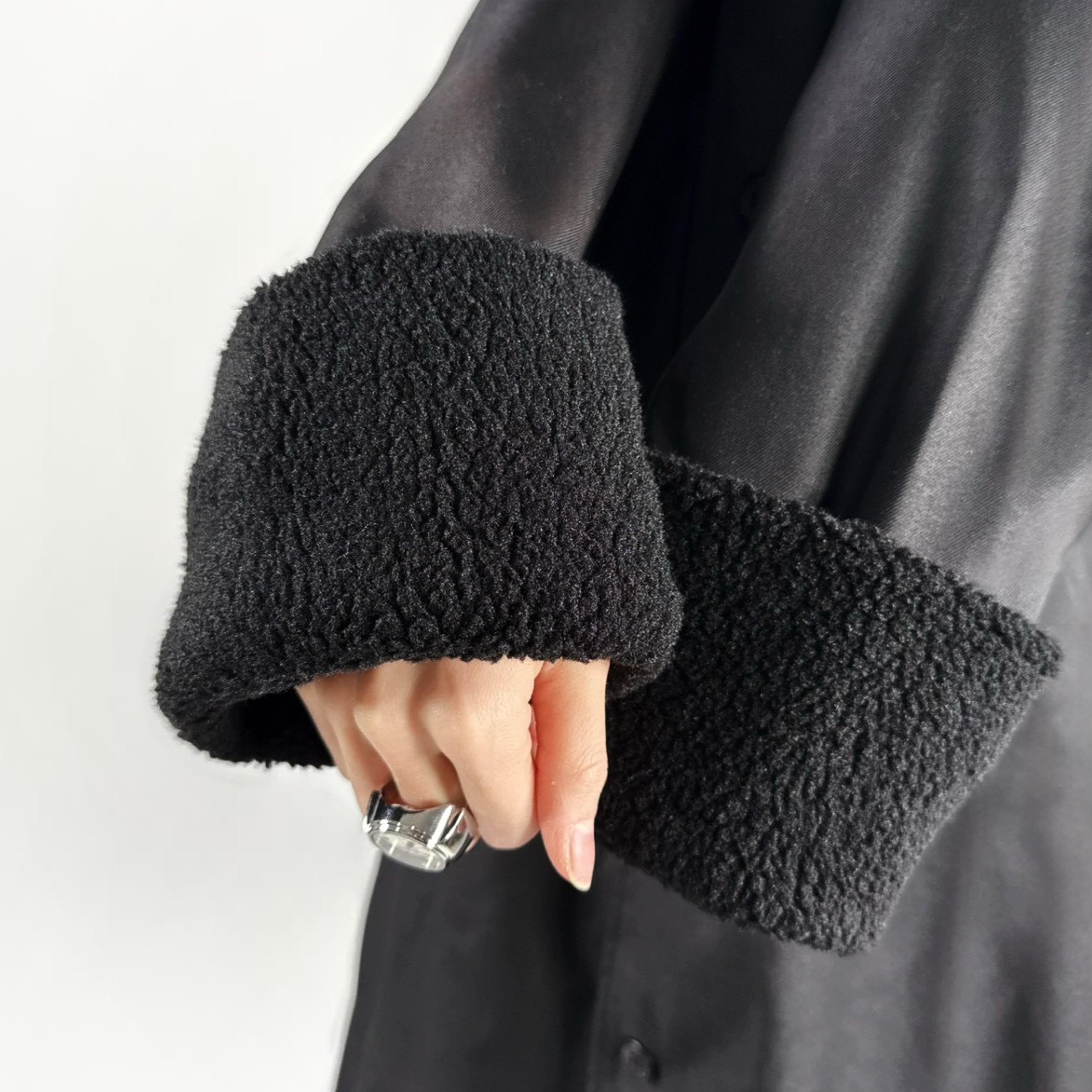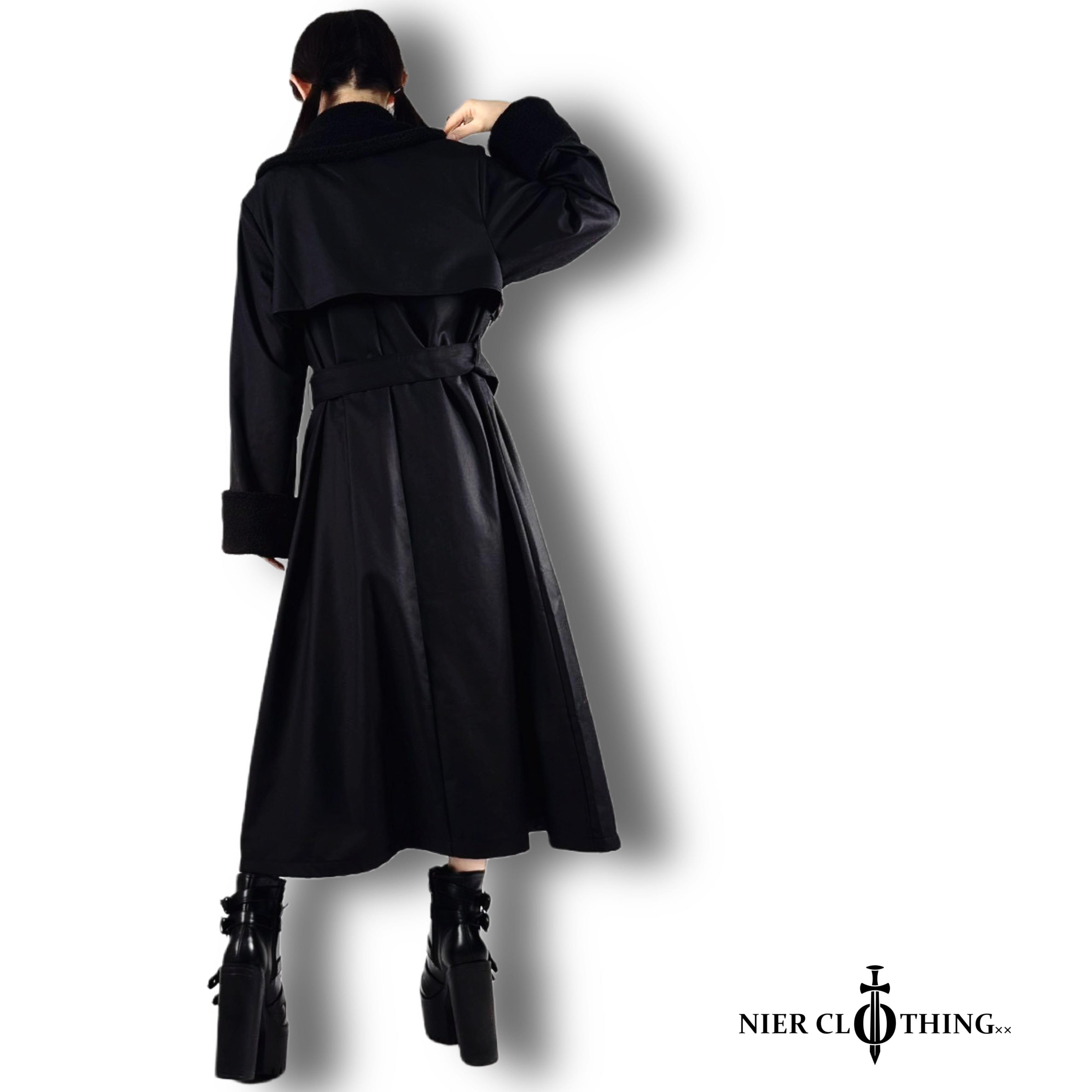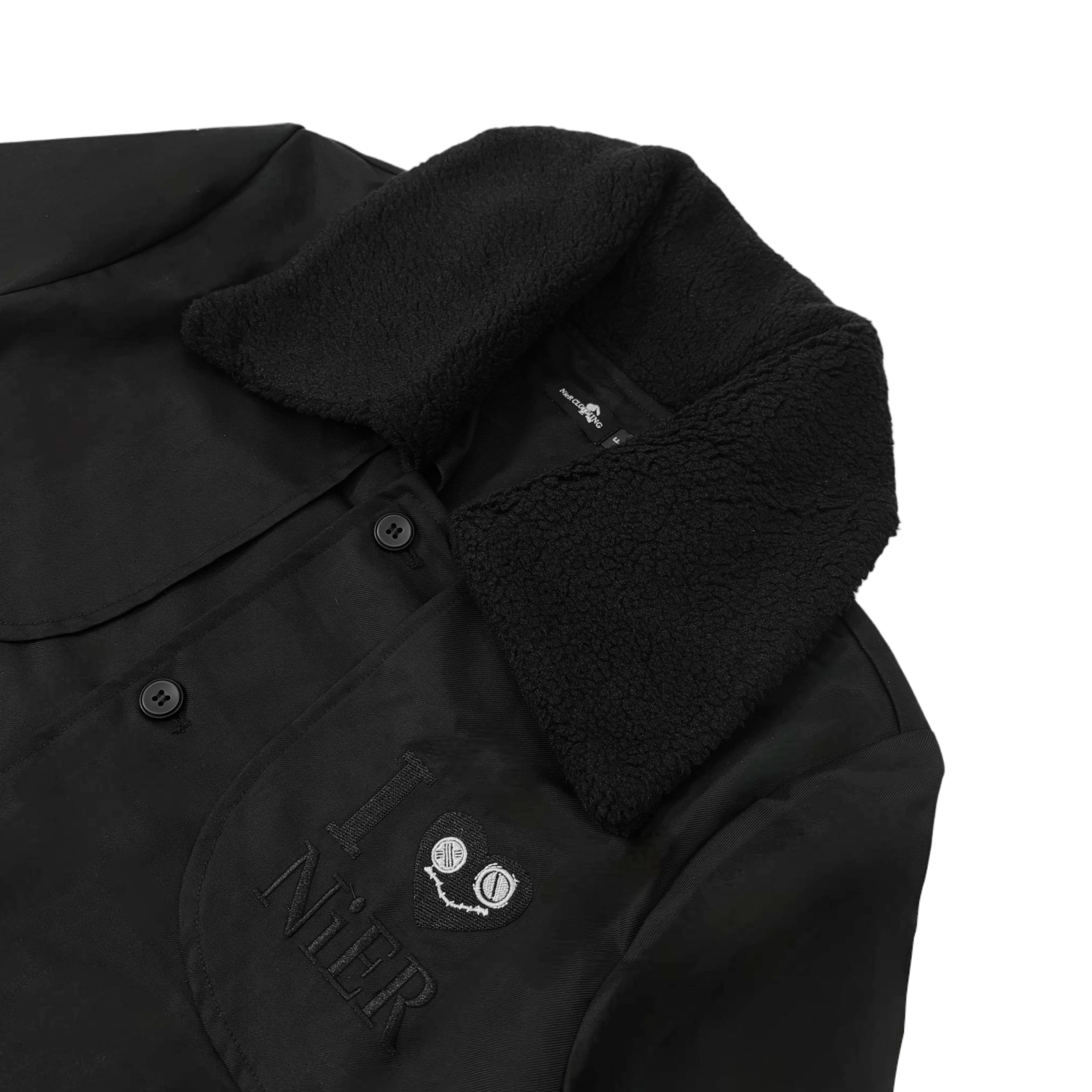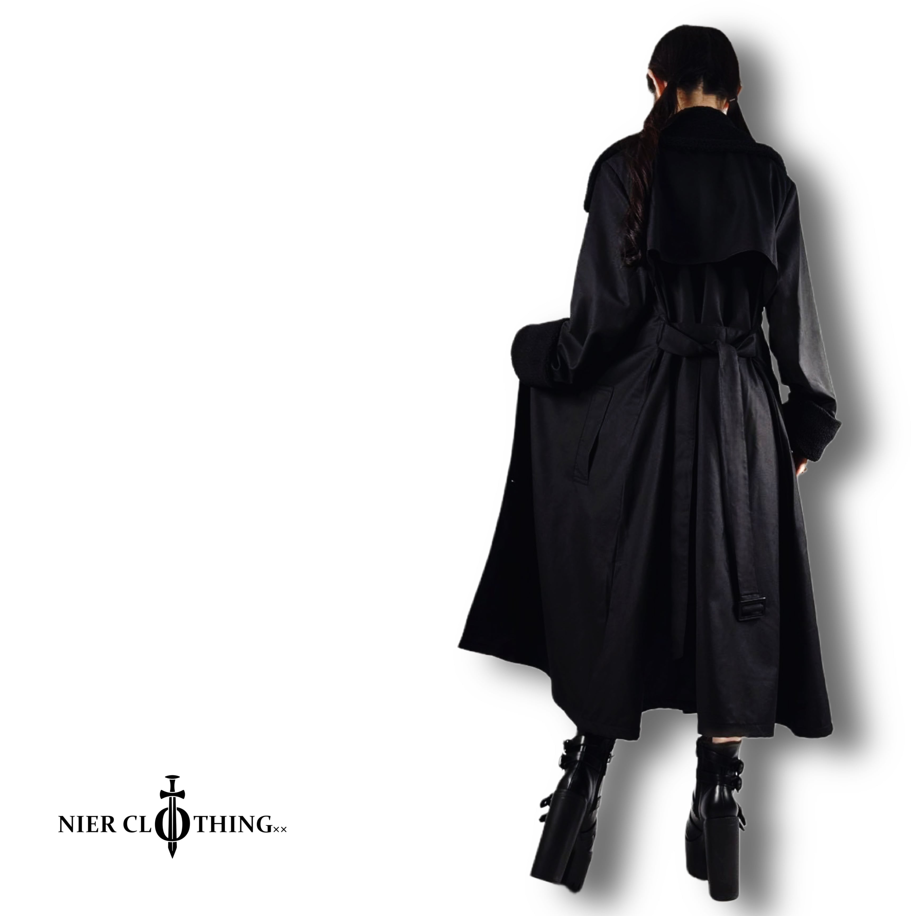 《新春応援60%OFF》ボア襟付き春用BLACK LONG COAT【NIER刺繍入り】