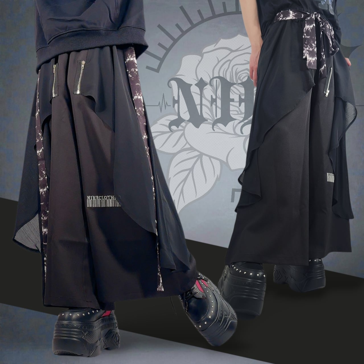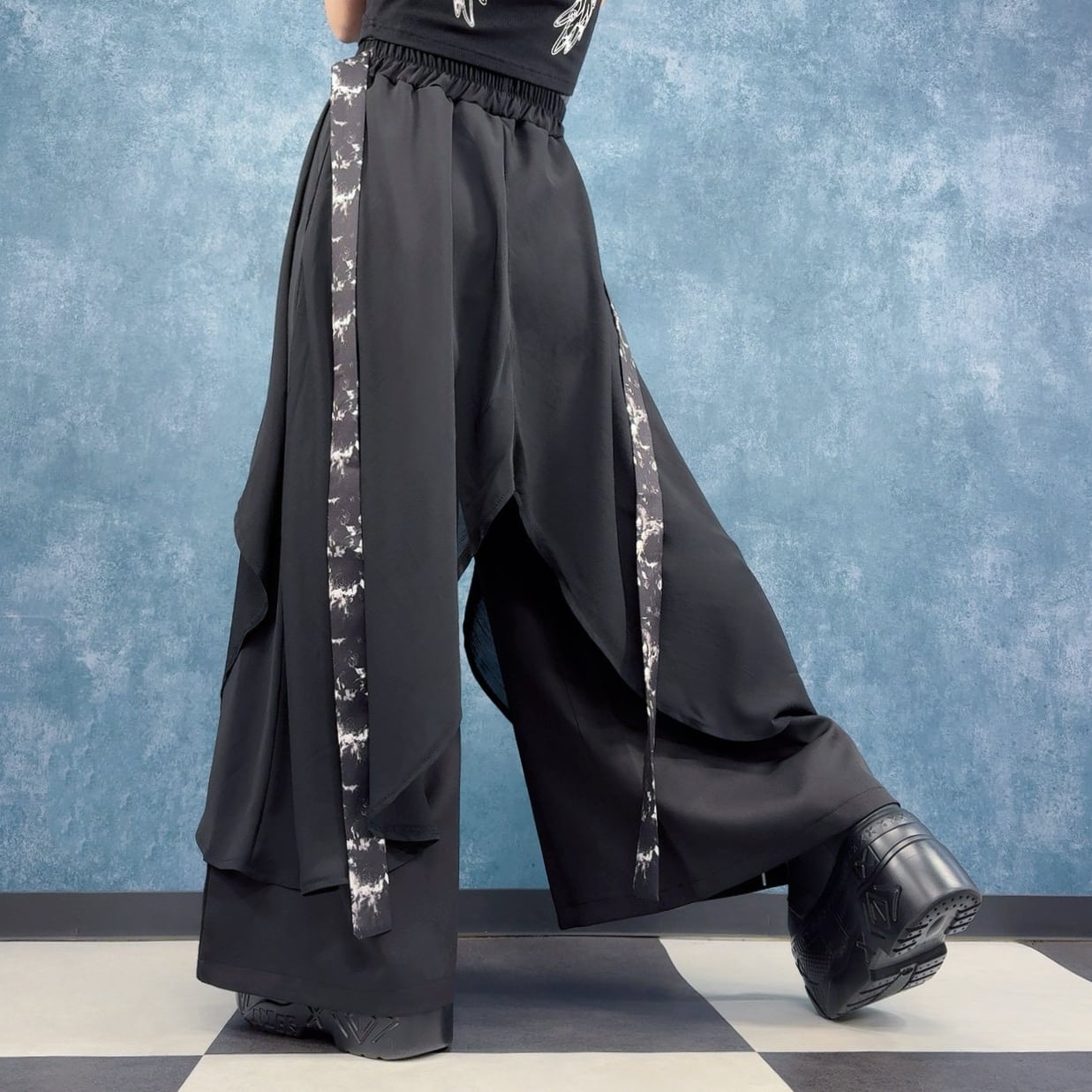 《先着39点限定MEGA SALE》FLAP LAYERED ZIP WIDE PANTS【SHADOW ROSE STRAP】